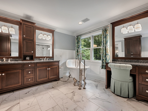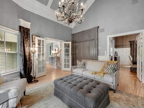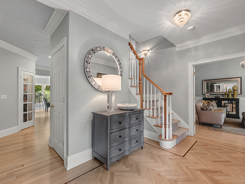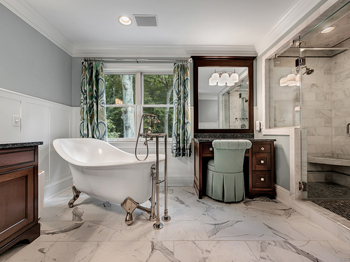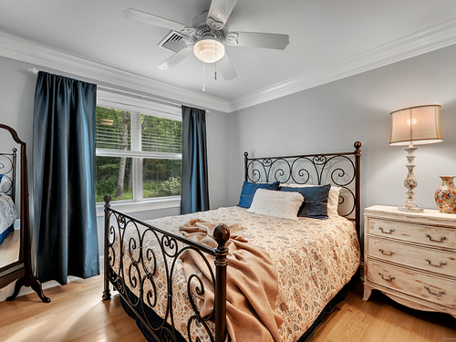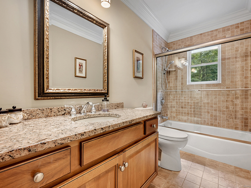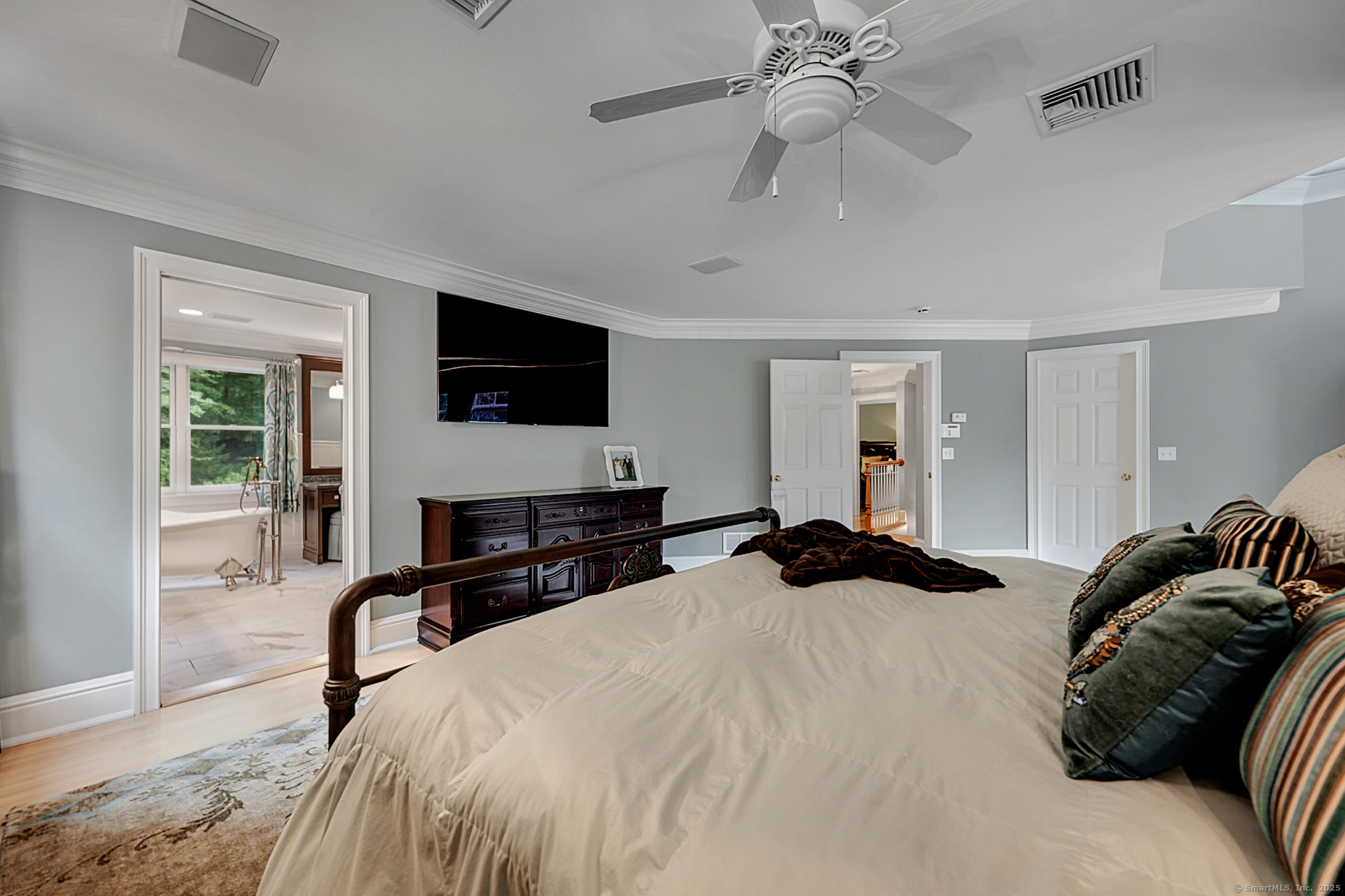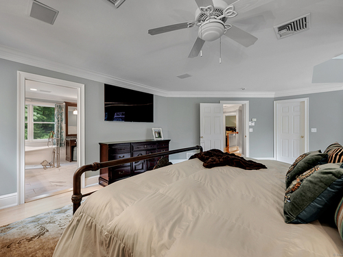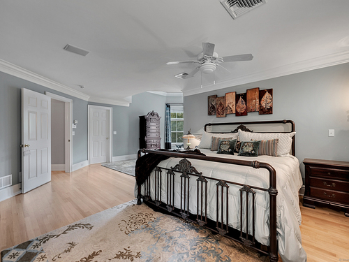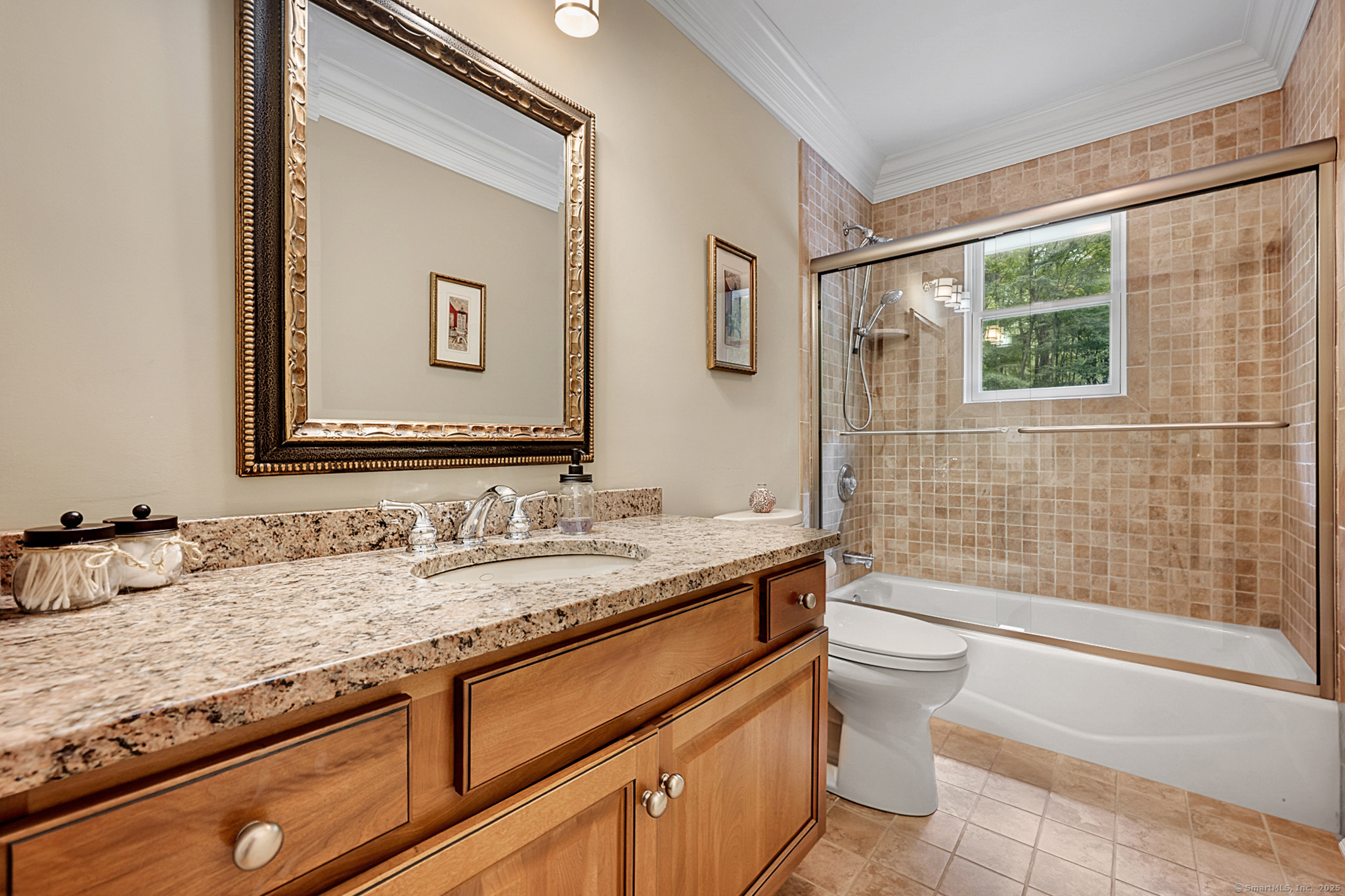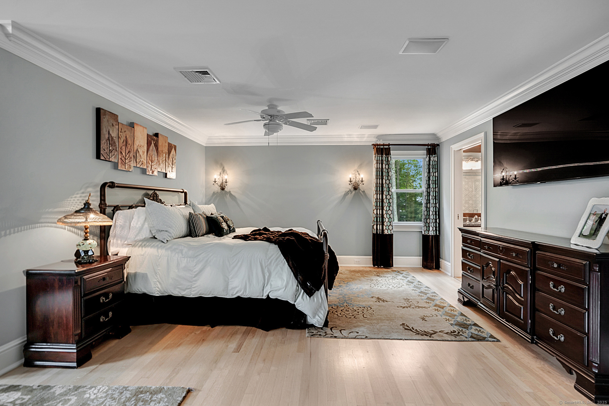 A one-of-a kind home home curated with the utmost of design and details, set on 4.78 acres of lush beauty and serenity. From the minute you enter the home, the luxurious finishes and wonderful layout is noticed. Whether day-to-day living, or gatherings of any size, this home and property is well suited. The Formal rooms have incredible finishes from a vaulted turret ceiling, to gorgeous light fixtures and designer window treatments. Even the custom wet bar is exceptional. The beautiful Kitchen is complete with stainless steel appliances, granite counters & marble backsplash, and a unique painted metal ceiling detail. Adjacent is the casual dining area with coffered ceiling and 3 walls of windows overlooking the impeccable grounds. The Family Room has a wood burning fireplace with sliders to the rear stone patio. A first floor bedroom is ideal for guests or a private home office. On the upper level are 3 more well appointed Bedrooms. The Primary suite has a spa-like bathroom, huge walk-in-closet and turret ceiling sitting area. A wonderful place to begin and end your day. The exterior is just as amazing as the inside....a heated in-ground salt-water pool, an 8 person hot tub, multiple stone patios, a custom waterfall feature and a firepit area with stone walls and detailed lighting. The landscaping has been thoughtfully designed with specimen trees and shrubs, a separate garden area, and a variety of perennials throughout.