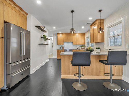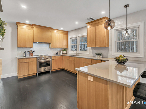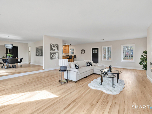 A rare Lower Easton gem, this fully reimagined 3-bedroom, 2-bath home delivers turnkey perfection on a private, picturesque lot in one of the area's most sought-after neighborhoods. Every inch has been thoughtfully renovated with a designer's eye, blending timeless finishes with today's modern lifestyle. The open-concept living space is anchored by rich hardwood floors and a dramatic great room that flows effortlessly into a stunning chef's kitchen complete with quartz countertops, custom cabinetry, and top-tier stainless-steel appliances-ideal for hosting, gathering, and everyday ease. The primary suite is a serene sanctuary, featuring a spa-like bath with sophisticated tilework and upscale fixtures. Two additional bedrooms and a beautifully appointed full bath complete the main level. The finished lower level expands the living space, offering endless possibilities for a media lounge, home office, fitness studio, or playroom. Outdoors, the secluded backyard provides a peaceful escape surrounded by natural beauty, while remaining just minutes from the Merritt Parkway, shopping, and dining. Privacy, refined design, and location converge in this exceptional Easton home.