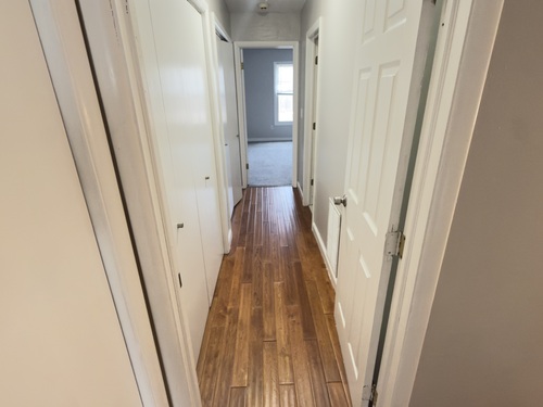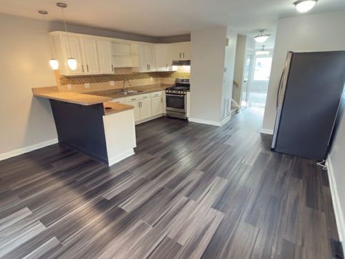This beautifully freshly painted updated and spacious half-duplex is completely move-in ready. The townhouse-style layout features 2-3 bedrooms and 2.5 baths, with a bright, open flow throughout. On the main level, you're greeted by a welcoming foyer leading to a large great family room-perfect for relaxing or entertaining. The eat-in kitchen boasts stainless steel appliances, a gas range, and a connected dining area that opens through sliding doors to the deck and backyard. Upstairs, you'll find two private bedroom suites. The hallway offers additional storage space. The lower level includes a studio-style third bedroom or flex space, a laundry area, and a utility room, along with an attached 1-car garage. Enjoy gas heat, forced hot air, and a convenient location next to St. Vincent's Hospital. Ideal for owner-occupants or investors seeking a low-maintenance property.