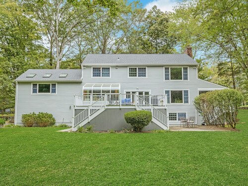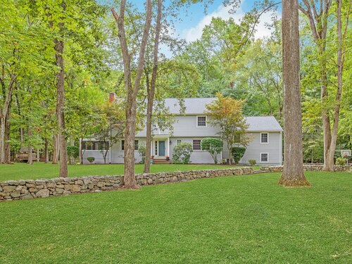 Welcome to 95 Foxwood Road! A well loved, picture perfect 5 bedroom, 3.5 bath Colonial situated on a level 1.83 acre corner lot and located in the beautiful Foxwood Lake neighborhood of North Stamford. Main level boasts a formal living room with a fireplace, home office, formal dining room, sun filled eat-in kitchen, updated powder room and screened porch. Family room, bedroom and full bath or possible in-law/ au pair suite is up a few stairs. The upper level consists of an airy primary bedroom, stylishly updated primary bath, 3 additional generously sized bedrooms, and a shared hall bath with laundry. Walk-out lower level is partially finished; can be used as a second family room, game room, gym, or other. Large additional storage space, second laundry room, utility room, and half bath complete the space. The home is located 7.5 miles to the Metro North train and downtown Stamford, 3 miles to the Merritt Parkway, close to shopping, and the towns of Pound Ridge and Bedford. Not to be missed! * Showings to begin on Friday, 10/24