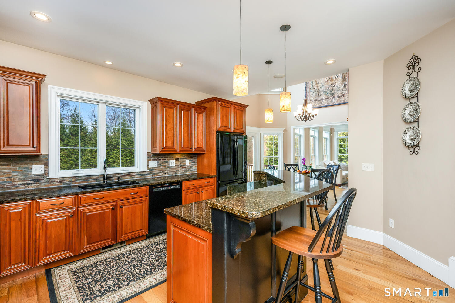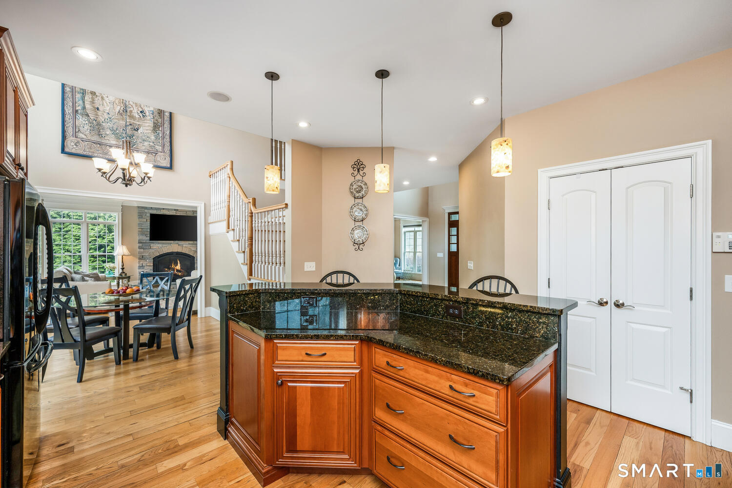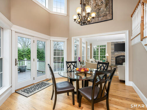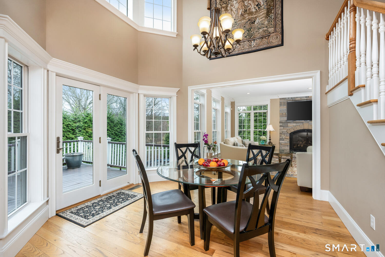 Balcony/Deck, Granite Counters, Dining Area, French Doors, Island, Hardwood Floor