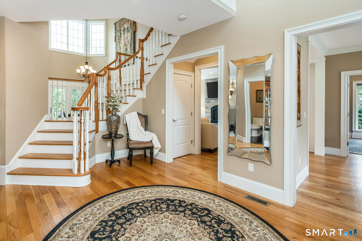 Welcome to 95 Pinto Lane in Monroe-a turnkey, custom-built luxury home set on 2 private acres in a quiet cul-de-sac within Hammertown Estates. Designed for those who work from home, commute to work, or enjoy a hybrid lifestyle, this residence offers both privacy and convenience with access to nearby train stations, I-95, and I-84, as well as highly regarded Blue Ribbon Schools, golf, and upscale dining. A dramatic 2-story foyer and sunlit breakfast area introduce an open, elegant layout ideal for everyday living and entertaining. The gourmet kitchen features a two-tier island, abundant cabinetry, and a butler's pantry/coffee bar, flowing into a two-story family room with fireplace. A private main-level office enhances work-from-home flexibility. Upstairs, 4 en-suite bedrooms include a luxurious primary suite with sitting area, spa-like bath, and dual vanities. The walk-out lower level offers a gym, recreation and billiards areas, and seamless access to a heated saltwater pool and outdoor entertaining spaces. Energy-efficient features include Hardie Board siding, propane heating, tankless water heater, and a whole-house generator. Additional highlights include 2 gas fireplaces, a built-in audio system extending outdoors, a 3-car garage, and a workshop-equipped shed.