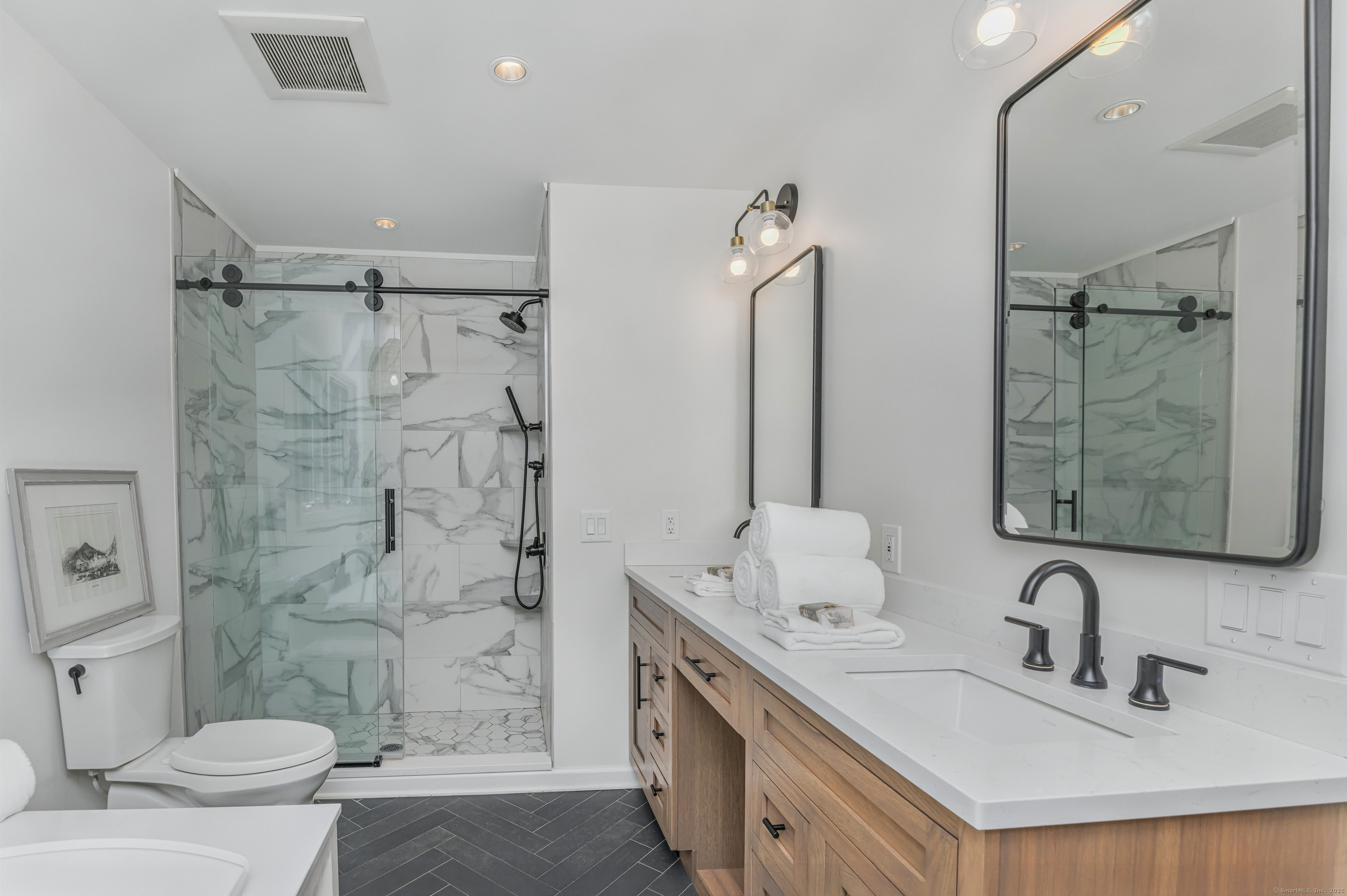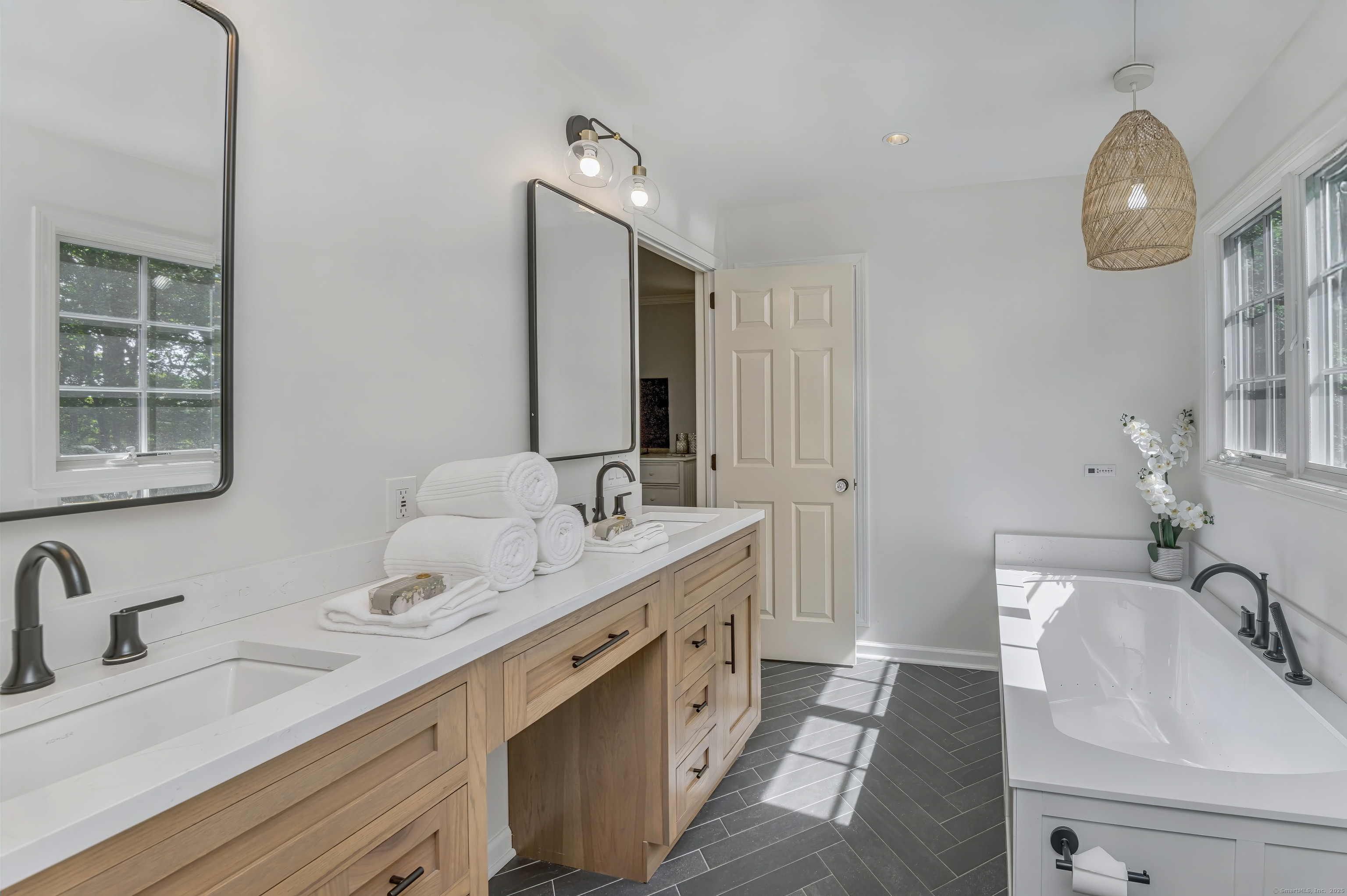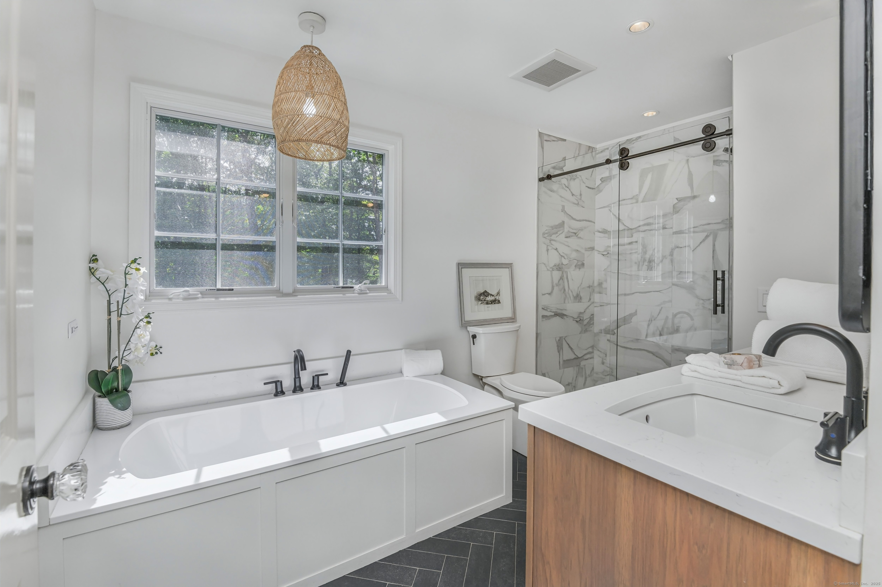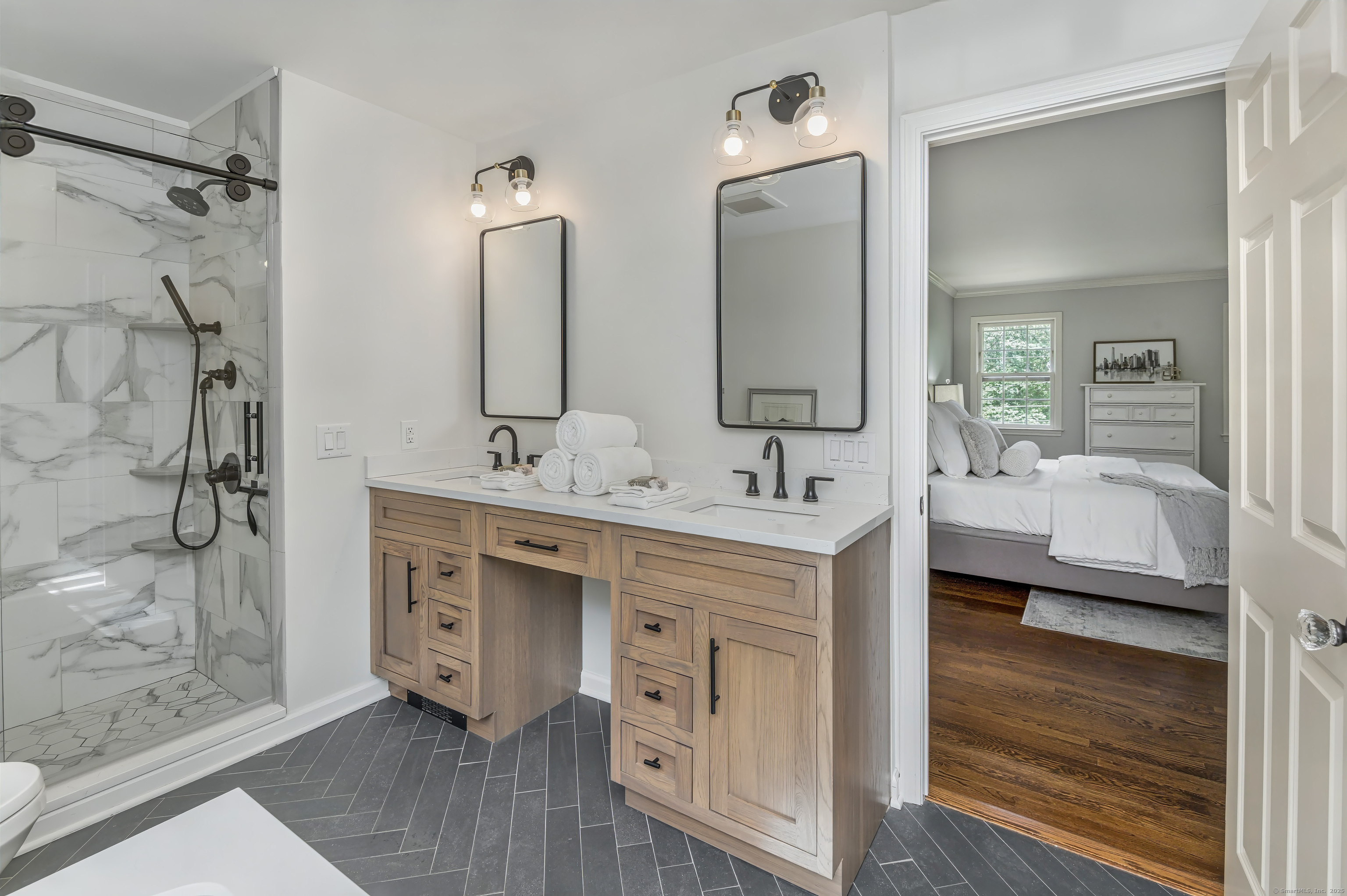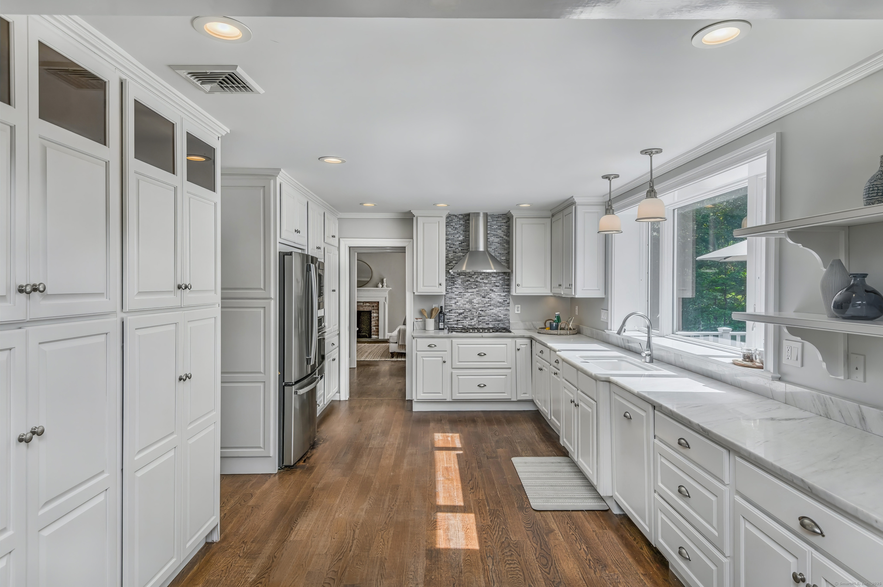 Welcome to 96 Standish! This sophisticated 3,200 sq ft home combines timeless style with everyday comfort. The main level offers a spacious Living Rm and Family Rm with wood-burning fireplace, plus a formal Dining Rm perfect for gatherings. The sun-filled, beautifully updated Kitchen features white cabinetry, marble countertops, and stainless steel appliances. Enjoy effortless indoor-outdoor living w/a fabulous Screened In Porch + spacious deck. Upstairs, the primary Primary Suite boasts a stylish new Bath with soaking tub, shower, and walk-in closet. Four Add'l Bedrooms including a versatile flex space, -ideal for an office or playroom-complete the the upper level. Hardwood floors throughout the main and upper levels add warmth & character. The finished walkout lower level w/engineered hardwood floors offers a full bath and abundant natural light, perfect for entertaining or use as an au pair/in-law suite. A two-car garage with storage completes the home. Ideally located in a sought-after neighborhood close to Ridgefield's vibrant downtown, top rated restaurants, top tier gourmet shops and an array of shopping. Discover CT's first Cultural District w/State of the Art Prospector Movie Theater, Ridgefield Playhouse, A.C.T. Theater + Aldrich Contemporary Art Museum. Take advantage of top-rated schools, numerous hiking trails and parks, 18 Hole Town Golf Course, Tennis & Pickle Courts. Turn Key and ready to go! Exceptional value and opportunity!