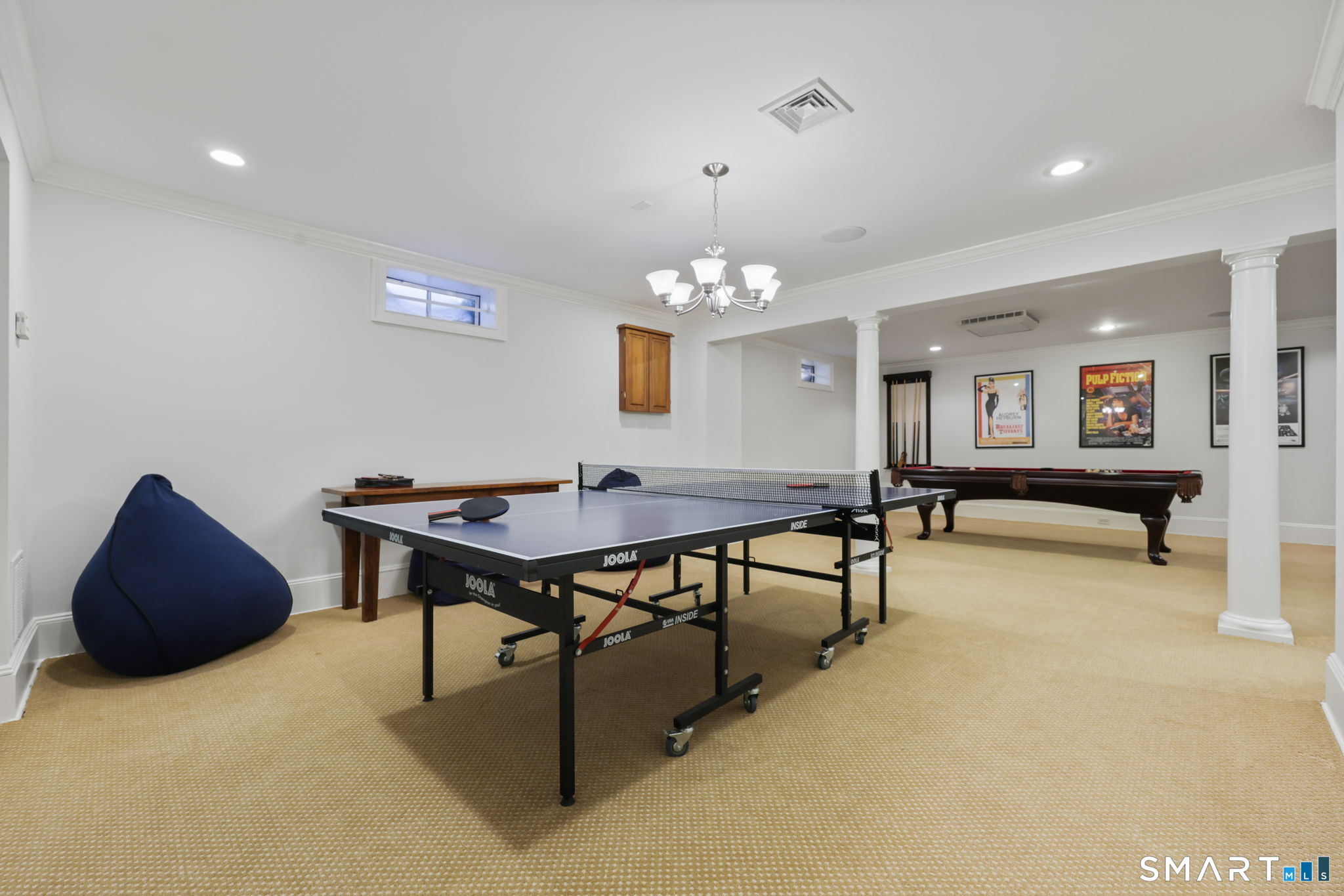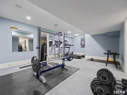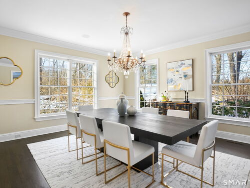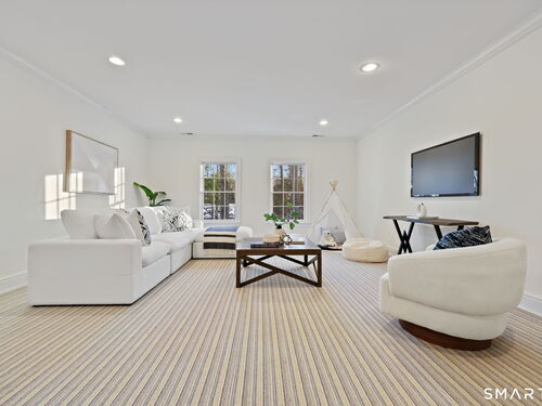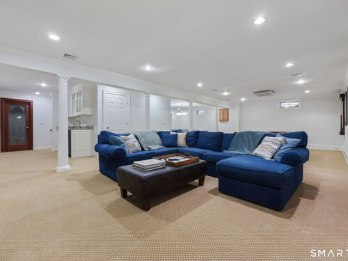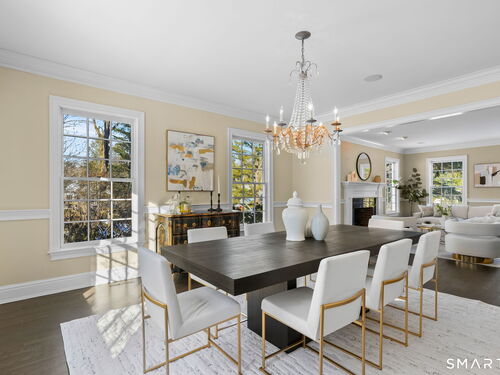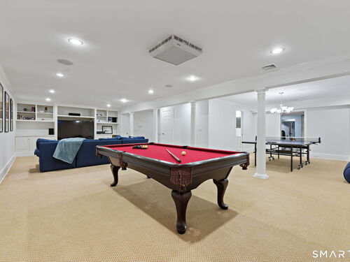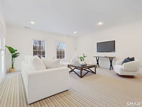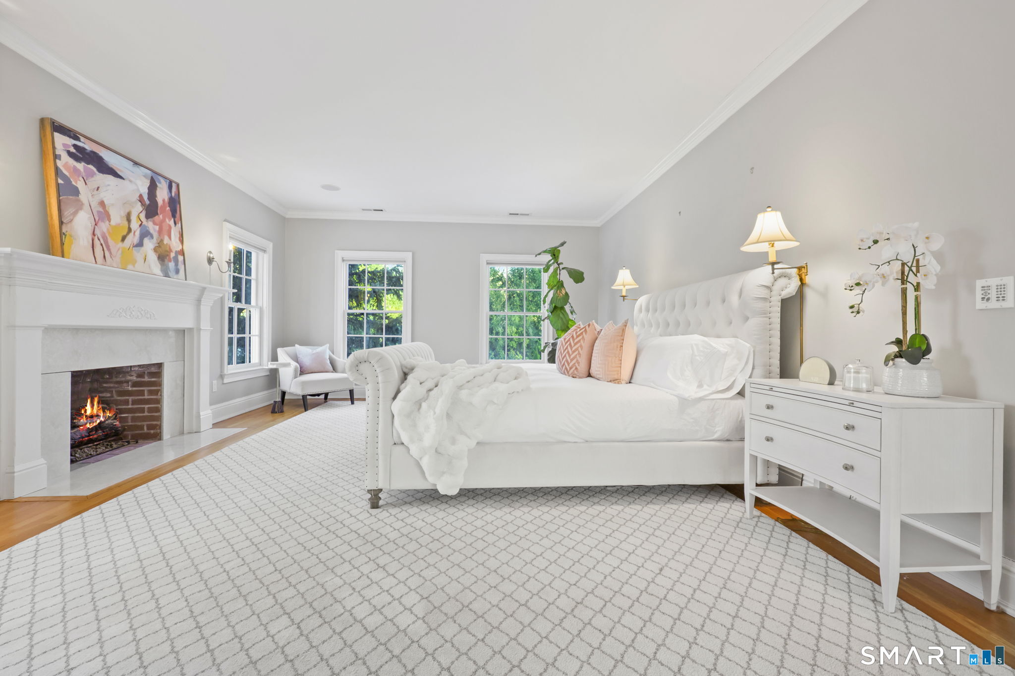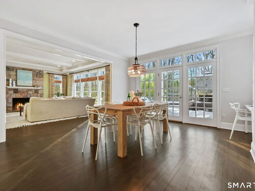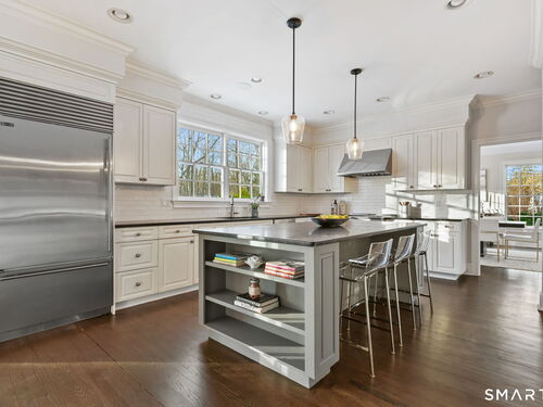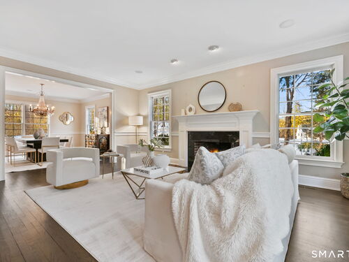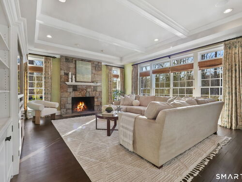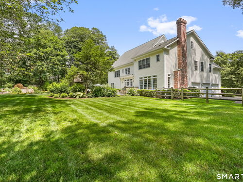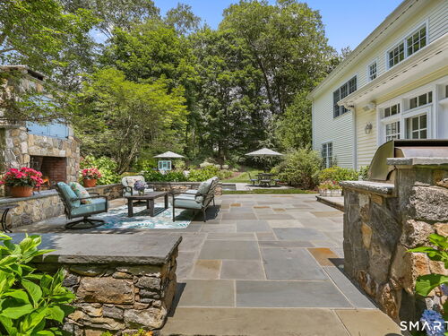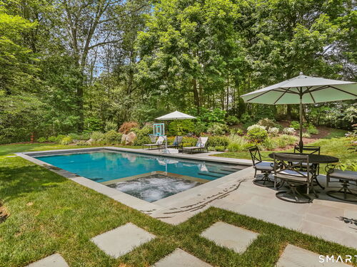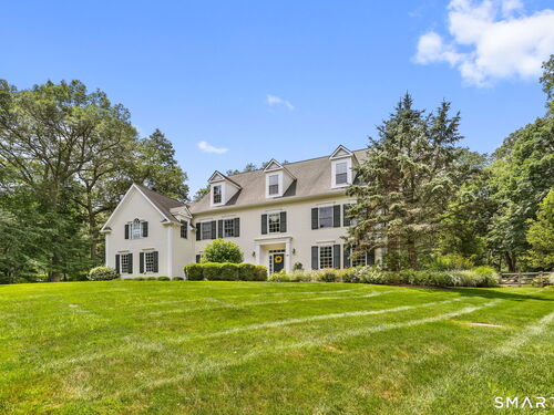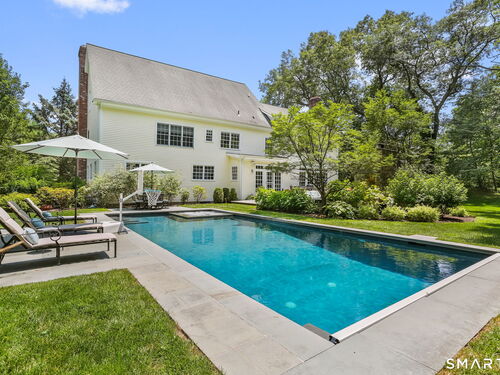 Classic 4-bedroom center hall Colonial set on a beautifully landscaped property with exceptional outdoor living. Ideally located close to everything New Canaan has to offer, the home features a stunning pool, expansive stone terrace with outdoor fireplace, built in grill and smoker, and a private yard designed for seamless indoor-outdoor enjoyment. Designed for both everyday living and entertaining, the home offers a gracious and well-proportioned layout across three finished levels. The two story entry hall is flanked by a formal living room with fireplace and a private office while the elegant dining room is conveniently located off the spacious eat in kitchen that serves as the heart of the home. A comfortable family room with wood burning fireplace opens directly to the outdoor entertaining areas, the mudroom, three car garage and back staircase. The second level offers four generously sized bedrooms, including a spacious primary suite, along with well-appointed bathrooms, excellent closet space, and a versatile bonus room. The fully finished lower level is a true highlight, featuring a wine room, gym, playroom, and a custom home theater, creating an ideal extension of the living space for recreation and relaxation. Surrounded by mature landscaping that ensures privacy and tranquility, this timeless New Canaan Colonial combines thoughtful amenities, elegant flow, and outstanding indoor-outdoor living.