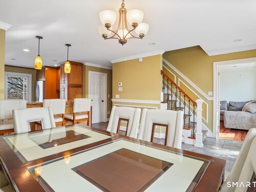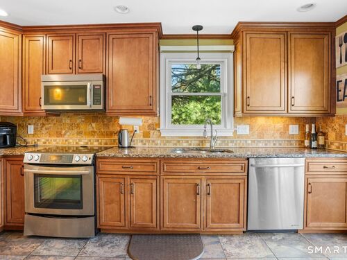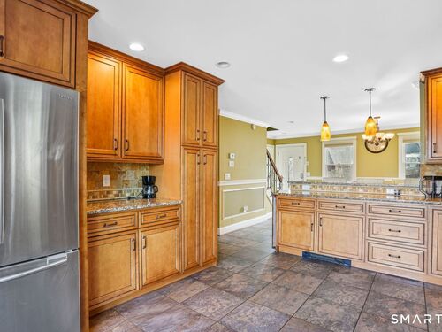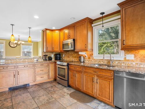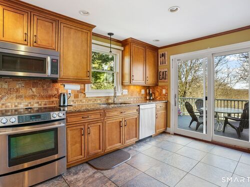 Welcome to this spacious and versatile fully dormered Cape Cod offering 2,415 sq ft of living space! This home features a bright kitchen with granite countertops, breakfast bar seating, and abundant natural light leading to a wrap-around Trex deck - perfect for entertaining or relaxing outdoors. The flexible lower level includes a second kitchen, full bathroom, and additional bedroom, ideal for extended living, guests, or potential in-law setup, with walk-out access to a private deck. Upstairs, you'll find generously sized bedrooms with great finishes and comfortable living space throughout. Conveniently located on Coram Rd, this home is a commuter's dream with quick access to Route 110, Route 8, Route 15, and I-95. Offered as-is - a great opportunity with space, flexibility, and value.