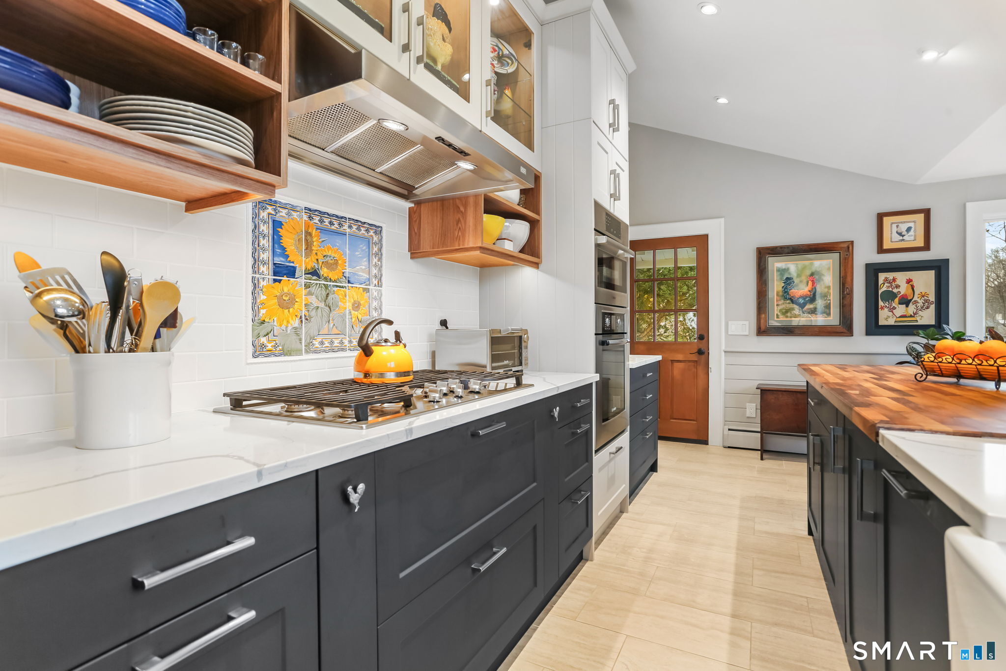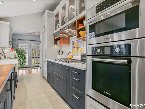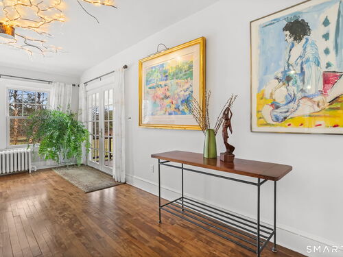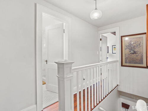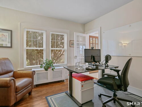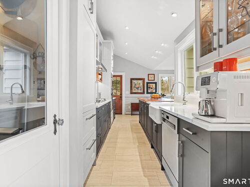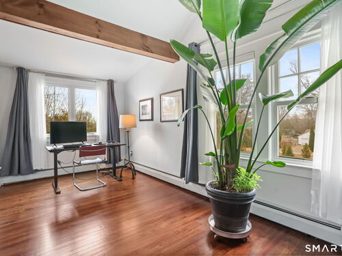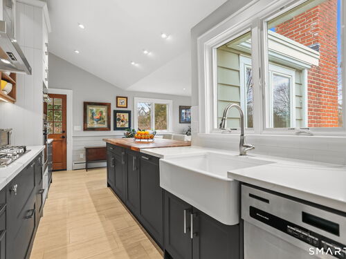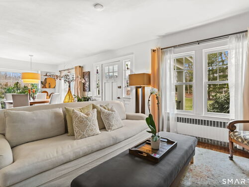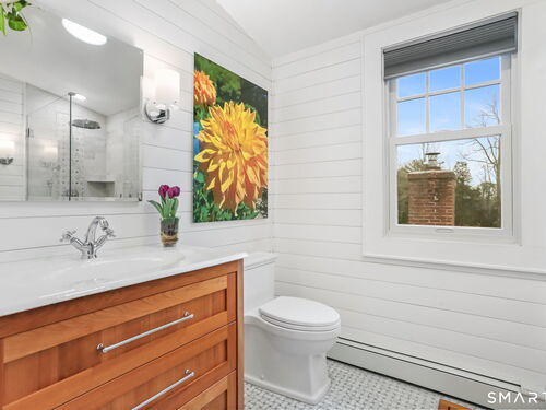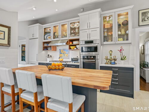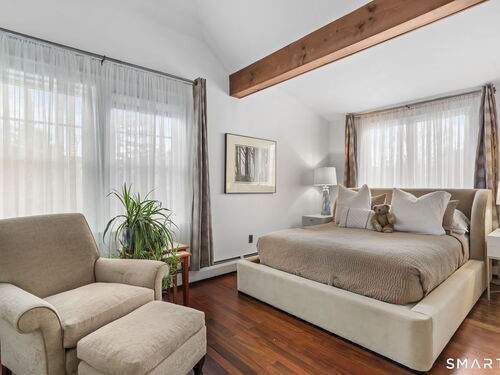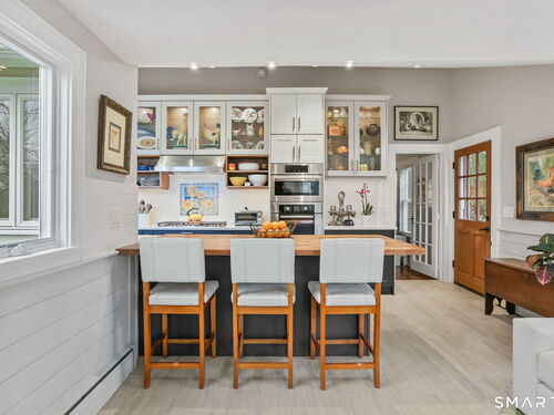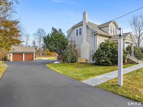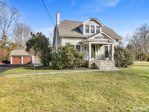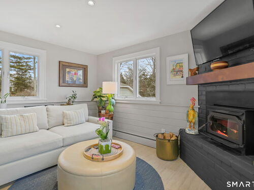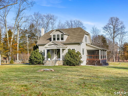 Set on an incredible 1.45 acres of flat, private land in the heart of the historic Silvermine community, 98 Comstock Hill Avenue offers a rare blend of space, character, and thoughtful updates. The home opens to a generous living room with a fireplace and a separate dining area, creating a welcoming flow for both everyday living and entertaining. From there, the beautifully updated kitchen features a mix of butcher block and quartz countertops, a breakfast bar, and a modern pantry with a wine cooler, opening to a cozy den anchored by a wood-burning fireplace. Adjacent to the kitchen is a light-filled space currently used as an art gallery, where French doors lead to a screened-in porch overlooking the expansive grounds. The main level also includes a dedicated office and a newly updated full bath. Upstairs, the primary bedroom impresses with soaring ceilings, exposed beams, and walk-in closet space, while two additional bedrooms offer flexibility for guests, work, or creative use. The upper-level full bath features Carrera marble tile, high-end Bender dual vanities, and a modern shower stall with a rainfall showerhead. A large basement provides abundant storage, and outside, a detached two-car garage, long private driveway, outdoor fireplace with grill, and open acreage invite endless possibilities. Enjoy modern comforts and room to expand in historic Silvermine, near Silvermine Farm & Market and Gray Barns-all in a setting that feels both private and connected.