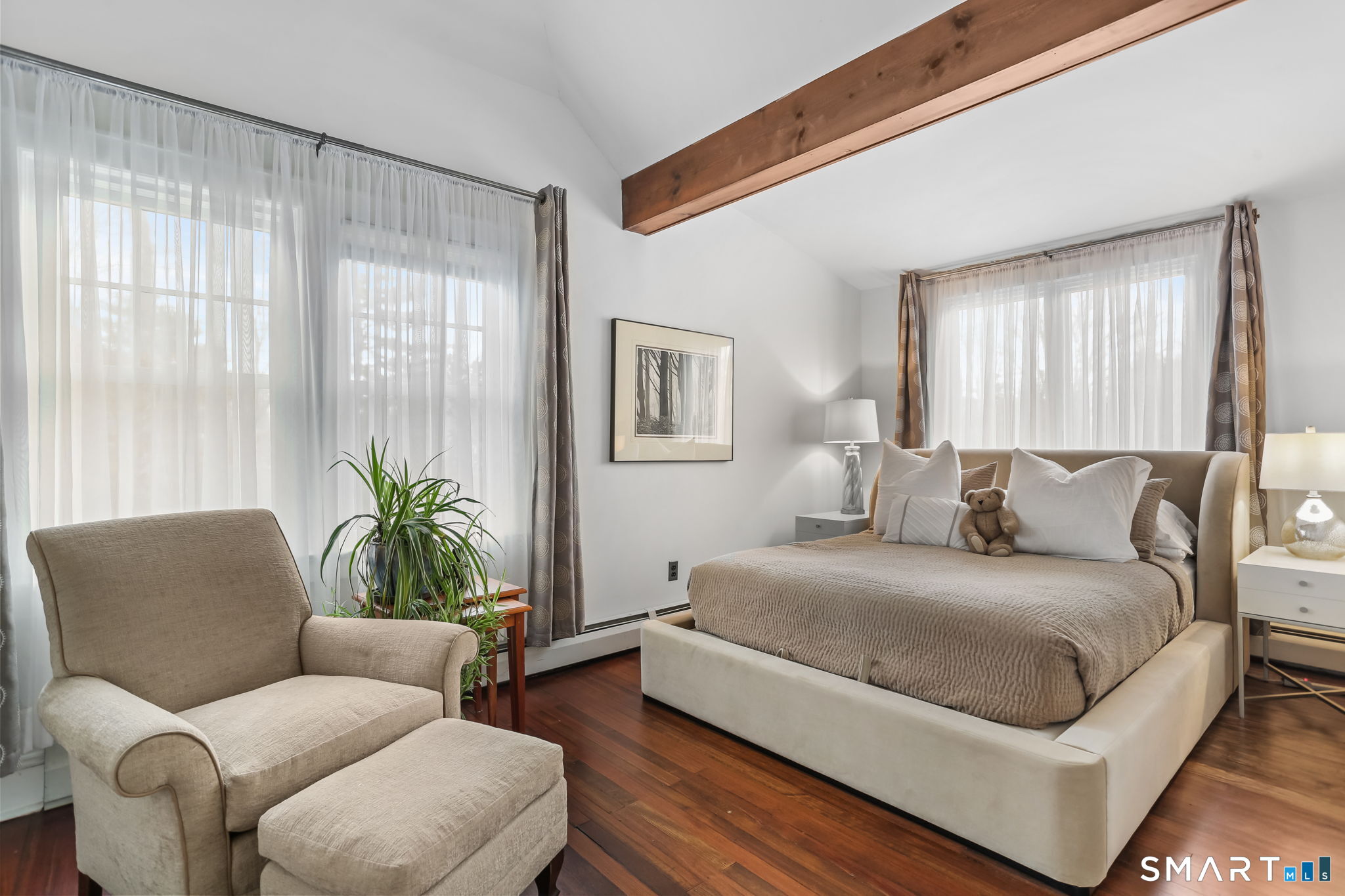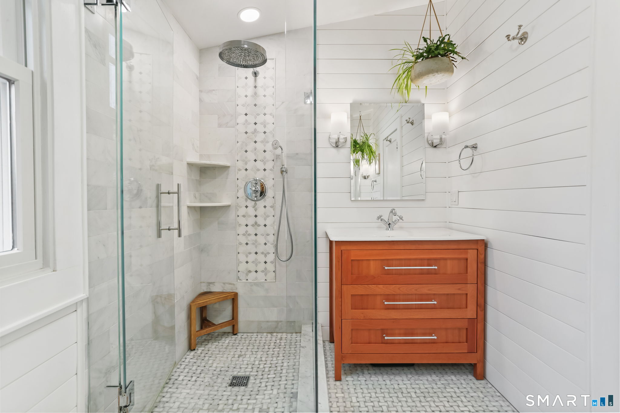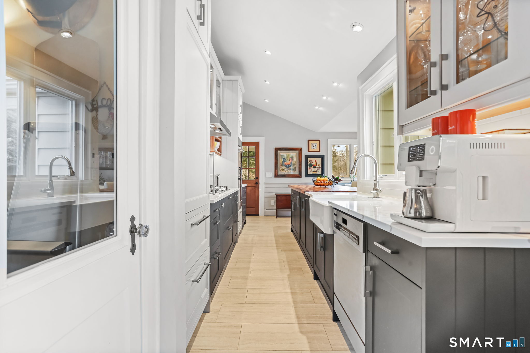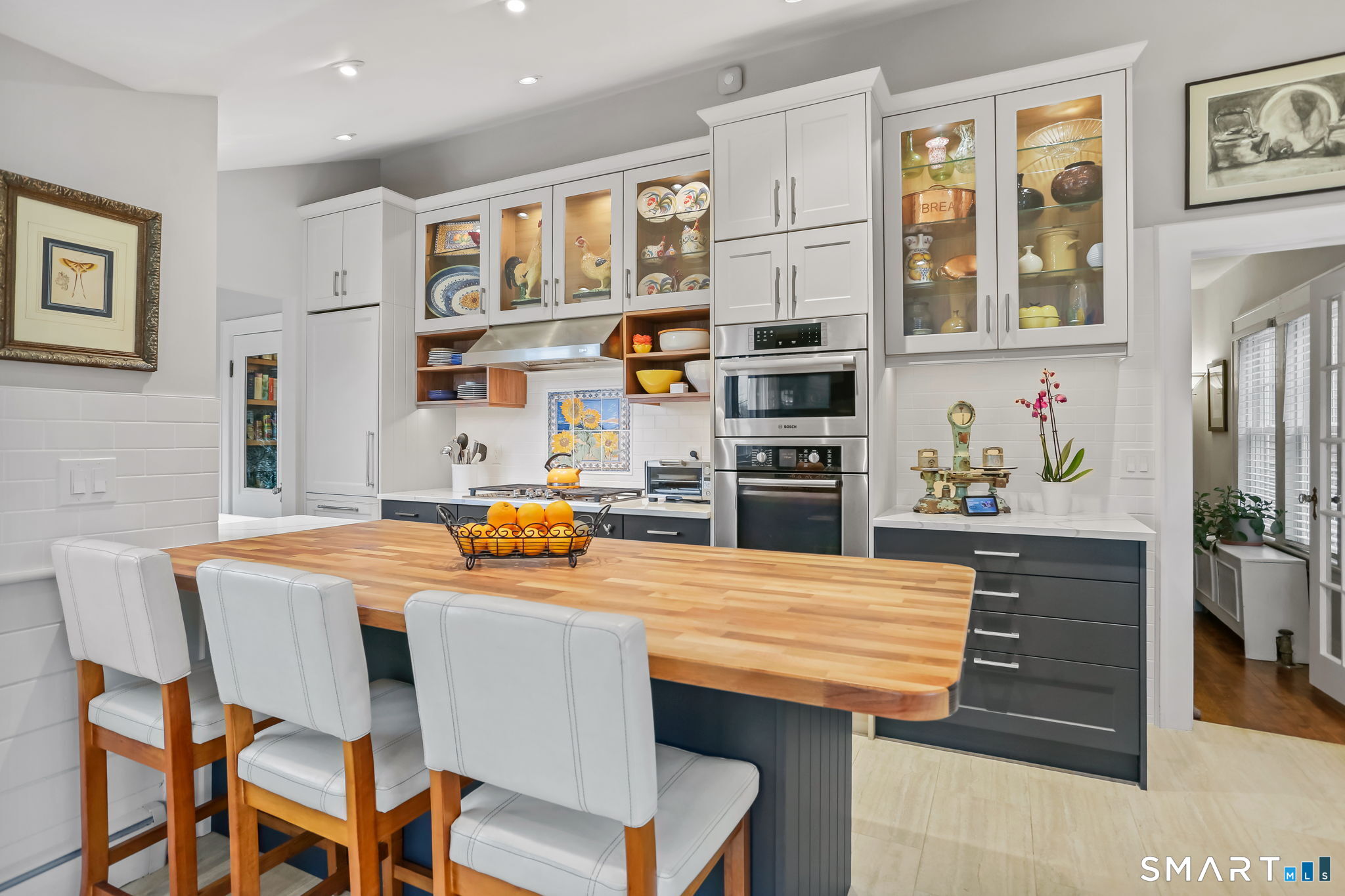 Set on an incredible 1.45 acres of flat, private land in the heart of the historic Silvermine community, 98 Comstock Hill Avenue offers a rare blend of space, character, and thoughtful updates. The home opens to a generous living room with a fireplace and a separate dining area, creating a welcoming flow for both everyday living and entertaining. From there, the beautifully updated kitchen features a mix of butcher block and quartz countertops, a breakfast bar, and a modern pantry with a wine cooler, opening to a cozy den anchored by a wood-burning fireplace. Adjacent to the kitchen is a light-filled space currently used as an art gallery, where French doors lead to a screened-in porch overlooking the expansive grounds. The main level also includes a dedicated office and a newly updated full bath. Upstairs, the primary bedroom impresses with soaring ceilings, exposed beams, and walk-in closet space, while two additional bedrooms offer flexibility for guests, work, or creative use. The upper-level full bath features Carrera marble tile, high-end Bender dual vanities, and a modern shower stall with a rainfall showerhead. A large basement provides abundant storage, and outside, a detached two-car garage, long private driveway, outdoor fireplace with grill, and open acreage invite endless possibilities. Enjoy modern comforts and room to expand in historic Silvermine, near Silvermine Farm & Market and Gray Barns-all in a setting that feels both private and connected.