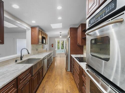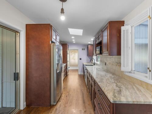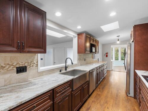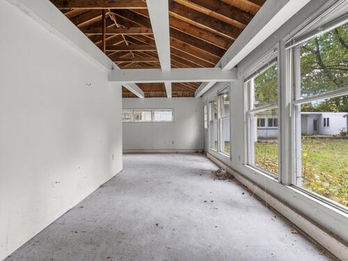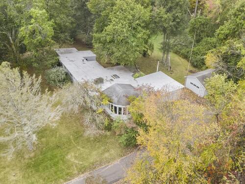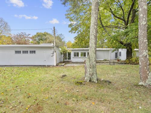 Step into this one-of-a-kind mid-century ranch, nestled in the heart of Monroe. This home combines timeless character with limitless potential. Featuring an open-concept design, the home is bathed in natural light thanks to expansive windows. The property includes both an attached two-car garage and a detached outbuilding with an open-concept room-partially finished and ideal for storage, a studio, or a workshop. The back section of the outbuilding also includes a separate door for storage. The flat, level lot offers privacy, making it a perfect setting for outdoor gatherings. From the driveway, you'll be greeted by a walkway leading to the covered front entryway, adding to the home's curb appeal. Inside, a light-filled foyer welcomes you with its architectural skylight & surrounding windows, creating an inviting first impression. This space, with French doors opening to the yard, is perfect for a dining area. The updated kitchen features stainless appliances, abundant cabinetry & granite countertops. At the heart of the home is a striking rotunda, a versatile area that could function as a study, sitting room, dining nook, or home office. The floor plan includes a galley kitchen, a dining room, and living room w/ fireplace. 3 generously-sized bedrooms & 2 full baths complete the main level. An enclosed porch offers additional indoor-outdoor living space. The lower level is partially finished, providing extra living space and ample storage.
