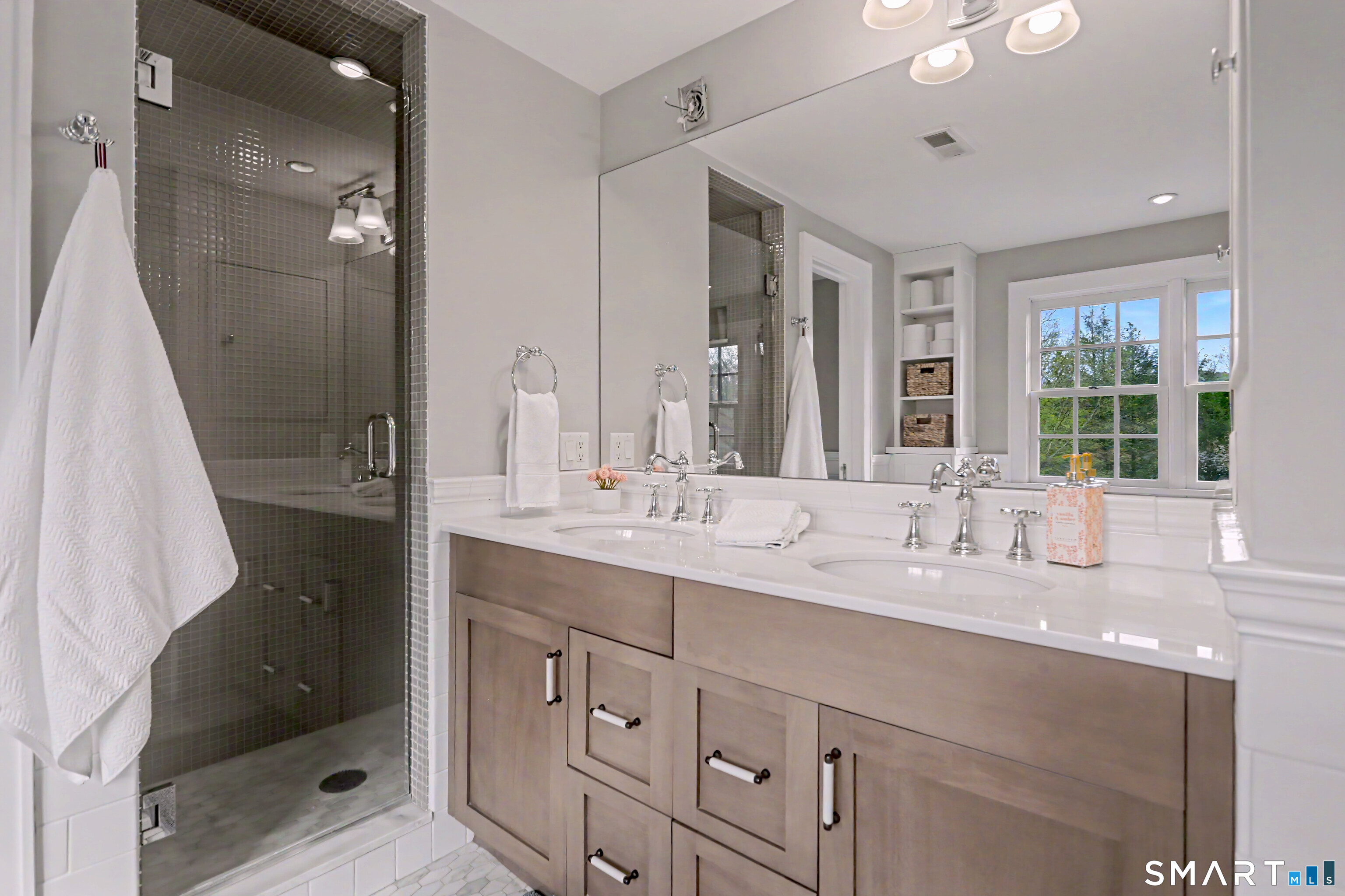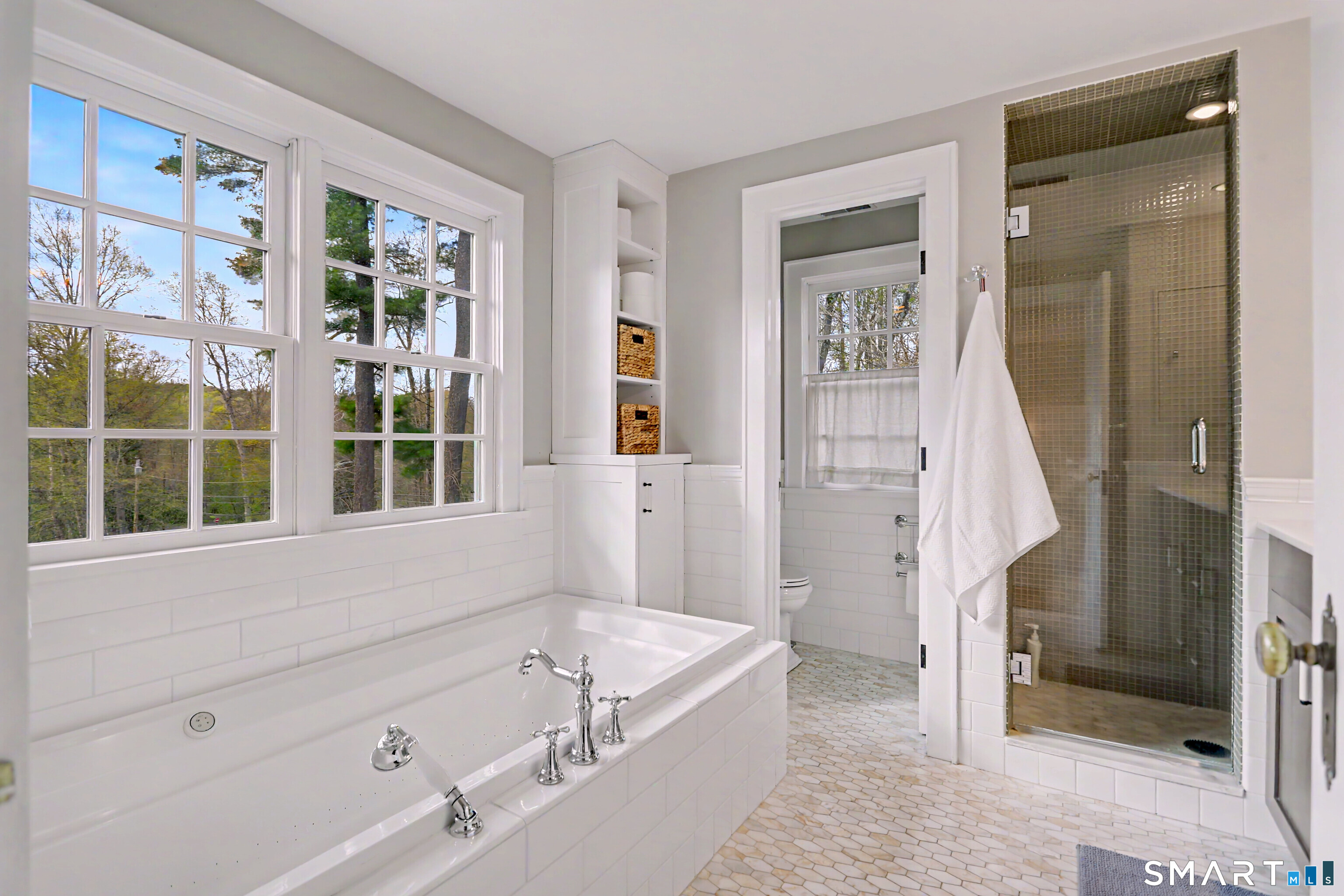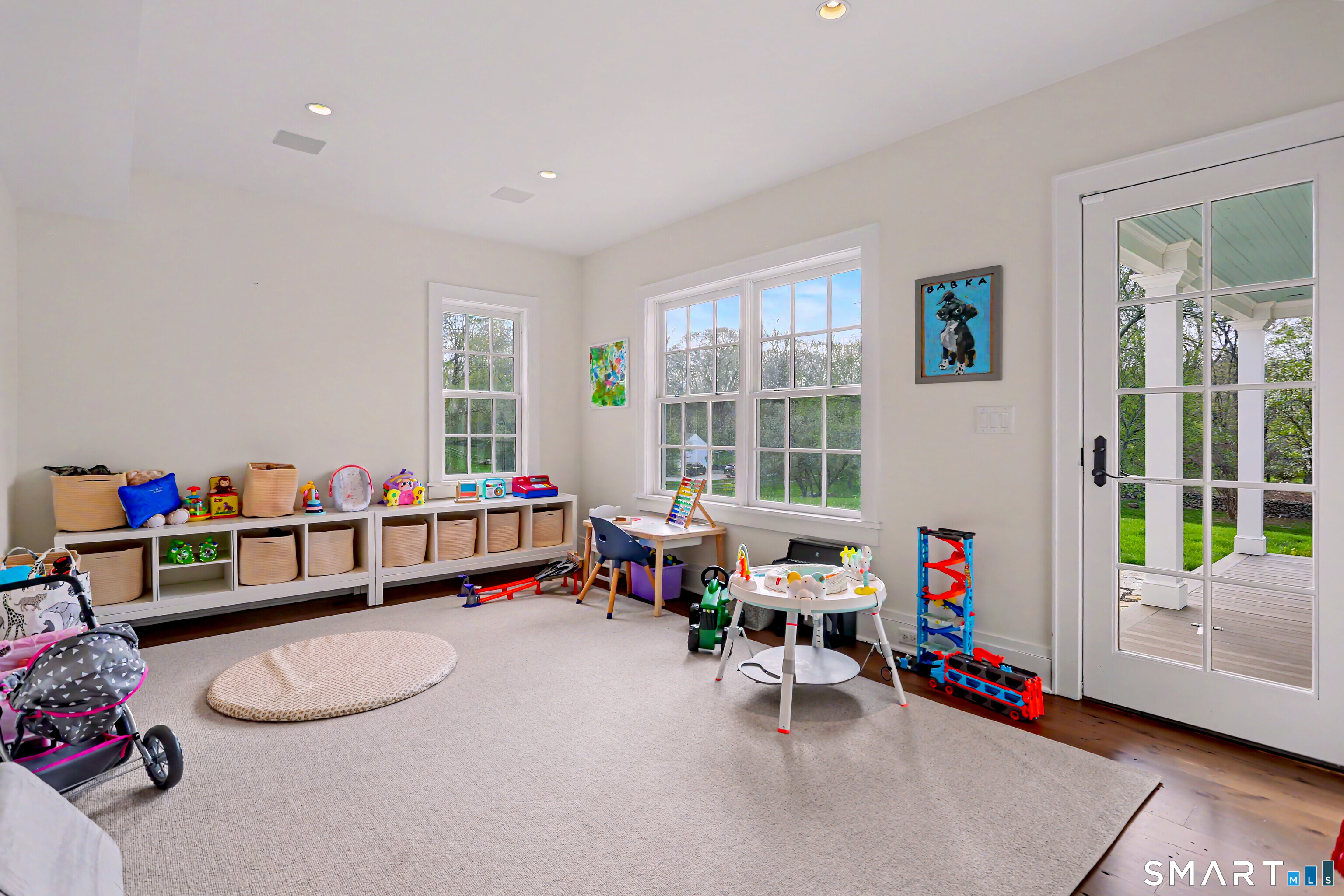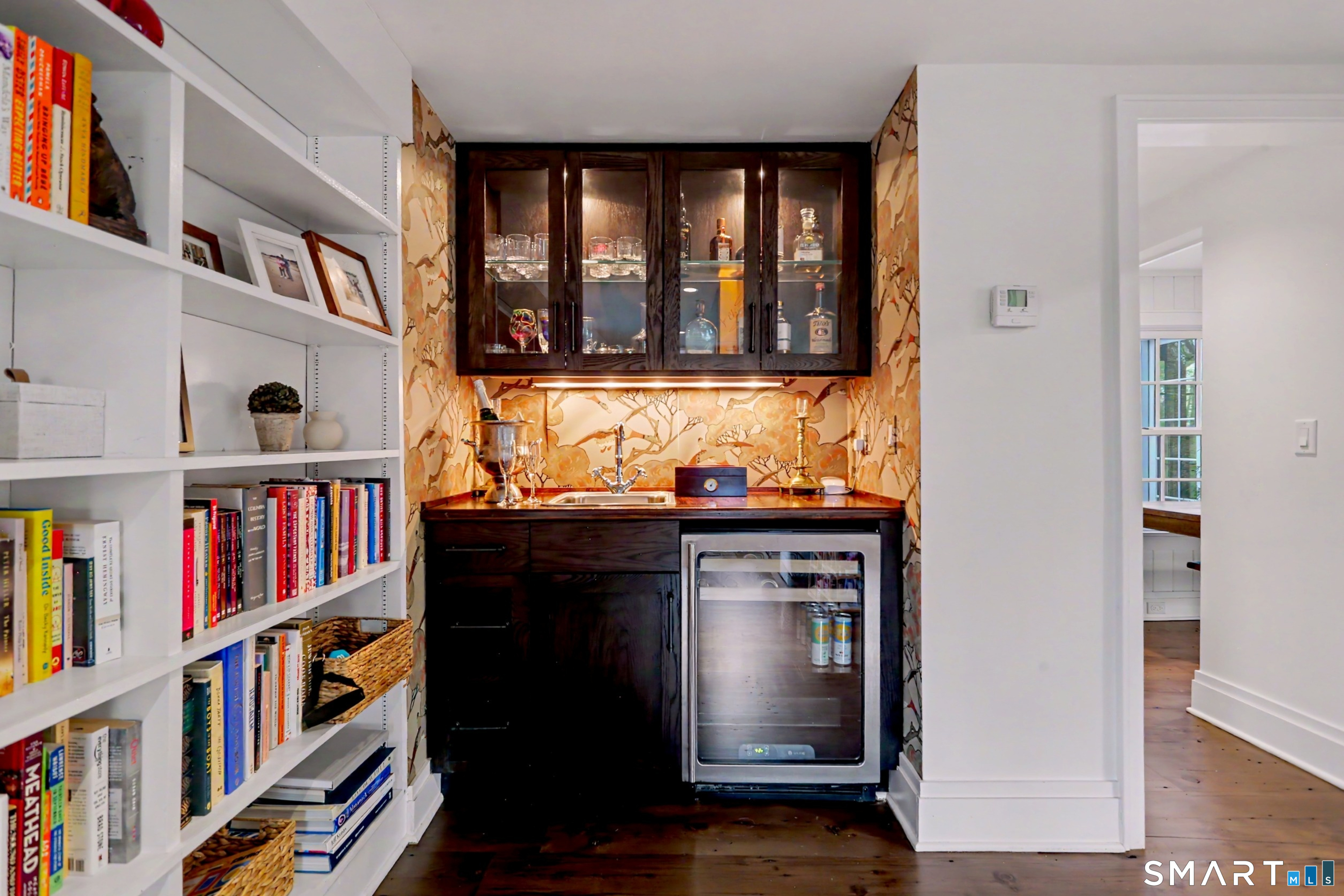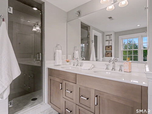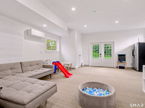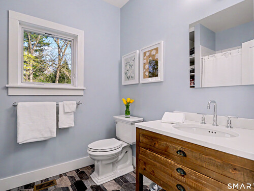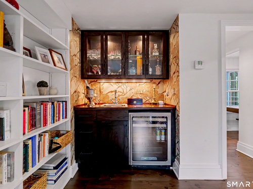 A thoughtfully restored (2012-2017) post-and-beam colonial is perched on a scenic rise with panoramic views of meticulously maintained grounds, combining timeless elegance with high-performance modern comfort and amenities. Details include original barn doors, reclaimed wide-plank floors, abundant natural light through skylights, and a gracious wrap-around veranda. First Floor: Features an inviting living room with exposed beams and a wood-burning fireplace. The heart of the home is a generous eat-in kitchen, boasting an expansive island, premium appliances, an integrated desk nook, and French doors connecting to outdoor spaces. A den includes a wet bar, wine storage, and handcrafted built-in cabinetry. Also on this level are two well-appointed bedrooms, a full bath, a powder room, and convenient first-floor laundry. Second Floor:The primary bedroom suite is a true retreat with a wood-burning fireplace, separate sitting area, a custom closet system, and a spa-like bathroom offering pastoral vistas. Two additional bedrooms, a second full bath, and upper-level laundry complete this floor. Lower Level: A newly converted, climate-controlled, recreational / play room. A separate detached barn offers multiple possibilities-workshop, studio, storage, or a future renovation project. Barn-featuring a restored roof and structural reinforcements-is as-is and stands ready for conversion, with architectural plans included in a sale