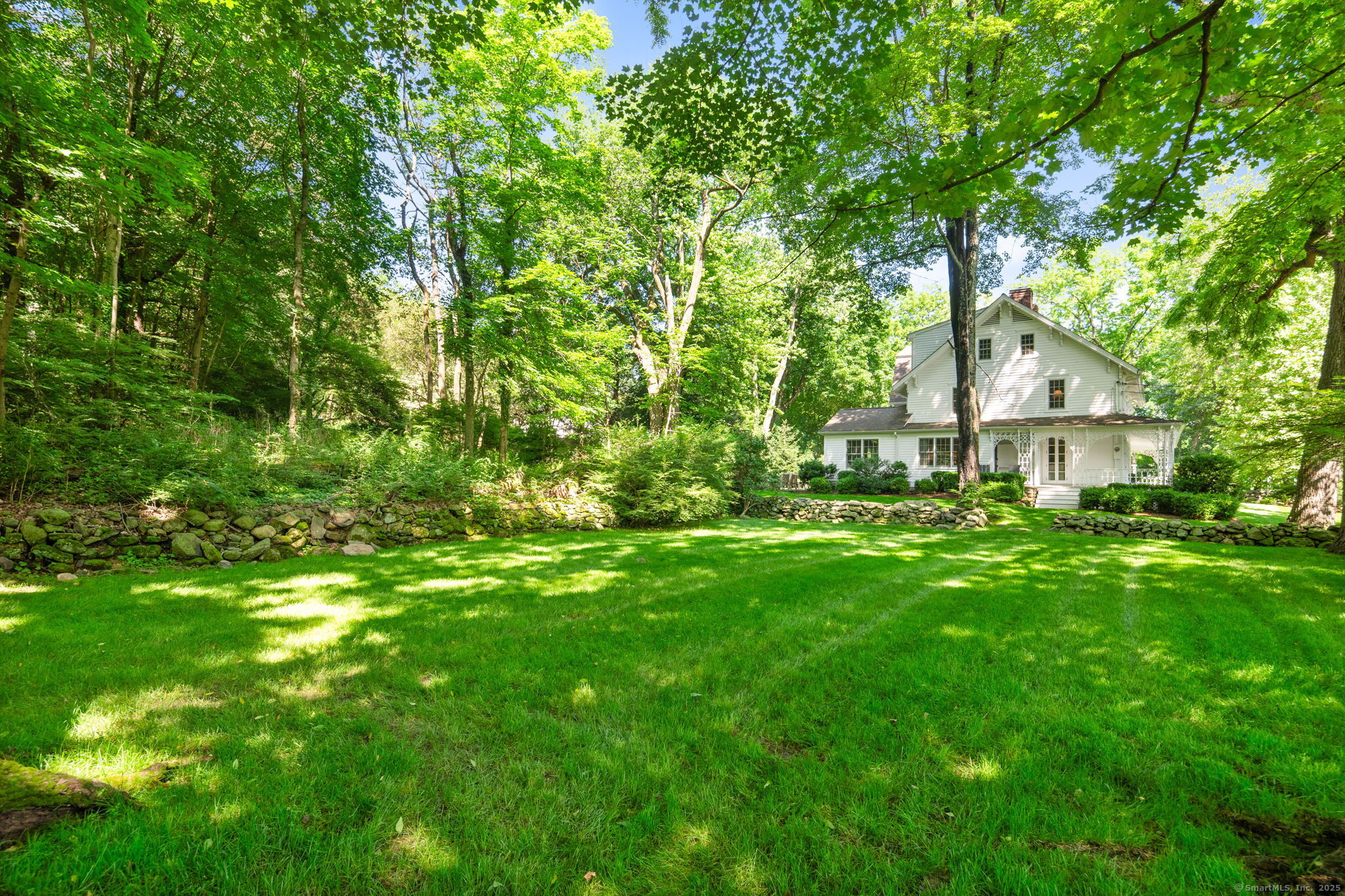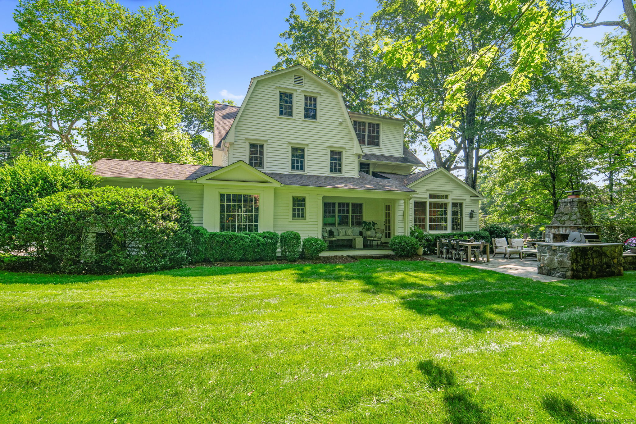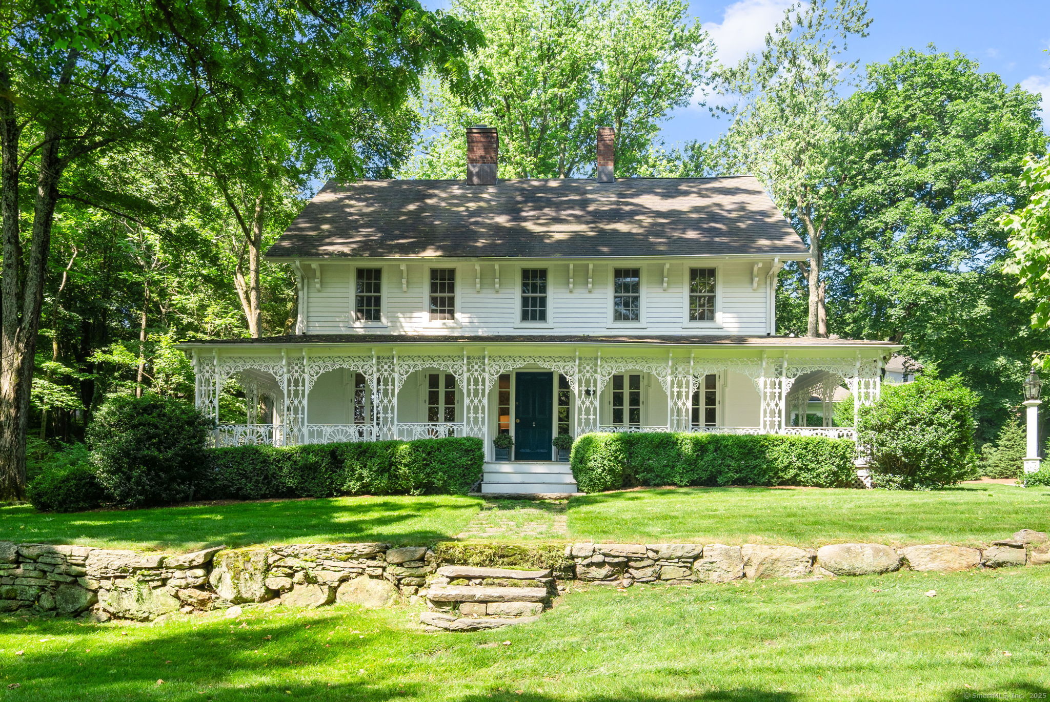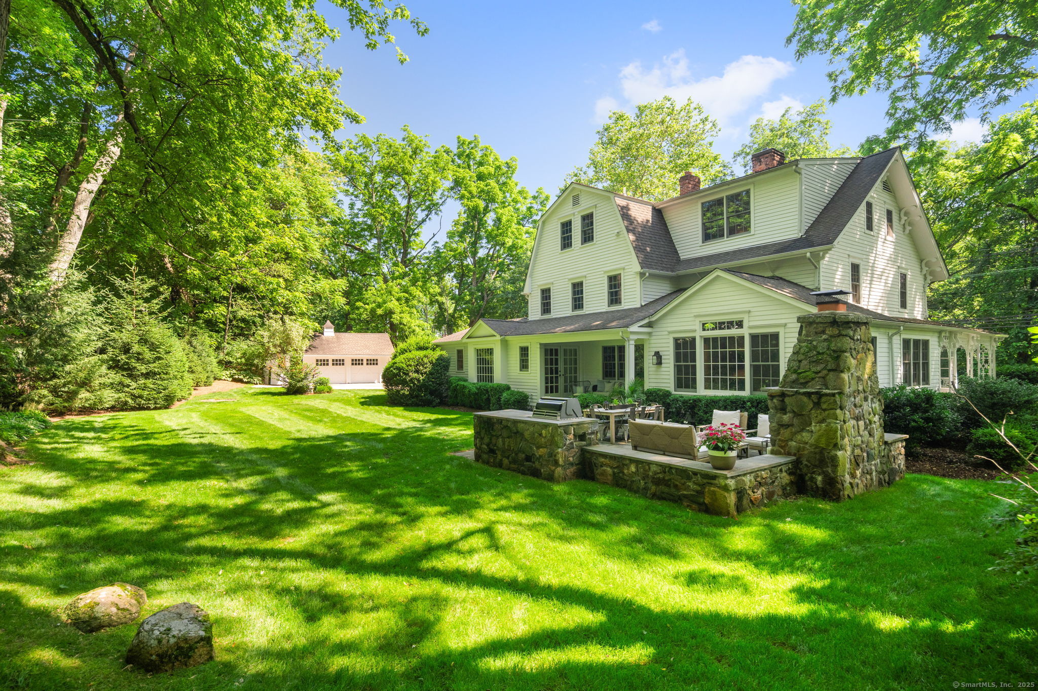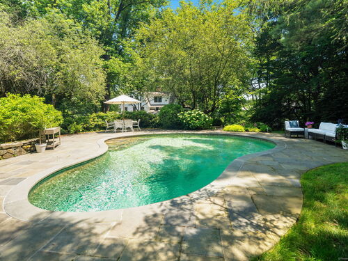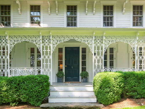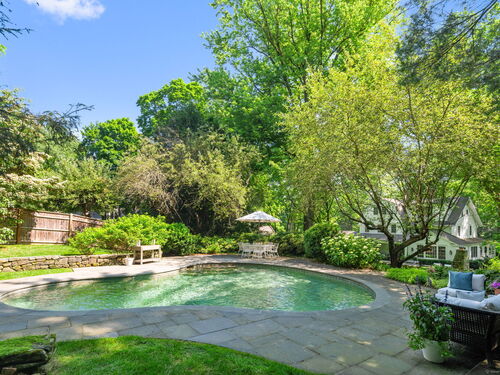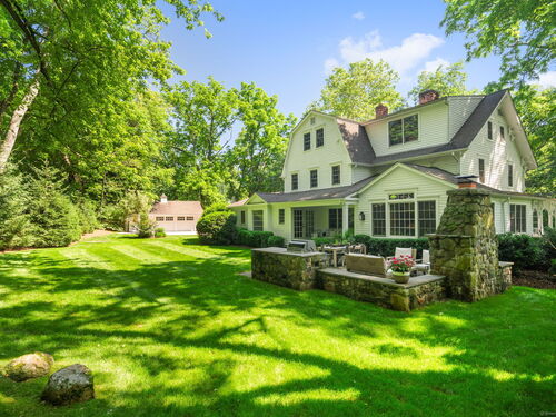 This Old (New) Smart House! No detail has been overlooked in this beautiful antique home, completely restored with grace and charm at every turn. From the eat-in kitchen with walnut island, soapstone countertops, and authentic English hardware, to the cozy and comfortable layout of the indoor and outdoor spaces, you'll feel right at home here. The family room flows into living and sunroom, with formal dining room, library and powder room on the main floor. Four+ bedrooms plus two offices and 3 baths on the upper levels, all recently refurbished. The wraparound porch and painted latticework is reminiscent of the lovely Charleston/New Orleans charisma that carries through the interiors, with a carefully curated fresh take on historic paint colors, moldings, flooring and decor. The outdoor kitchen with built-in Weber grill and wood-burning fieldstone fireplace, surrounded by Connecticut bluestone patio make for an all-season getaway right outside the back door. The freeform pool and surrounding patio and landscaping make a sunny oasis to soak up the good life!