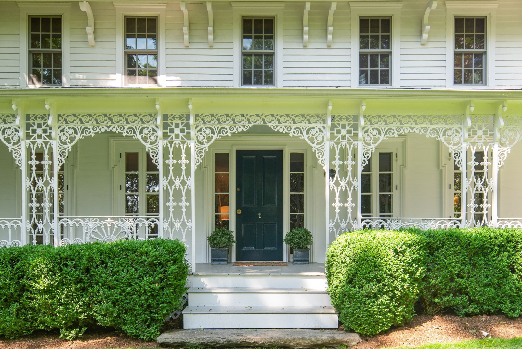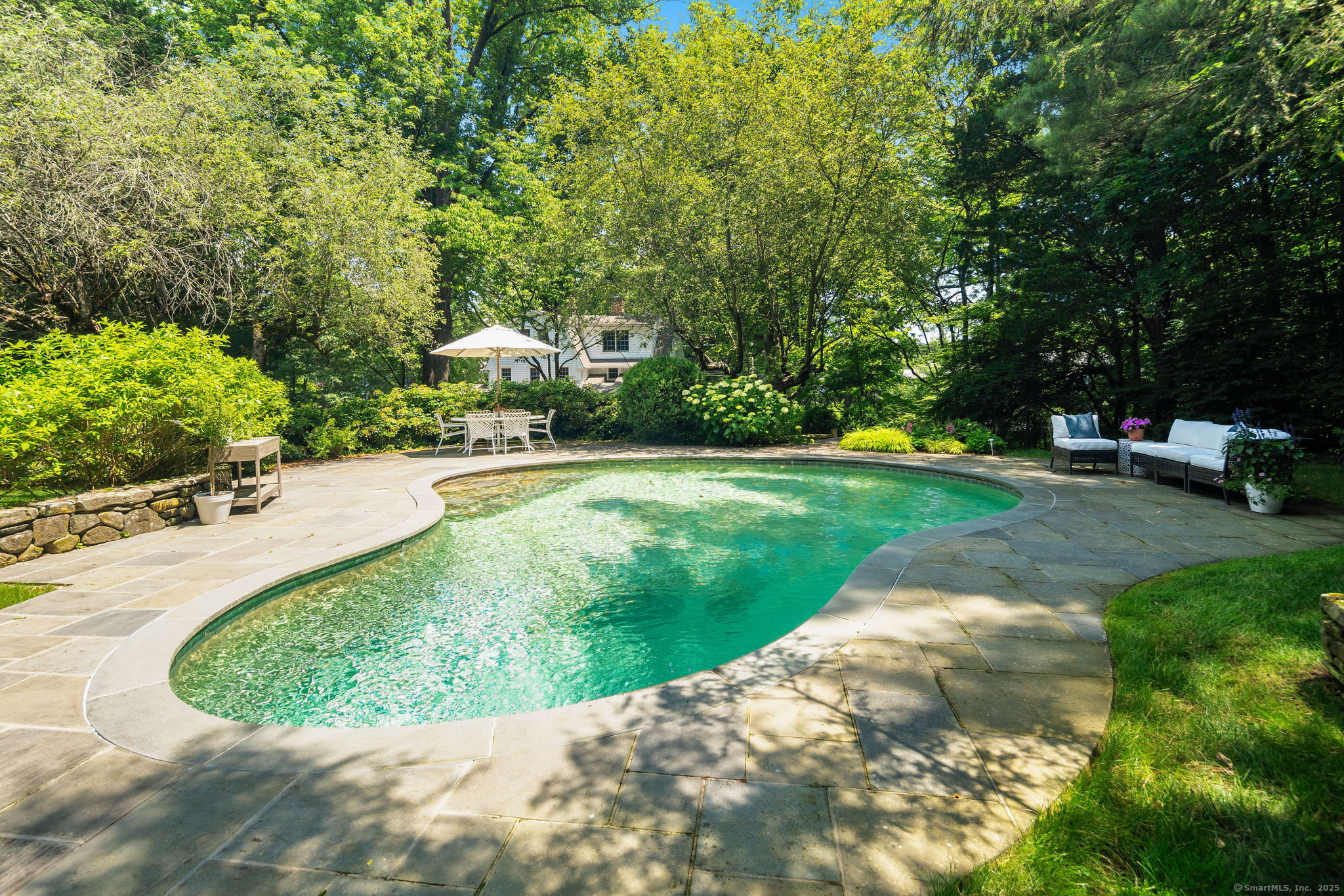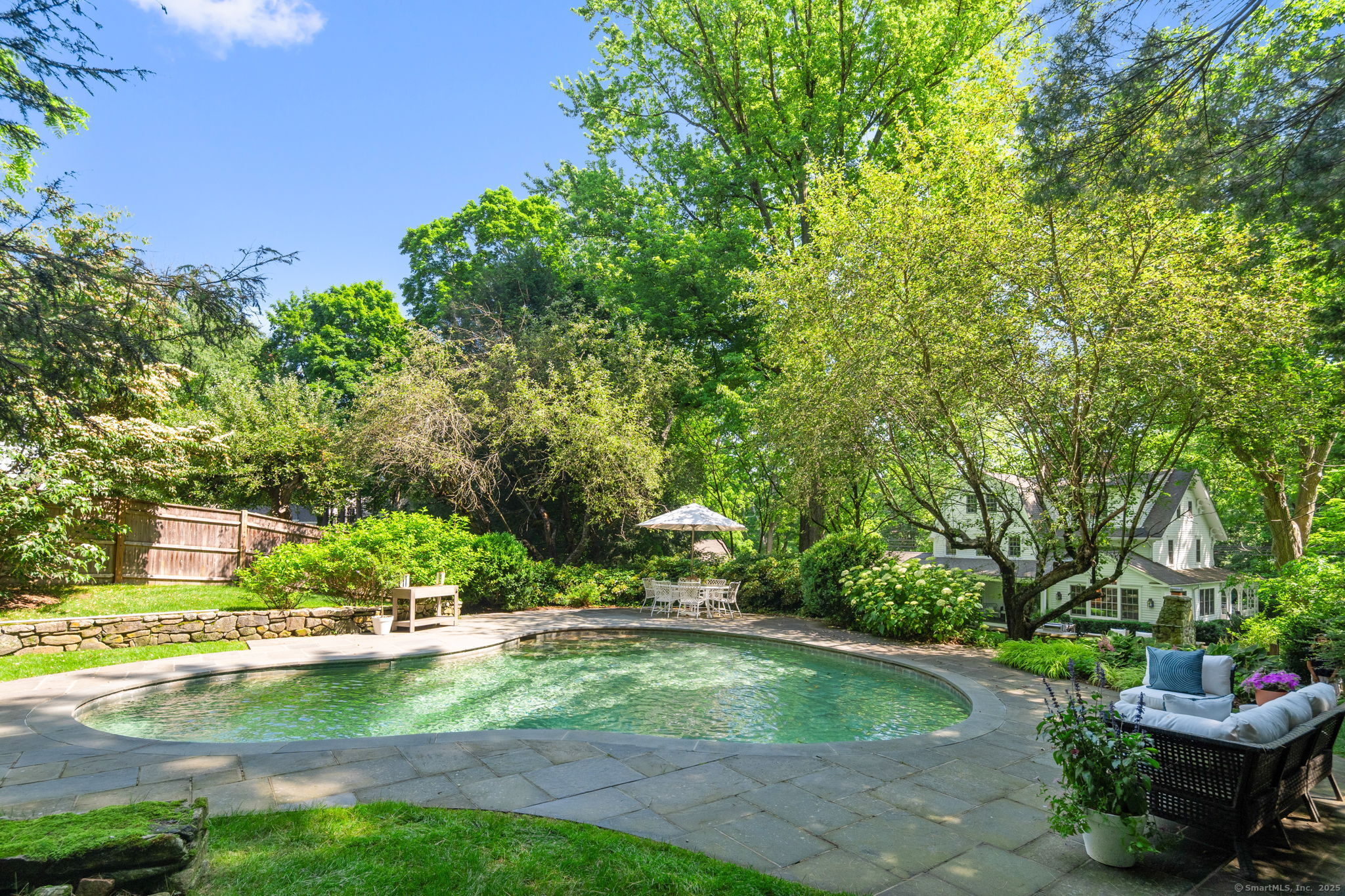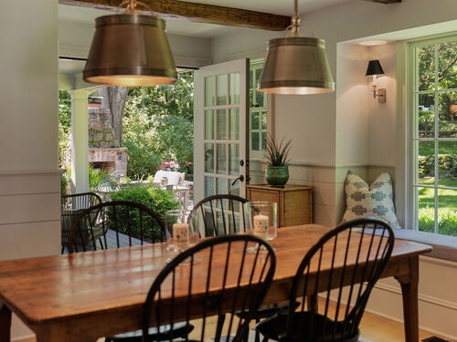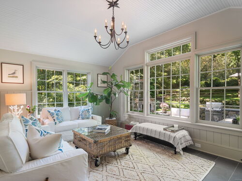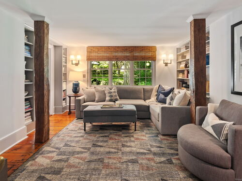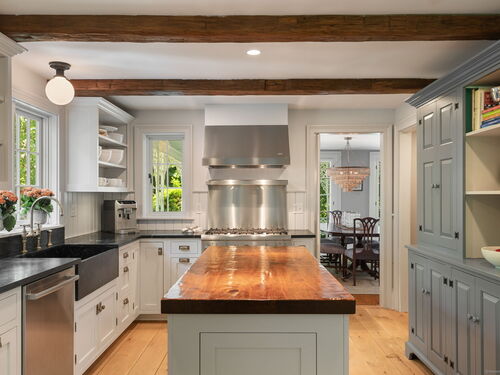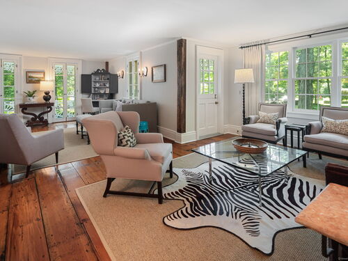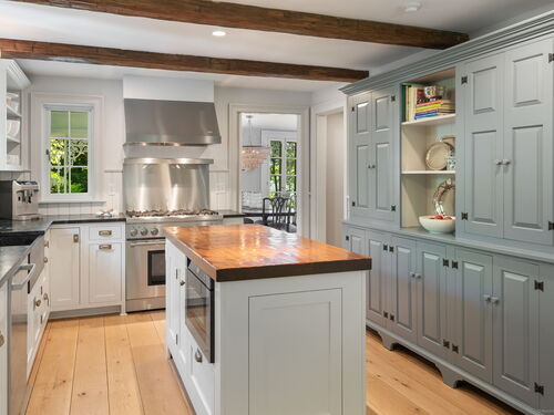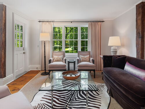 This Old (New) Smart House! No detail has been overlooked in this beautiful antique home, completely restored with grace and charm at every turn. From the eat-in kitchen with walnut island, soapstone countertops, and authentic English hardware, to the cozy and comfortable layout of the indoor and outdoor spaces, you'll feel right at home here. The family room flows into living and sunroom, with formal dining room, library and powder room on the main floor. Four+ bedrooms plus two offices and 3 baths on the upper levels, all recently refurbished. The wraparound porch and painted latticework is reminiscent of the lovely Charleston/New Orleans charisma that carries through the interiors, with a carefully curated fresh take on historic paint colors, moldings, flooring and decor. The outdoor kitchen with built-in Weber grill and wood-burning fieldstone fireplace, surrounded by Connecticut bluestone patio make for an all-season getaway right outside the back door. The freeform pool and surrounding patio and landscaping make a sunny oasis to soak up the good life!