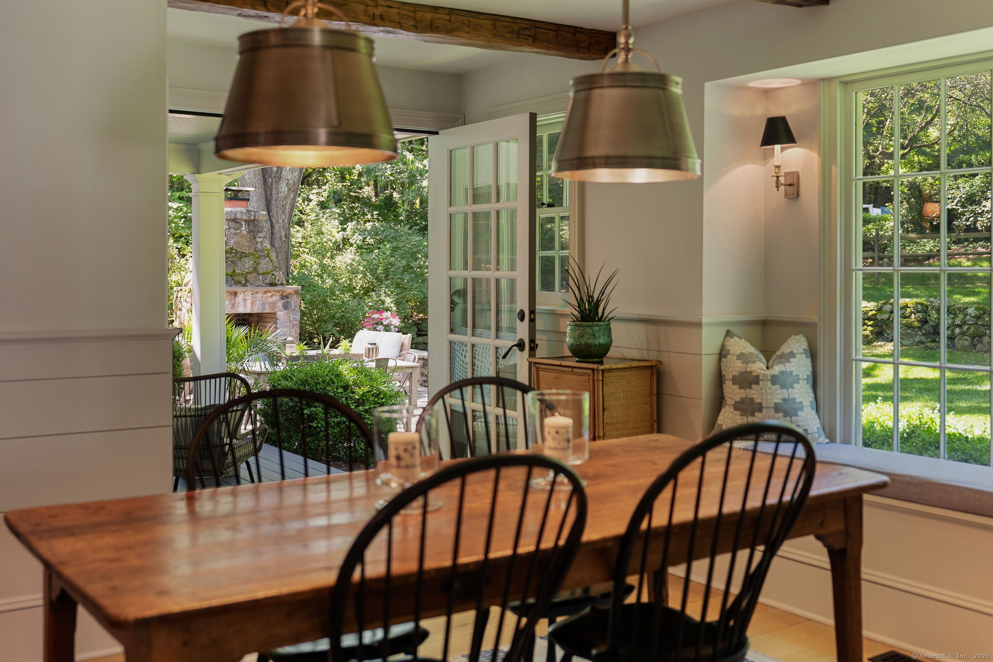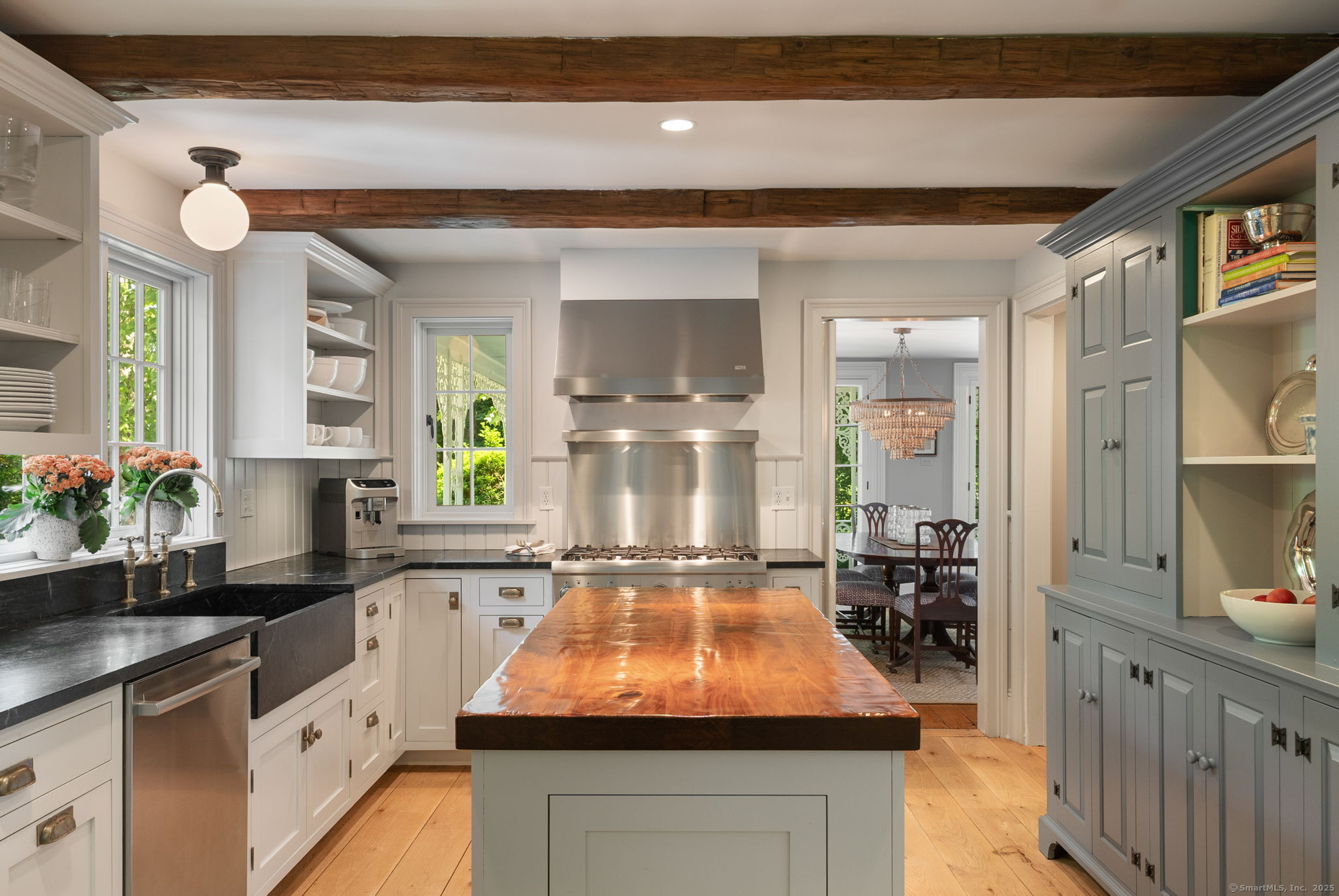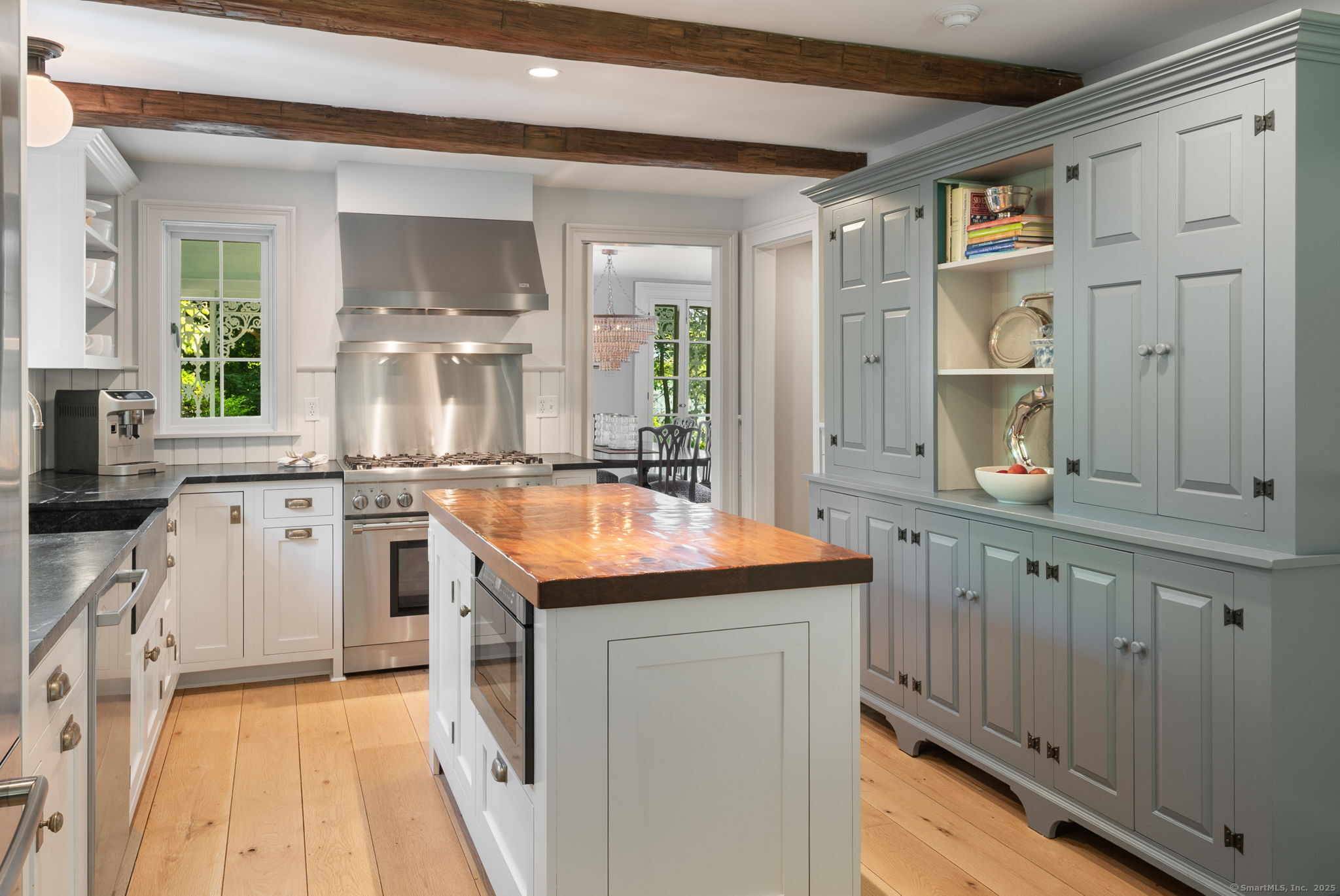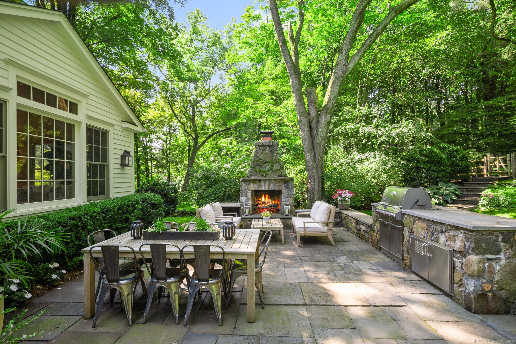 This Old (New) Smart House! No detail has been overlooked in this beautiful antique home, completely restored with grace and charm at every turn. From the eat-in kitchen with walnut island, soapstone countertops, and authentic English hardware, to the cozy and comfortable layout of the indoor and outdoor spaces, you'll feel right at home here. The family room flows into living and sunroom, with formal dining room, library and powder room on the main floor. Four+ bedrooms plus two offices and 3 baths on the upper levels, all recently refurbished. The wraparound porch and painted latticework is reminiscent of the lovely Charleston/New Orleans charisma that carries through the interiors, with a carefully curated fresh take on historic paint colors, moldings, flooring and decor. The outdoor kitchen with built-in Weber grill and wood-burning fieldstone fireplace, surrounded by Connecticut bluestone patio make for an all-season getaway right outside the back door. The freeform pool and surrounding patio and landscaping make a sunny oasis to soak up the good life!