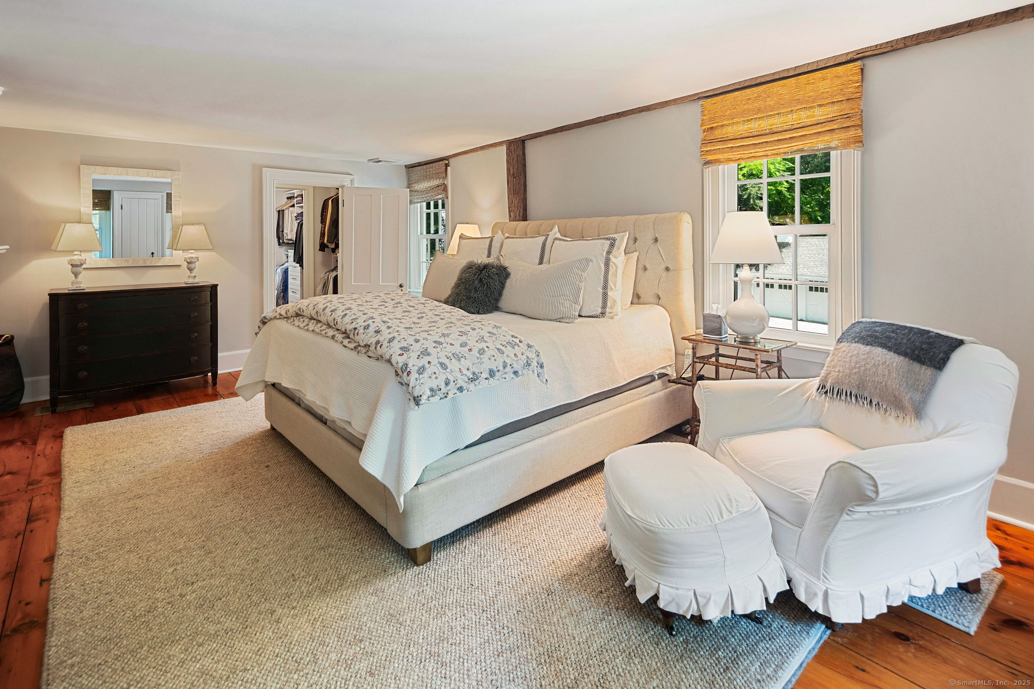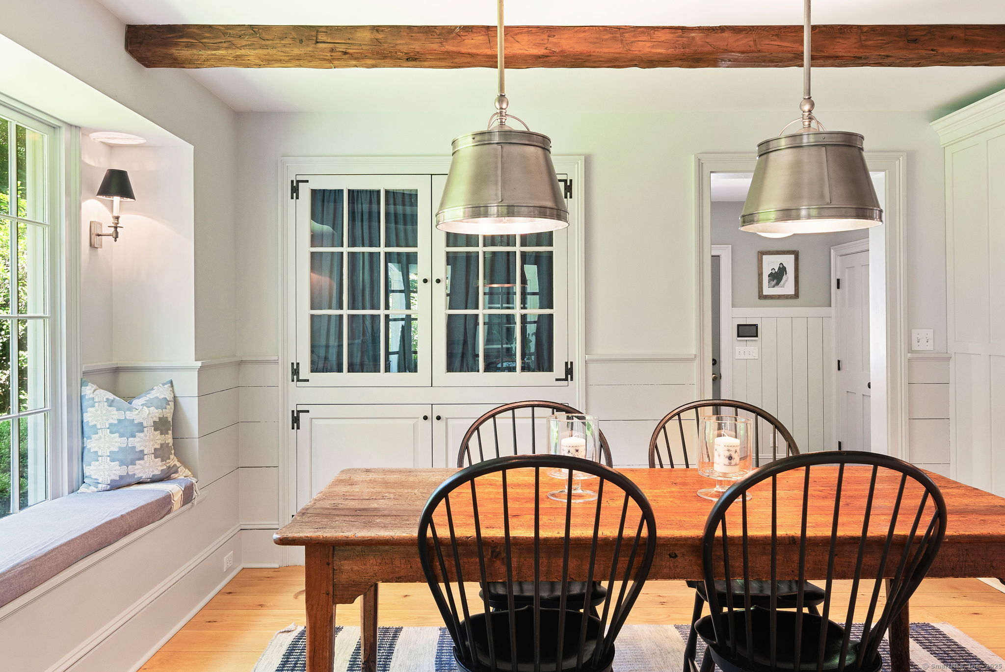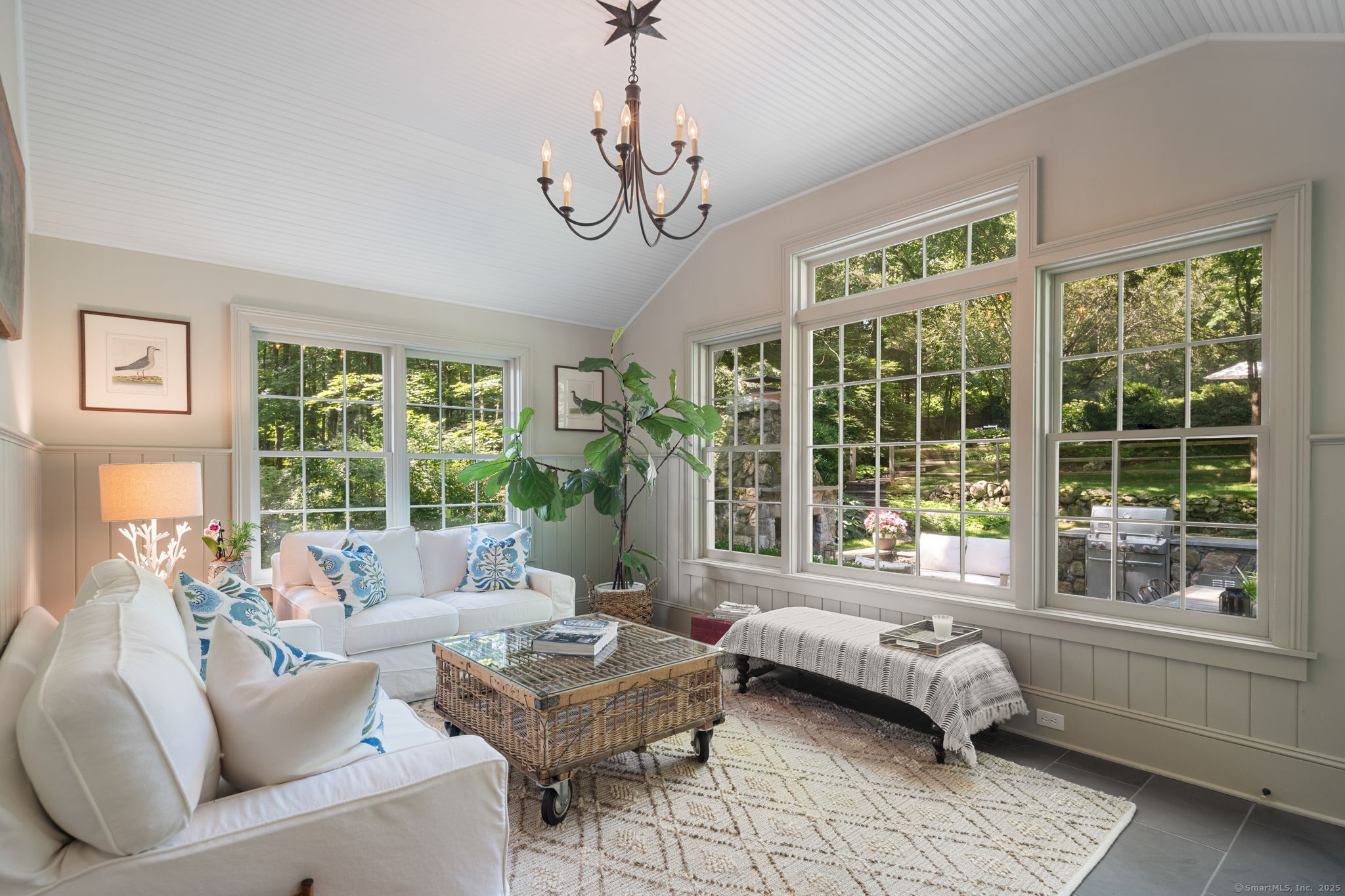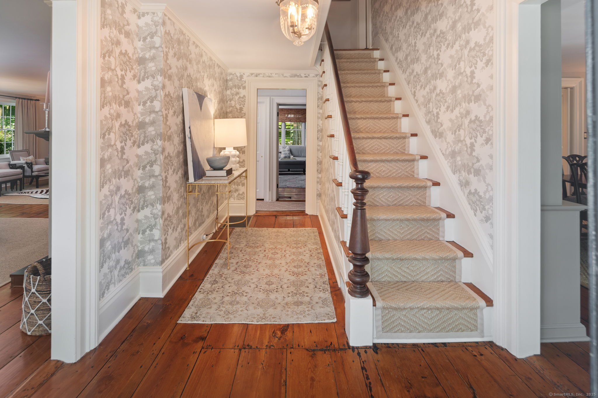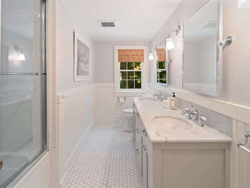 This Old (New) Smart House! No detail has been overlooked in this beautiful antique home, completely restored with grace and charm at every turn. From the eat-in kitchen with walnut island, soapstone countertops, and authentic English hardware, to the cozy and comfortable layout of the indoor and outdoor spaces, you'll feel right at home here. The family room flows into living and sunroom, with formal dining room, library and powder room on the main floor. Four+ bedrooms plus two offices and 3 baths on the upper levels, all recently refurbished. The wraparound porch and painted latticework is reminiscent of the lovely Charleston/New Orleans charisma that carries through the interiors, with a carefully curated fresh take on historic paint colors, moldings, flooring and decor. The outdoor kitchen with built-in Weber grill and wood-burning fieldstone fireplace, surrounded by Connecticut bluestone patio make for an all-season getaway right outside the back door. The freeform pool and surrounding patio and landscaping make a sunny oasis to soak up the good life!