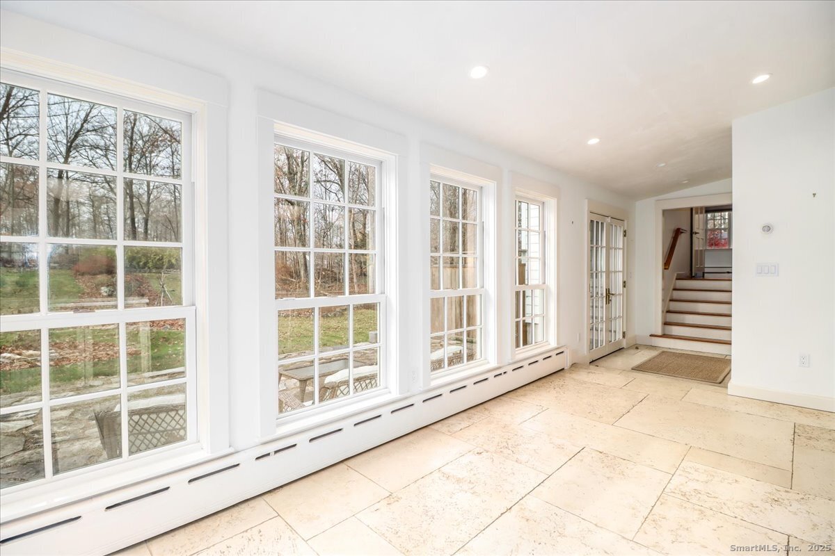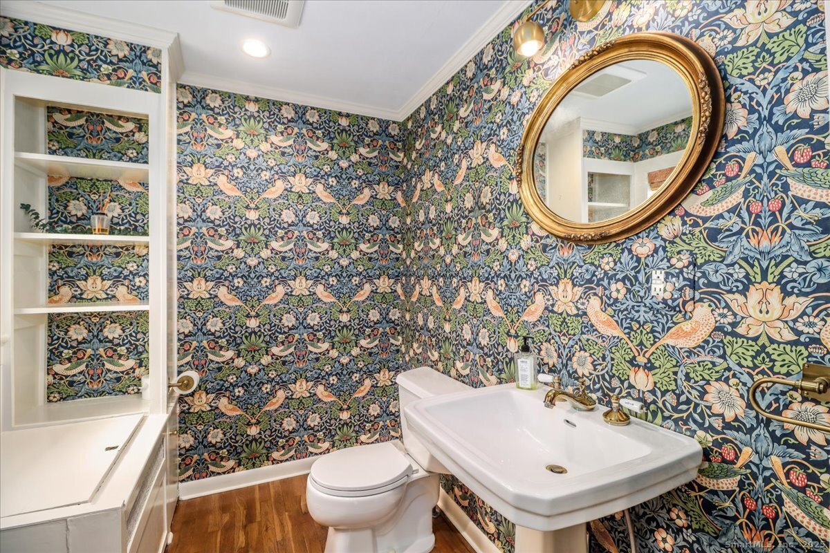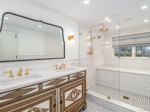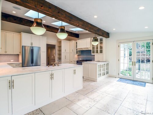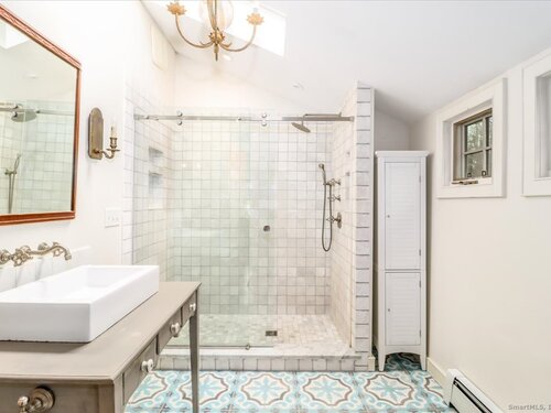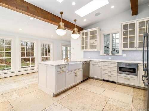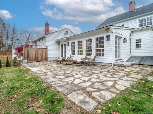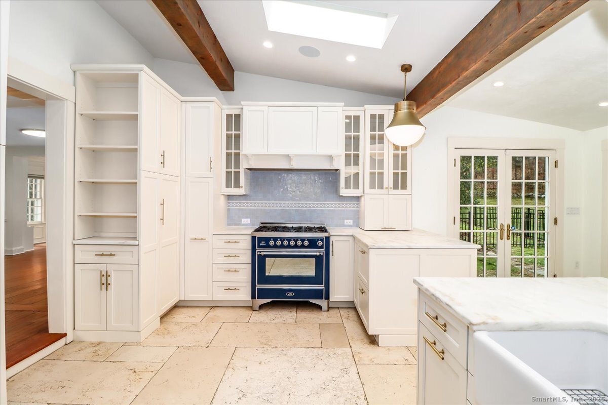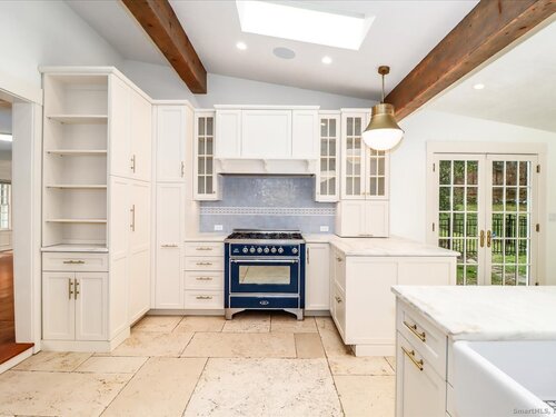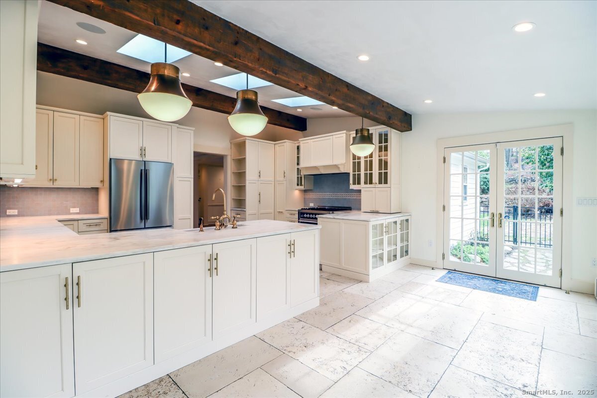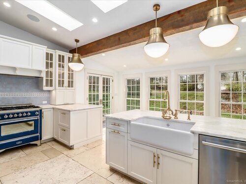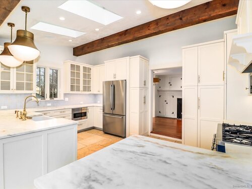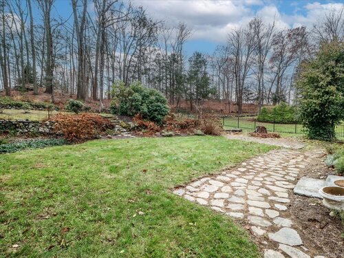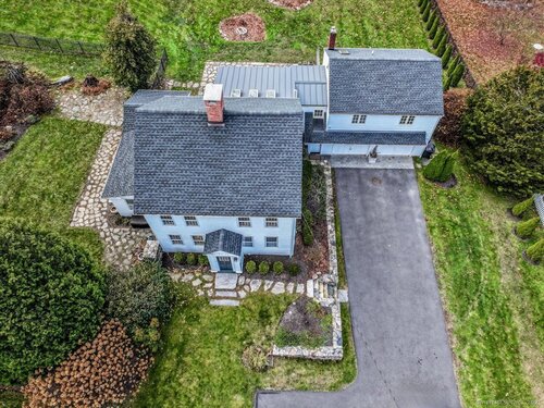 Stunning 3 Bedroom 2.5 bath storybook Antique Colonial situated on a beautifully landscaped 1.60 acres. This home radiates classic charm yet delivers the conveniences of modern day living. Breathtaking gourmet eat-in kitchen features soaring custom cabinetry, skylights, stainless steel appliances, magnificent blue gas/electric range, elegant limestone flooring, Imperial Danby marble countertops, tastefully tiled backsplash, farmhouse sink & gorgeous large pendant lighting. The kitchen's French doors & wall of windows frame a lovely view of the rolling private fully fenced backyard with vibrant perennials & large fieldstone patio. Living & dining rooms showcase gleaming hardwood floors & cozy fireplaces. Large family room with double Dutch door leads to wonderful side yard with expertly crafted timeless stonework, walking paths & additional parking. The office offers expansive custom cabinetry along with half bath. Steps from the kitchen, the large primary bedroom suite includes quality prefinished hardwood flooring, beautifully remodeled full bath, walk-in closet & laundry. Upstairs, you will find two generously sized bedrooms, den, & stunning, recently remodeled full bath showcasing high-end finishes & thoughtful designs for ultimate comfort. This home also features radiant heating in kitchen & 2 full baths, oversized 2 car garage, walk-up attic, abundant storage & so much more. Located in Brookfield Historic District, close to shopping, restaurants & Route 7/I84