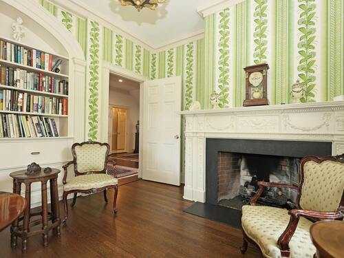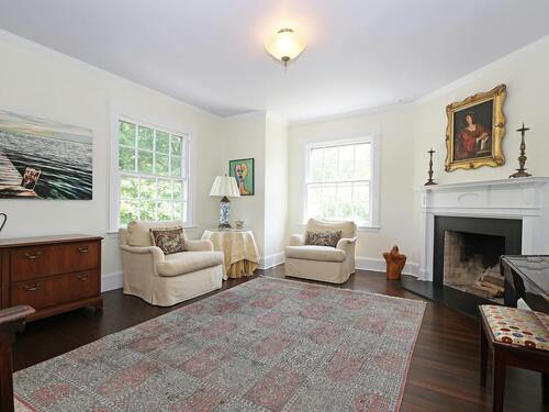 Bay/Bow Window, 9 ft+ Ceilings, Built-Ins, Fireplace, French Doors, Hardwood Floor