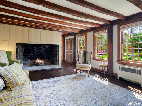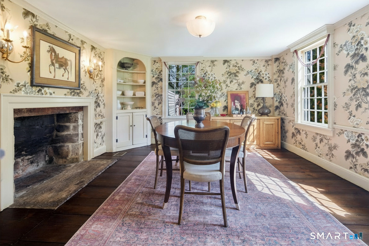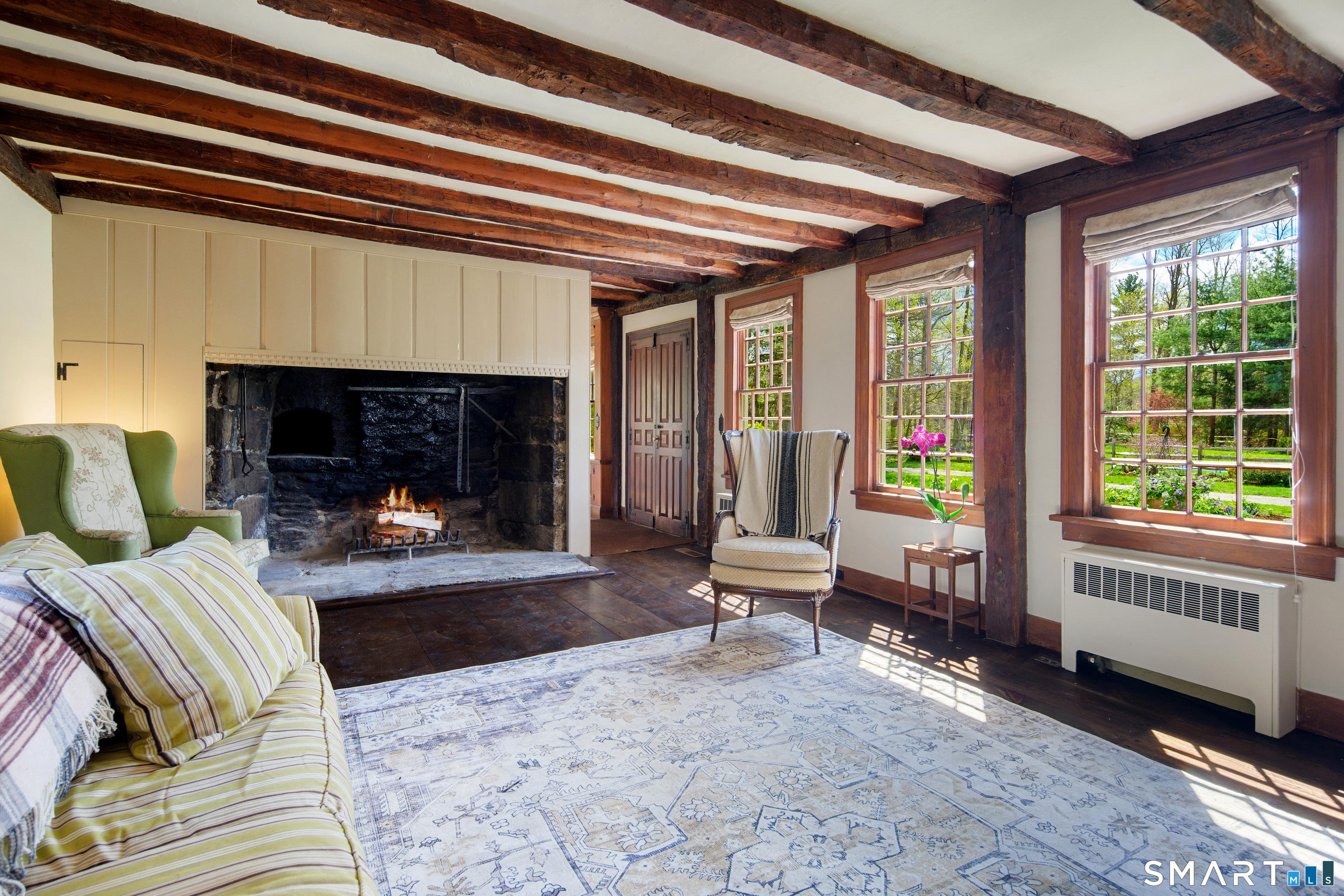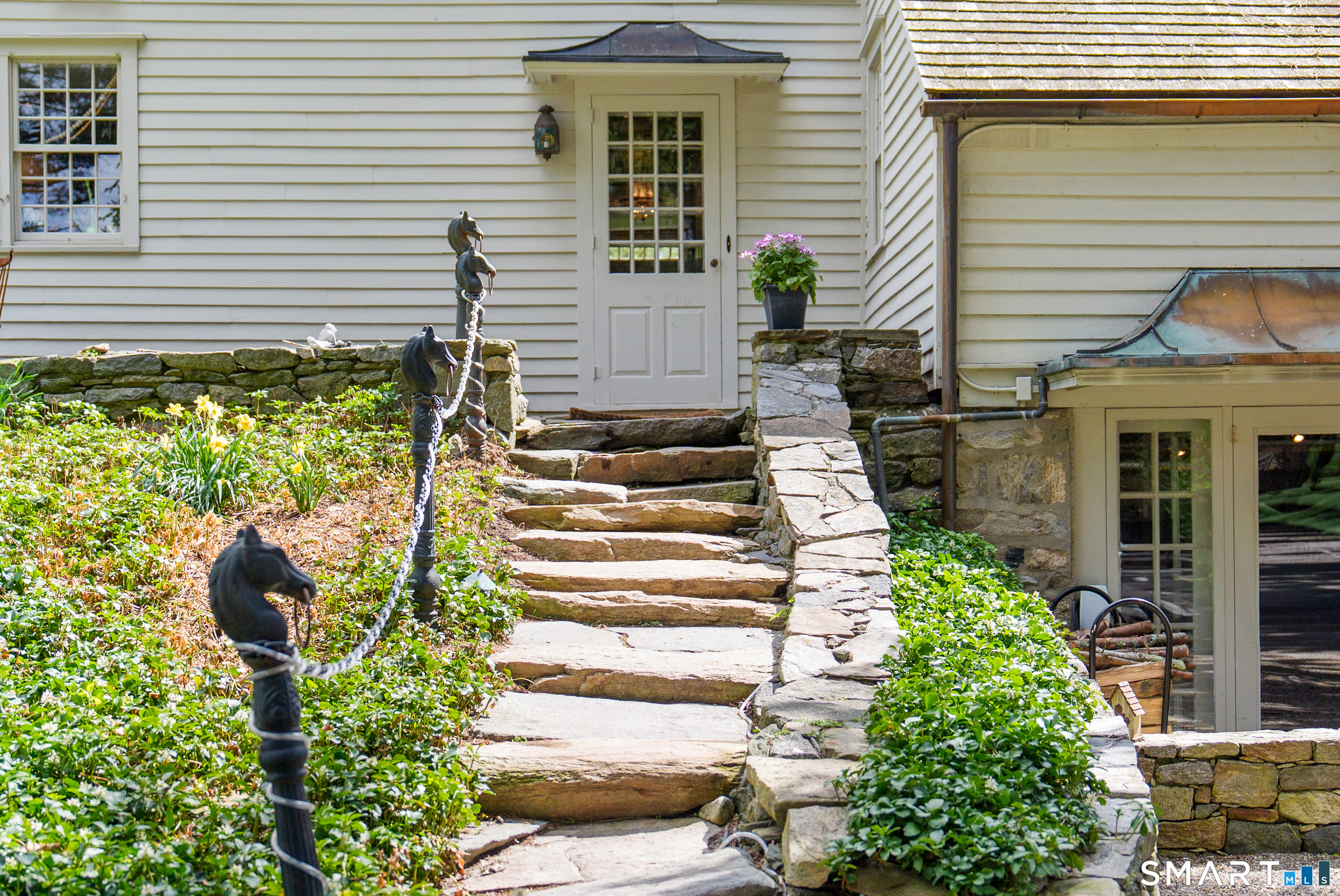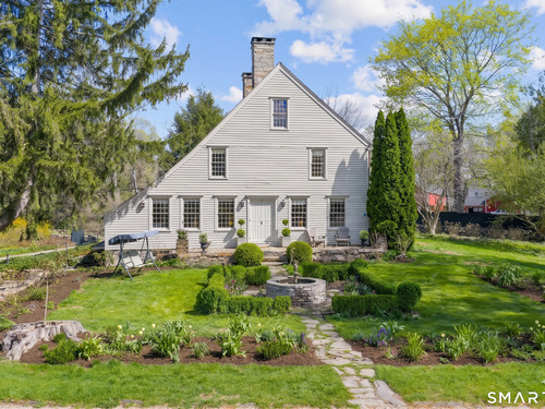 Nestled on a picturesque country road in the heart of Redding, this National Register of Historic Places landmark offers a rare blend of 18th-century soul and modern New England estate living. The home's historic integrity is preserved through twin stone chimneys, original wide-plank flooring, and exquisite period woodwork. Sun-filled living spaces flow seamlessly from the warm central hall to a spacious kitchen and inviting dining areas-ideal for both everyday comfort and sophisticated entertaining. The layout provides exceptional flexibility, featuring generous bedrooms and additional rooms perfectly suited for a home office, den, or guest wing. Set on two serene acres of curated gardens and mature trees, the exterior offers a peaceful retreat for outdoor gatherings or quiet mornings in nature. While seemingly worlds away in its rural tranquility, 313 Umpawaug Road in prestigious West Redding is located just minutes from top-rated schools, hiking trails, and the charming town center. Once the residence of Continental Army soldier Aaron Barlow, this 1723 Georgian gem served as a strategic hub for General Israel Putnam and a literary sanctuary where the famed Joel Barlow penned The Vision of Columbus in 1787. A rare opportunity to own a living piece of history, meticulously maintained for the modern steward.