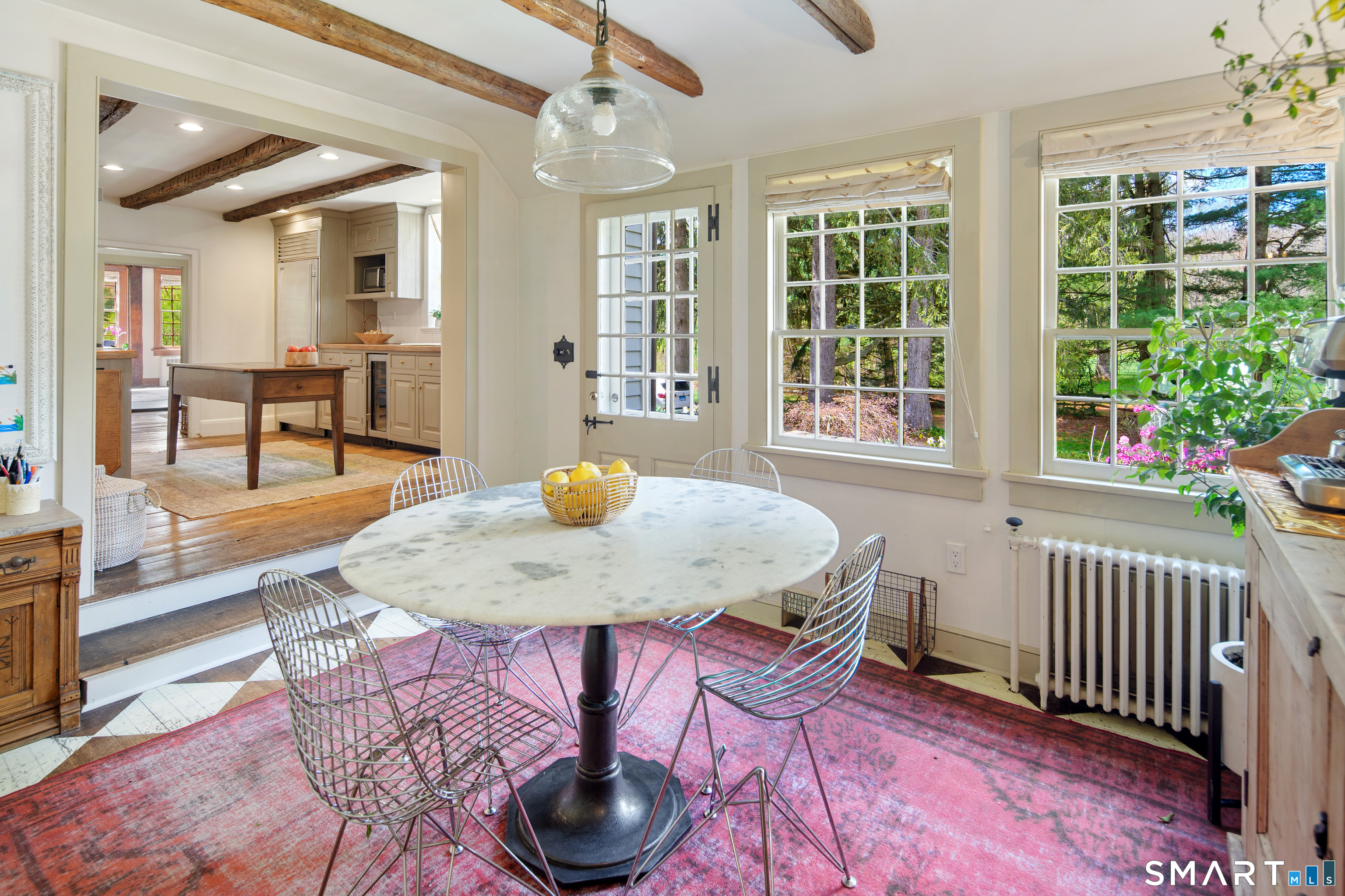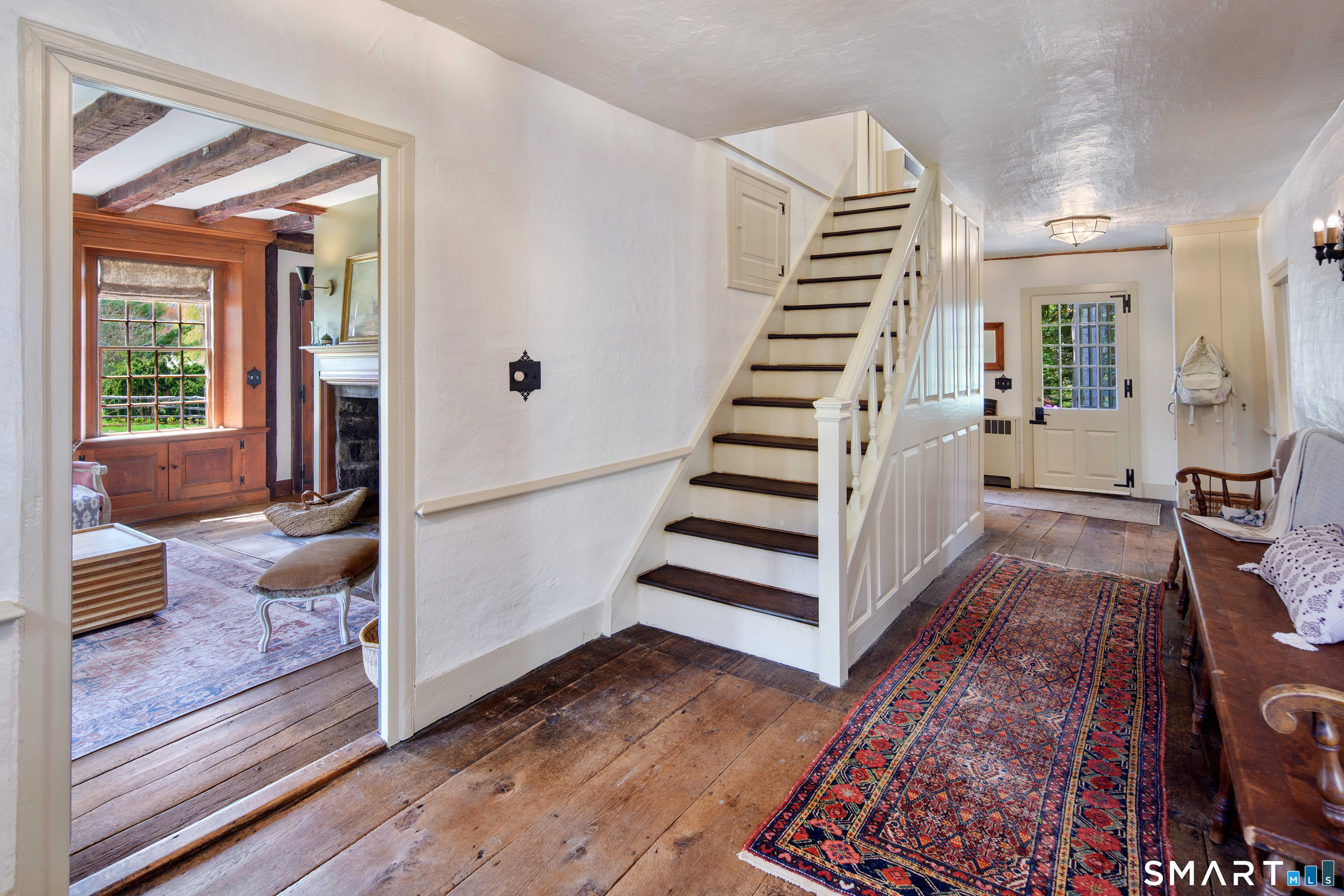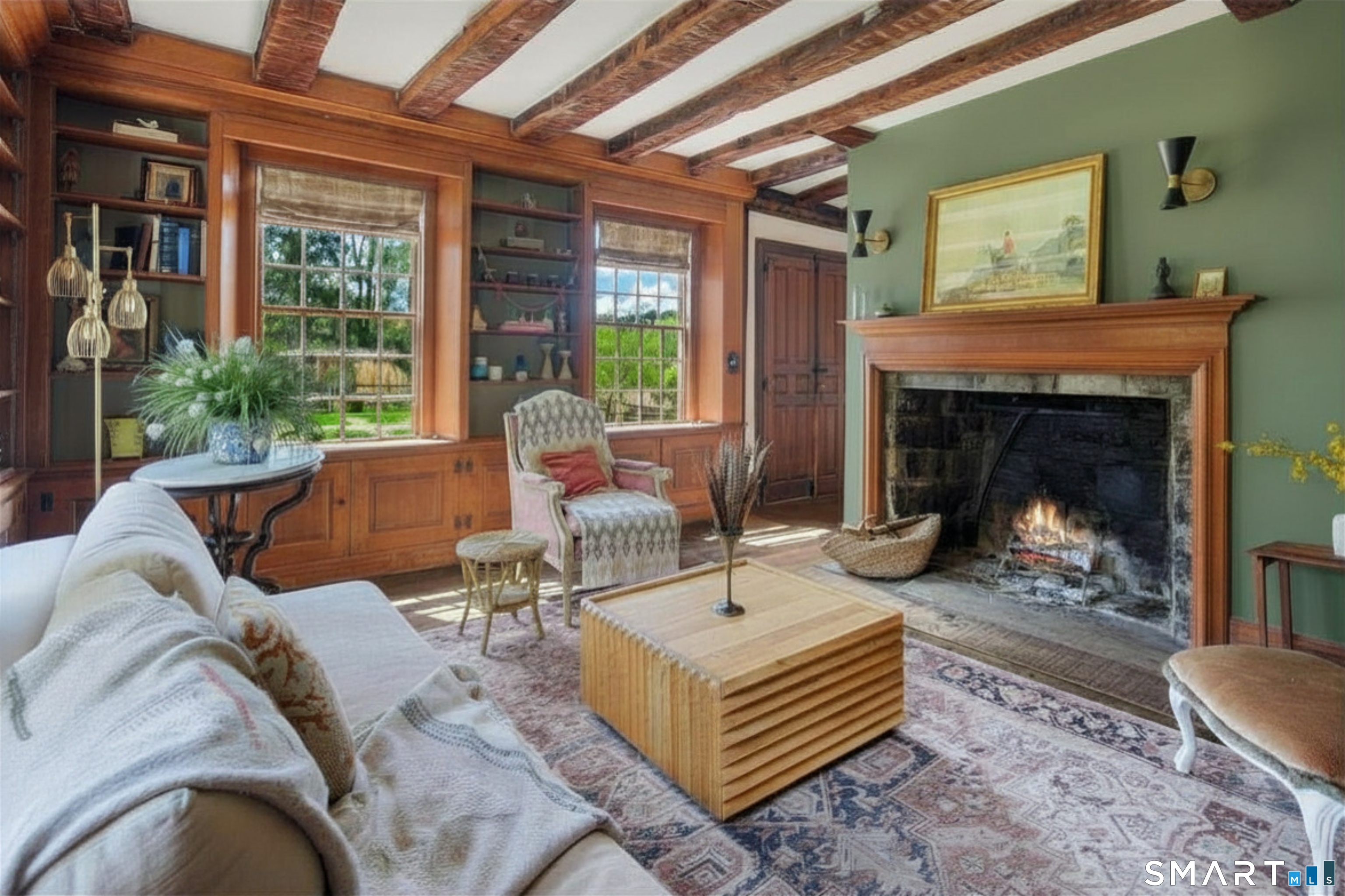 Nestled on a picturesque country road in the heart of Redding, this National Register of Historic Places landmark offers a rare blend of 18th-century soul and modern New England estate living. The home's historic integrity is preserved through twin stone chimneys, original wide-plank flooring, and exquisite period woodwork. Sun-filled living spaces flow seamlessly from the warm central hall to a spacious kitchen and inviting dining areas-ideal for both everyday comfort and sophisticated entertaining. The layout provides exceptional flexibility, featuring generous bedrooms and additional rooms perfectly suited for a home office, den, or guest wing. Set on two serene acres of curated gardens and mature trees, the exterior offers a peaceful retreat for outdoor gatherings or quiet mornings in nature. While seemingly worlds away in its rural tranquility, 313 Umpawaug Road in prestigious West Redding is located just minutes from top-rated schools, hiking trails, and the charming town center. Once the residence of Continental Army soldier Aaron Barlow, this 1723 Georgian gem served as a strategic hub for General Israel Putnam and a literary sanctuary where the famed Joel Barlow penned The Vision of Columbus in 1787. A rare opportunity to own a living piece of history, meticulously maintained for the modern steward.