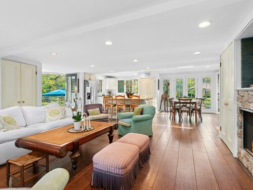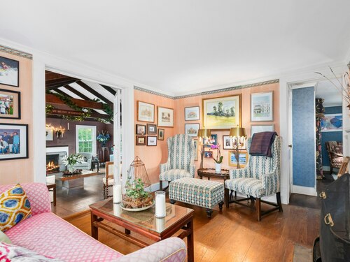 In the heart of Darien, where history lingers and owls whisper through the trees, stands a timeless 1800s home at 561 Middlesex Road - a place where memory breathes and dreams take root. Set upon 2.6 serene and level acres, yet close to all amenities, this enchanting farmhouse rests within a world of quiet beauty, where a secret garden path winds softly beneath the shade, inviting you to wander, reflect and simply be. Rich with the echo of generations, this home opens its doors to warmth and welcome with its wide plank floors, worn smooth by countless footsteps, that guide you through rooms that glow with quiet charm - from the parlor's embrace to the dining room's gentle light. At its heart lies a light-filled, open-plan kitchen, where aromas mingle with laughter and recipes become the language of love and memory, all while uniting you with the outdoors. A great room, crowned with exposed beams and centered by a wood-burning hearth, promises long evenings of conversation, storytelling and shared delight. A cozy den invites quiet moments with a favorite book, while a cheerful playroom offers a world of imagination for the young at heart. With four inviting bedrooms and 3.5 baths, this home offers space for family and friends alike. Here, every corner whispers of possibility - a sanctuary waiting for its next chapter, for new hands to shape its story, for new hearts to call it home. Within its walls, time softens, and life unfolds like poetry written in sunlight and laughter