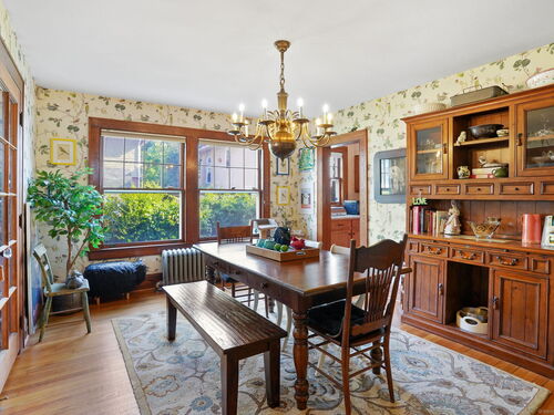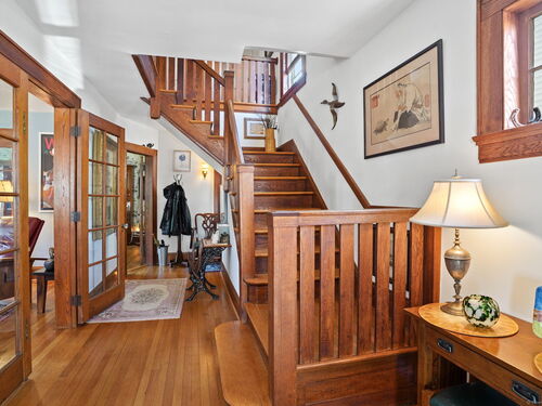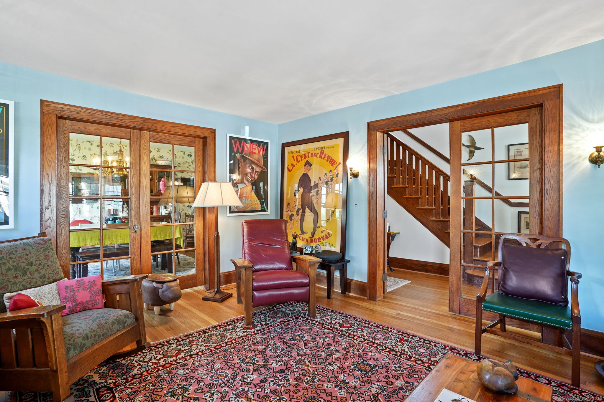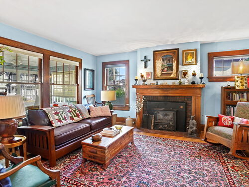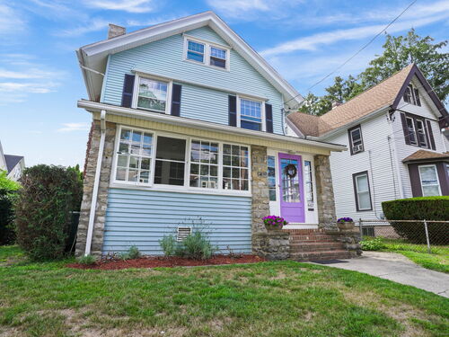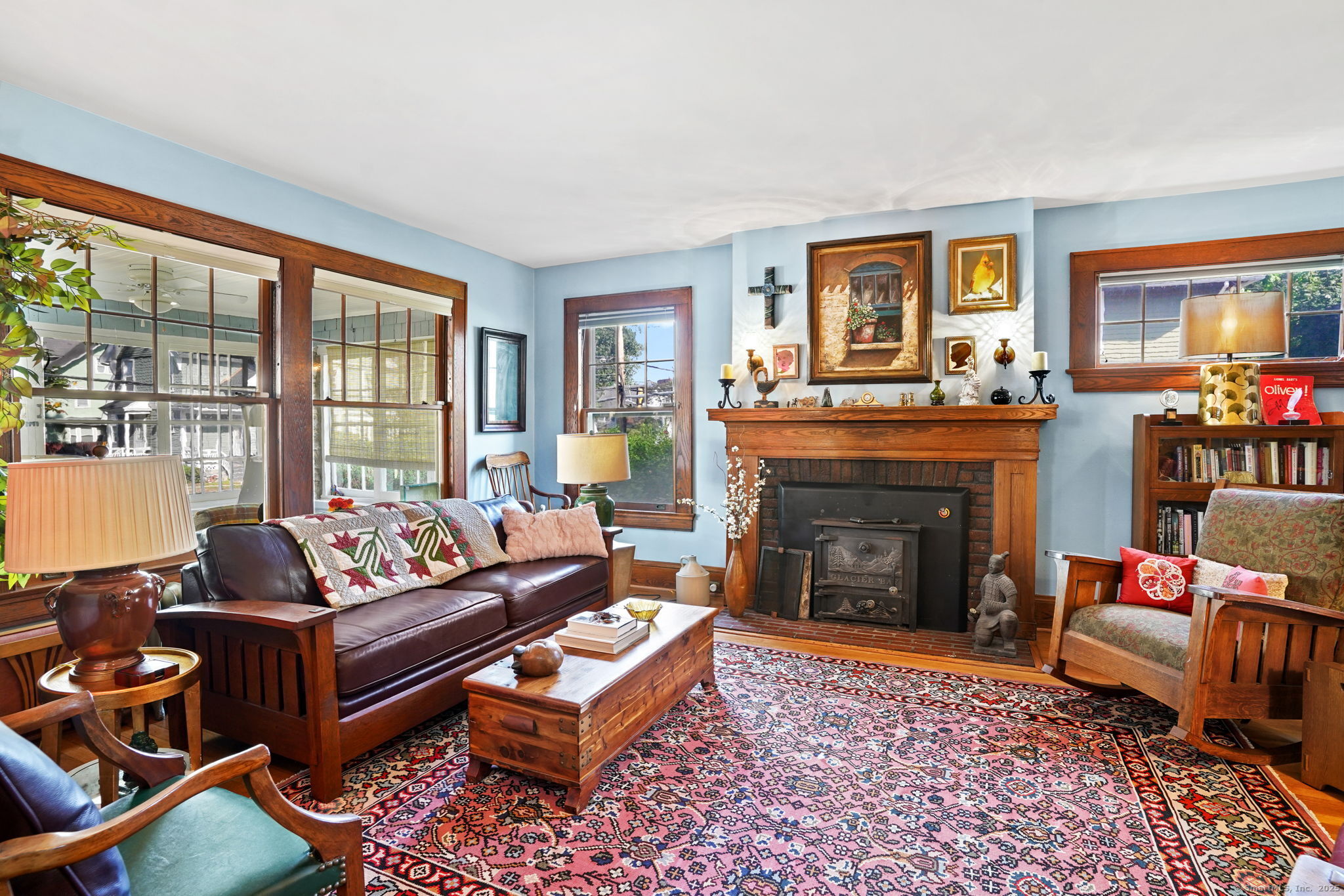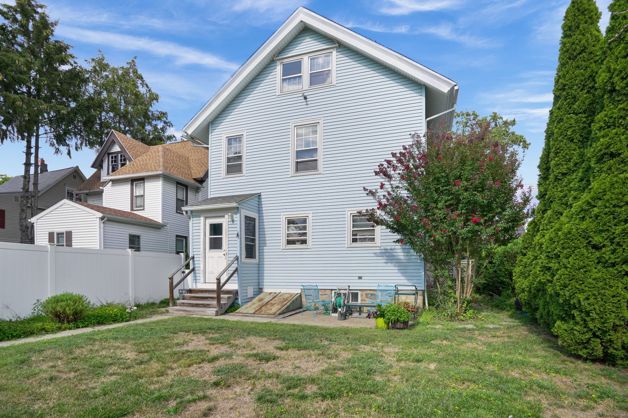 Discover the charm of this exceptional Brooklawn Colonial, a true gem built in 1907 that embodies the essence of Arts and Crafts architecture. This beautifully preserved home boasts original wood floors and intricate wood accents throughout, exuding authentic character at every turn. The welcoming enclosed front porch invites you into the main level, where you'll find soaring ceilings, elegant French doors, and a cozy fireplace in the living room. The main floor also features a formal dining room, spacious kitchen and a full bath for your convenience. Ascend the graceful wooden staircase to the upper level, where four generously sized bedrooms and a second full bath await, offering ample space for guests or a home office. The level backyard is a private oasis, complete with a border garden and a fully fenced yard, perfect for outdoor enjoyment. The property also includes a one-car garage, accessible via a shared driveway. Located just minutes from the vibrant Downtown Bridgeport, Black Rock, and Fairfield, Brooklawn offers easy access to shopping, dining, and two golf courses. Additionally, the home is conveniently situated near public transportation and I-95, making commuting a breeze. Don't miss this special opportunity - schedule your private showing today!
