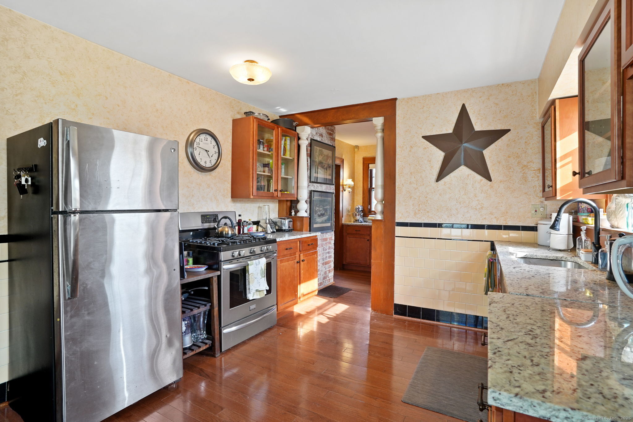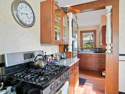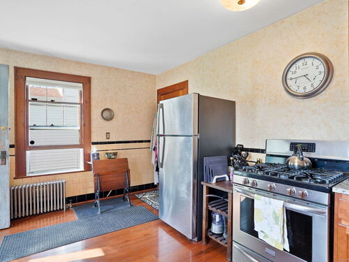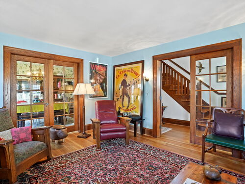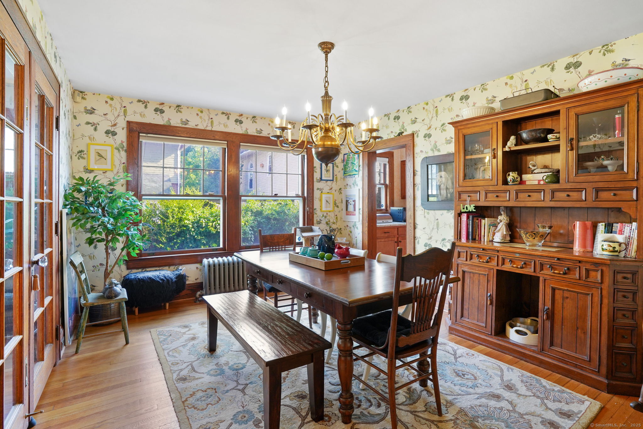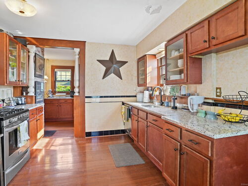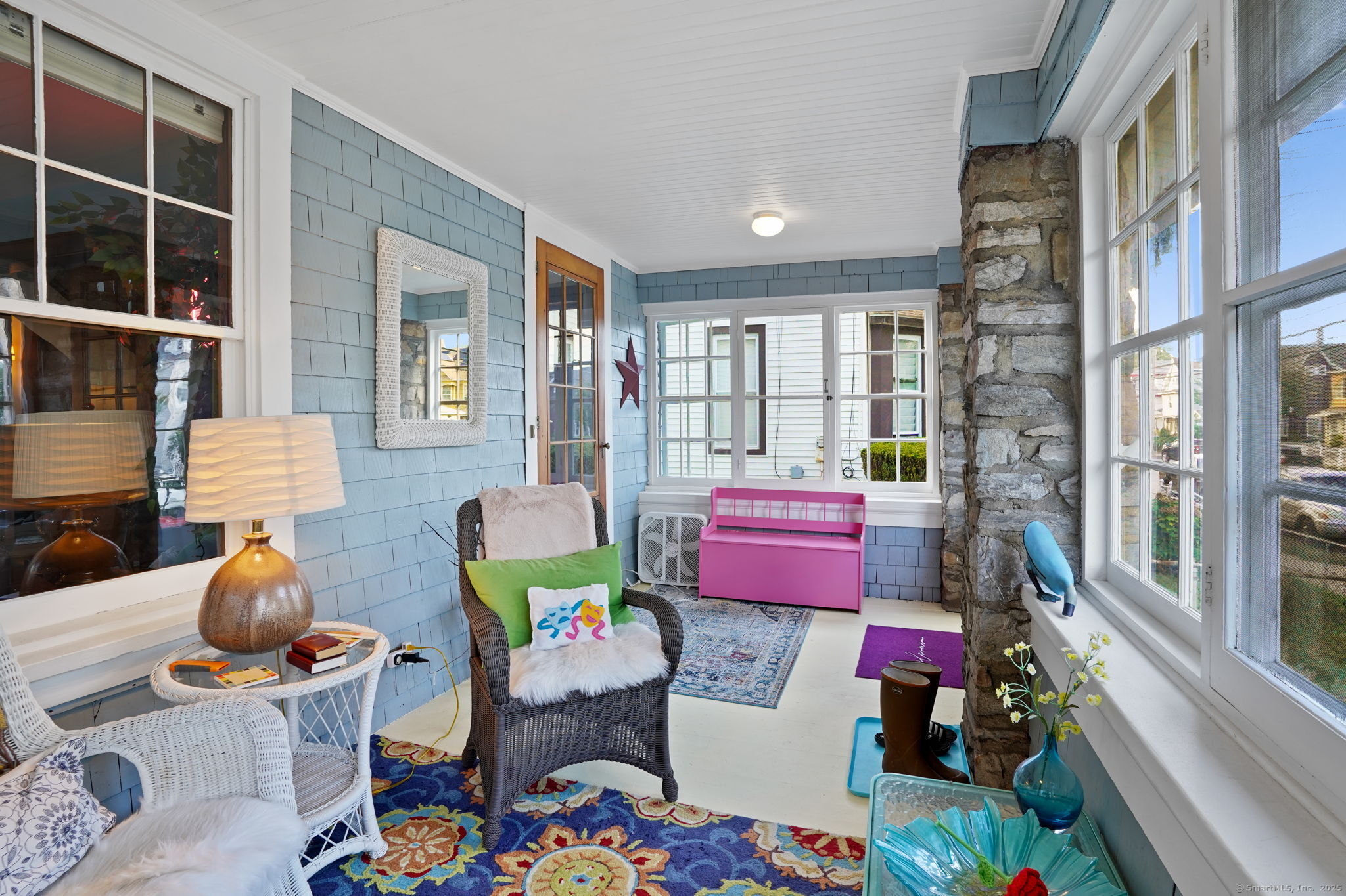 Discover the charm of this exceptional Brooklawn Colonial, a true gem built in 1907 that embodies the essence of Arts and Crafts architecture. This beautifully preserved home boasts original wood floors and intricate wood accents throughout, exuding authentic character at every turn. The welcoming enclosed front porch invites you into the main level, where you'll find soaring ceilings, elegant French doors, and a cozy fireplace in the living room. The main floor also features a formal dining room, spacious kitchen and a full bath for your convenience. Ascend the graceful wooden staircase to the upper level, where four generously sized bedrooms and a second full bath await, offering ample space for guests or a home office. The level backyard is a private oasis, complete with a border garden and a fully fenced yard, perfect for outdoor enjoyment. The property also includes a one-car garage, accessible via a shared driveway. Located just minutes from the vibrant Downtown Bridgeport, Black Rock, and Fairfield, Brooklawn offers easy access to shopping, dining, and two golf courses. Additionally, the home is conveniently situated near public transportation and I-95, making commuting a breeze. Don't miss this special opportunity - schedule your private showing today!