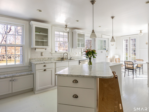New Listing! Originally built in 1825, this distinguished Colonial Revival estate was significantly expanded in the 1920s by McCall's Magazine, which transformed it into their elegant country retreat. Now offering over 5,600 square feet of beautifully remodeled living space, the home has been thoughtfully restored to honor its historic roots while offering every modern comfort. A true sanctuary from the pace of everyday life, this property invites you to vacation at home. Enjoy morning coffee on the private master terrace, sunbathe on the south terrace, or relax with a book on the charming porch. The expansive, level grounds are ideal for outdoor living and feature a sun-drenched site perfect for a future pool. Inside, the home balances grandeur with warmth. The stunning Carrara marble kitchen is a chef's dream, equipped with high-end appliances and a spacious island for gathering. A full butler's pantry and porch provide the perfect setup for entertaining. Host unforgettable dinners in the banquet-sized dining room or dine al fresco on the breathtaking stone terrace. The generous living room and adjacent den/bar feature three fireplaces and multiple sets of glass doors that open to the terrace and porch, blending indoor and outdoor living seamlessly. Work from home in one of two quiet offices, then unwind in the cozy family room by the fire, enjoy a workout in your personal gym, or retreat to the luxurious primary suite.