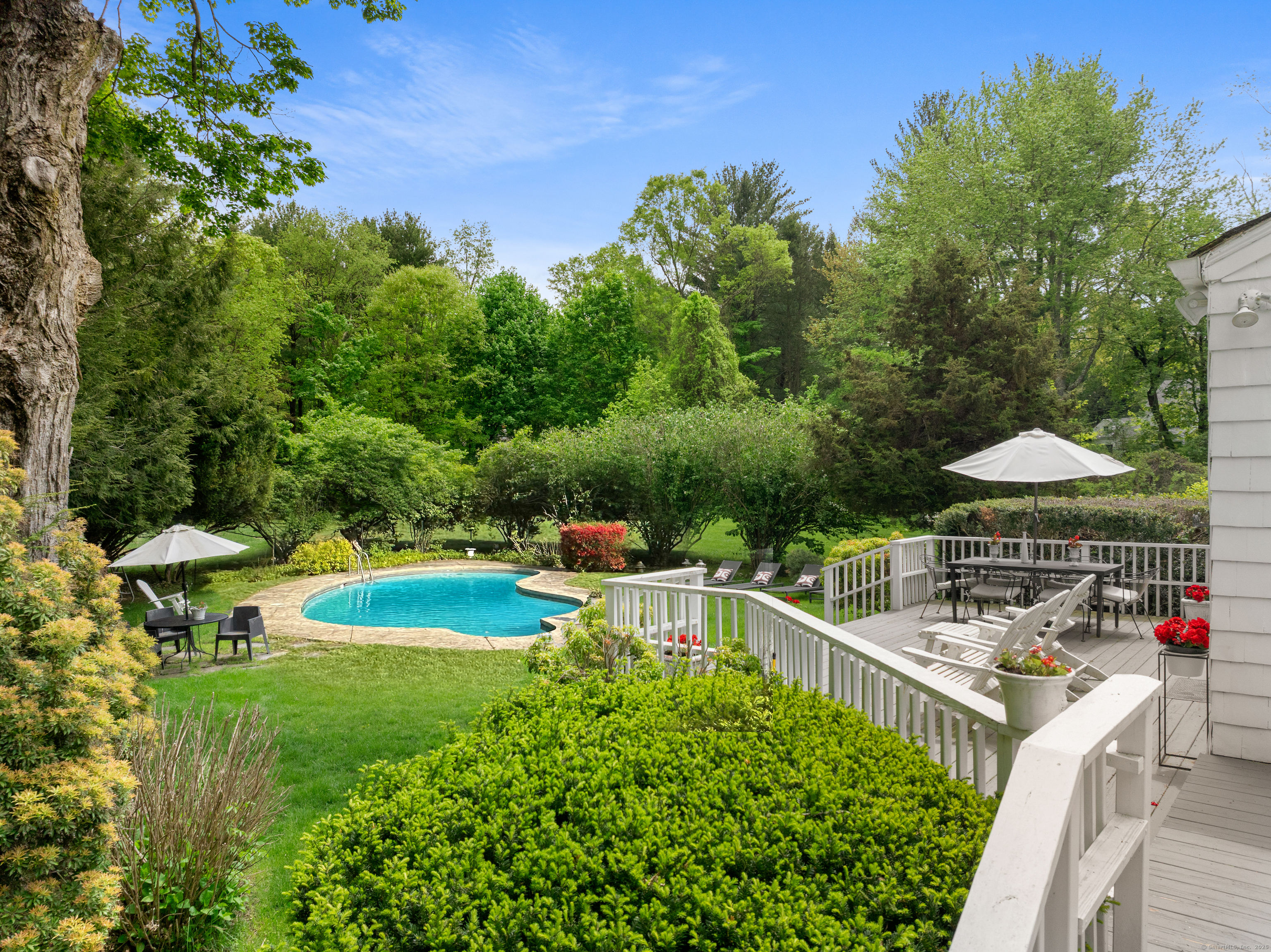 Beyond Beautiful - Welcome to 10 Twin Falls Lane, a striking property and home filled with natural light from floor-to-ceiling windows. Step into the sun-drenched foyer with terracotta tile. Throughout the years the home has been updated and modernized with soaring ceilings, serene views, and inspiring design. The expansive family room features a dramatic picture window and flows seamlessly into the marble-countered kitchen with dry bar and adjacent dining area-perfect for entertaining. A spacious den, easily a second family room, includes parquet floors, sliders to the patio, and stairs to a cozy loft. Step into the screened-in porch to enjoy sweeping views of open sky and lawn. The outdoors are just as captivating as the interior with a sparkling pool, charming garden spaces, and a backyard span stretching nearly 100 yards. The primary suite is privately tucked away with a large ensuite bath and soaking tub. The three additional bedrooms bathed in soft light whites- one with vaulted ceilings, wide plank floors, and sliders to the expansive deck. Understated and distinctive, this home is an expression of modernist design-full of charm, light, and joyful living spaces. Just minutes to train, restaurants, shops, YMCA, beaches, and more. Come see how effortlessly enjoyable Westport living can be.