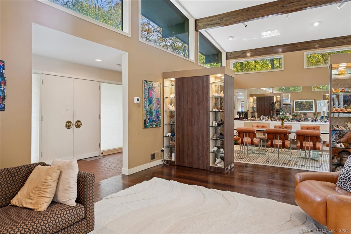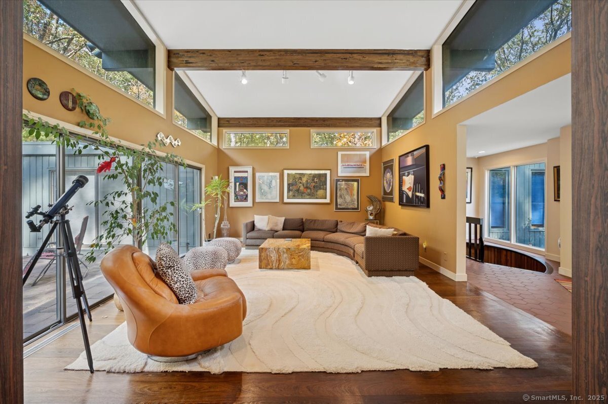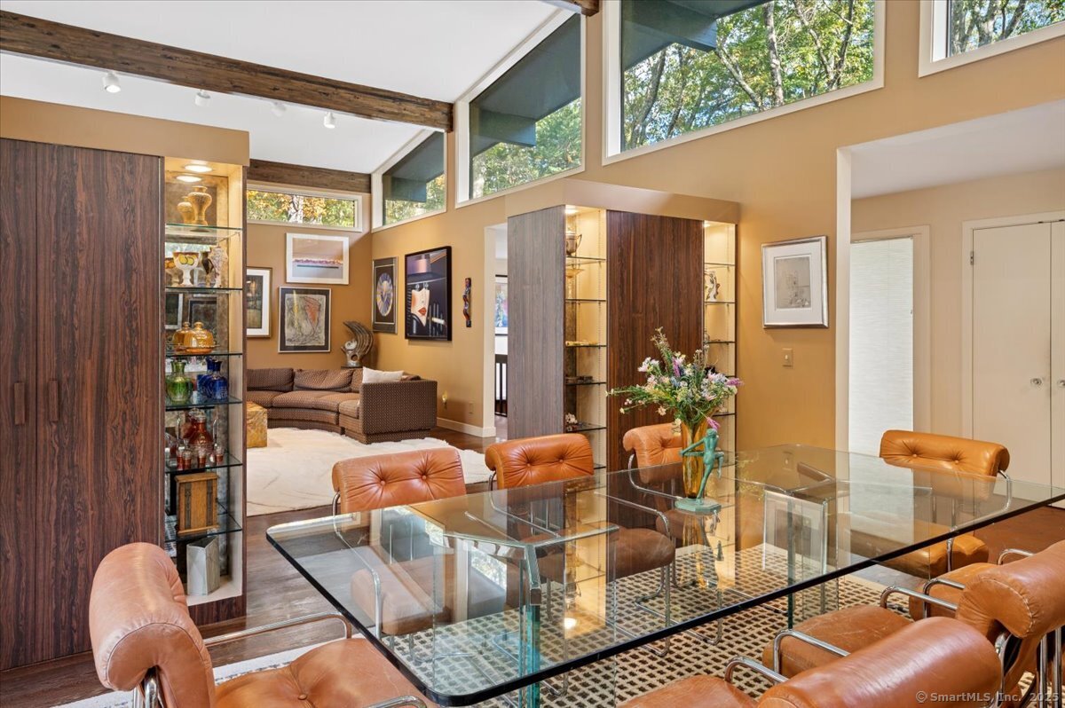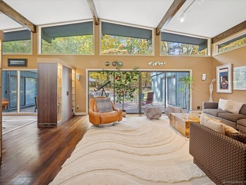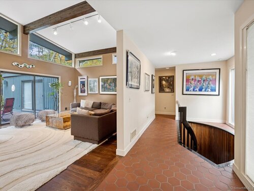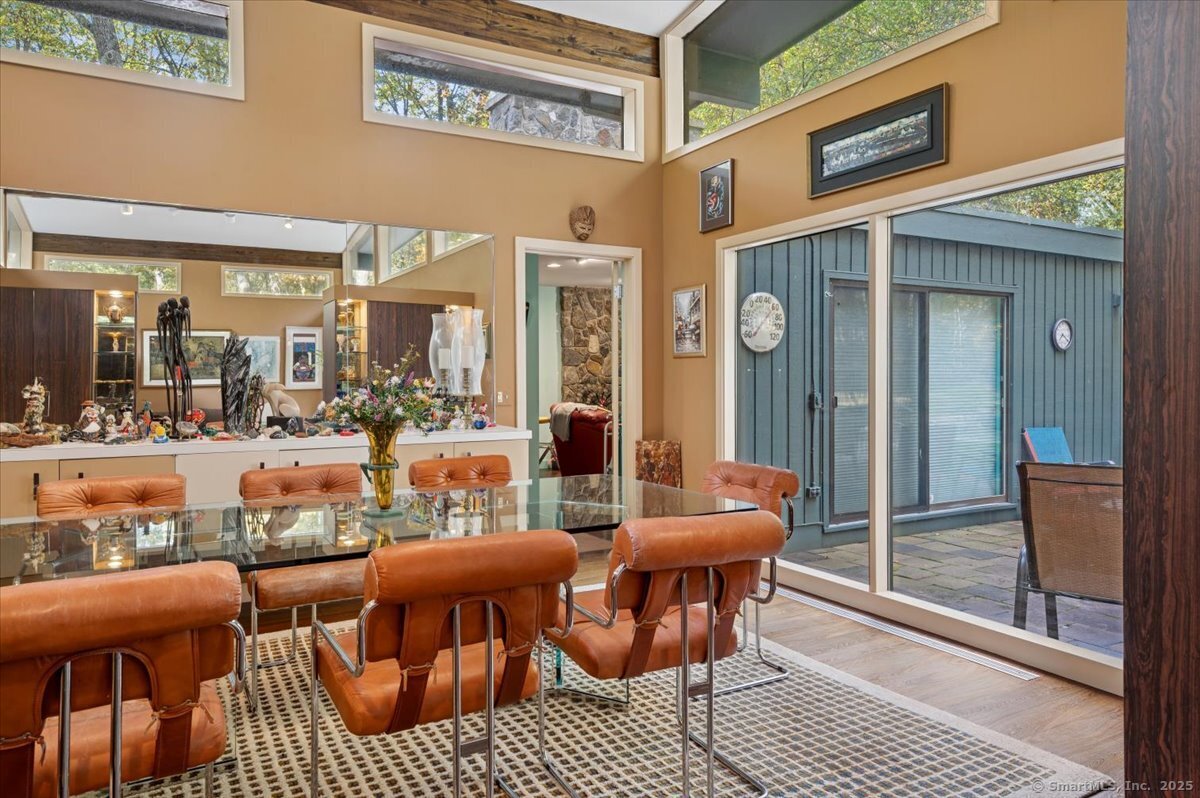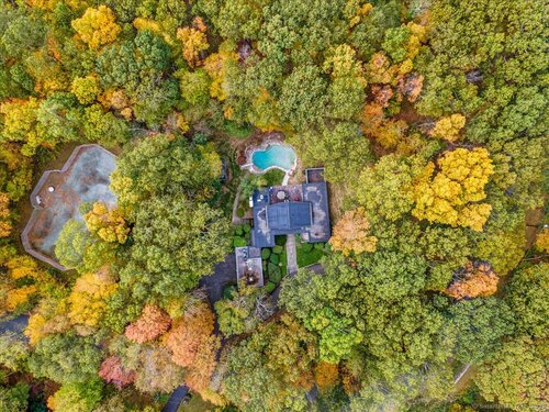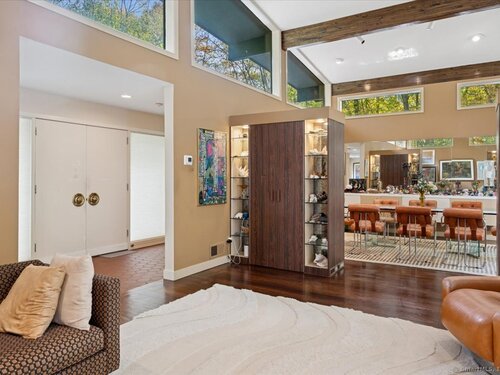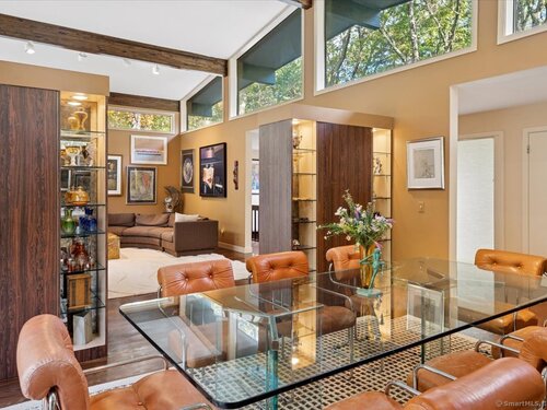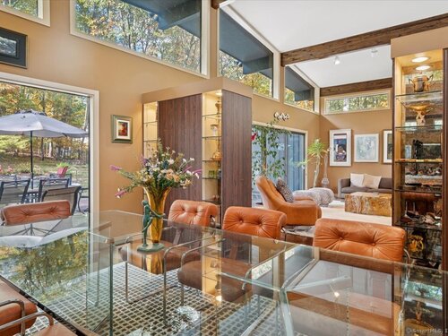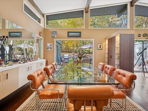 Custom built by the current and original owners, welcome to a rare opportunity in sought-after lower Easton. This rare and true one-of-a-kind home harmonizes a nature lover's dream with a vintage late mid-century vibe. The home spans over 3,100sqft on the main living level boasting three ensuite bedrooms at one end of the home and a private office, kitchen and den at the other end of the home. The formal dining room opens to the living room, both with soaring ceilings and original built in mid-century cabinetry anchoring the heart of the home. Enjoy an additional 2,953sqft in the finished walk out lower level offering a fourth and possible fifth bedroom, billiard room, family room, and a floor to ceiling stone fireplace. This modern structure offers original aesthetics fitting of the era transporting guests back in time. A sprawling estate offers a country club setting for multiple generations to simultaneously enjoy. Functional and thoughtful layout centralizes the focus on the courtyard pool and provides ample space for entertaining with large connected common rooms. Floor to ceiling windowed walls artfully invite the outside in creating a harmonious connection with the picturesque surroundings. The large glass elements flood the interior with natural light, enhancing curated living spaces and offering views of the verdant landscape beyond with pool and stone patio and tennis court found on the rise of the property. Live here and love life.