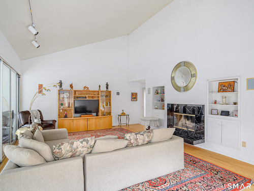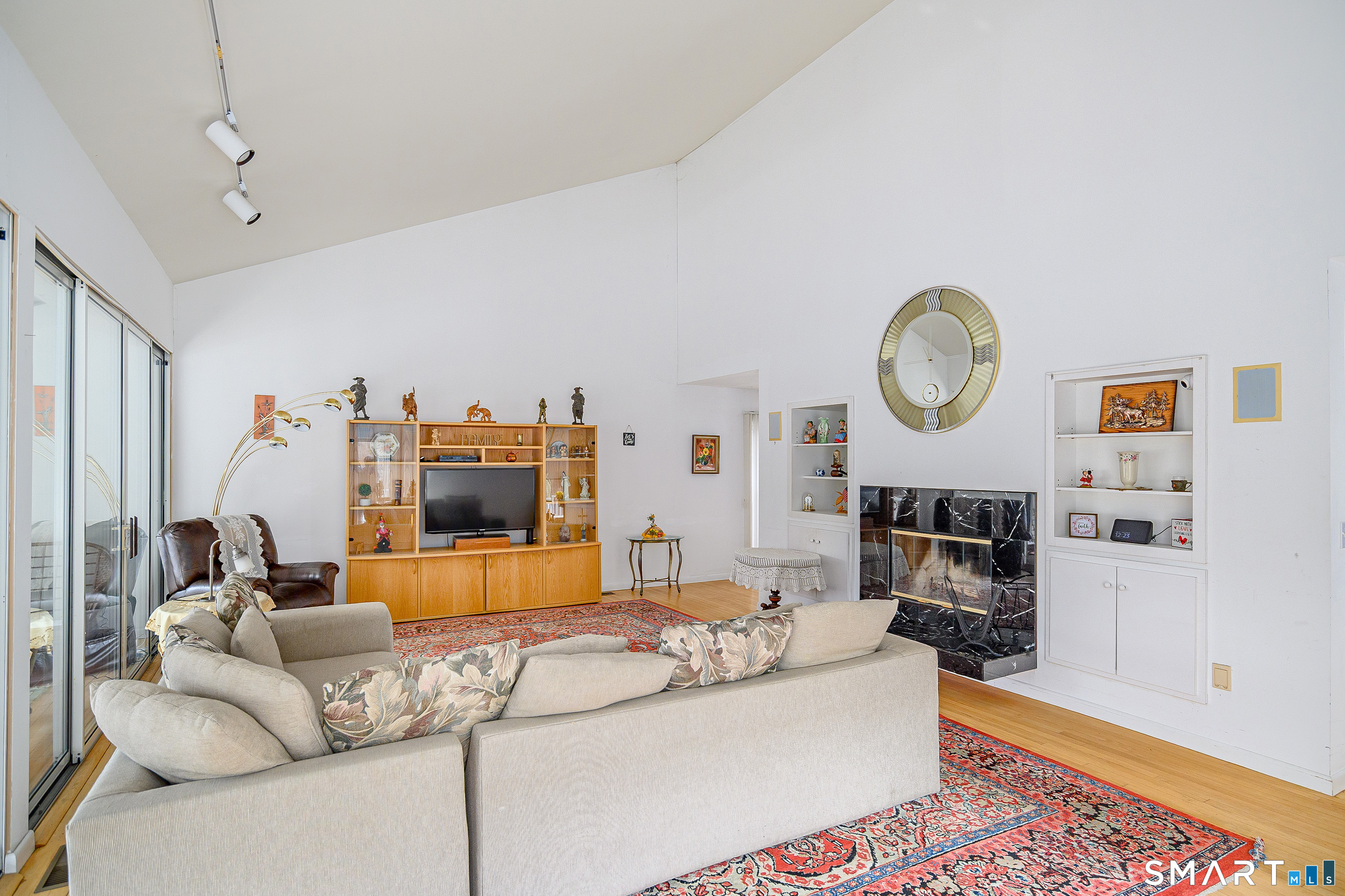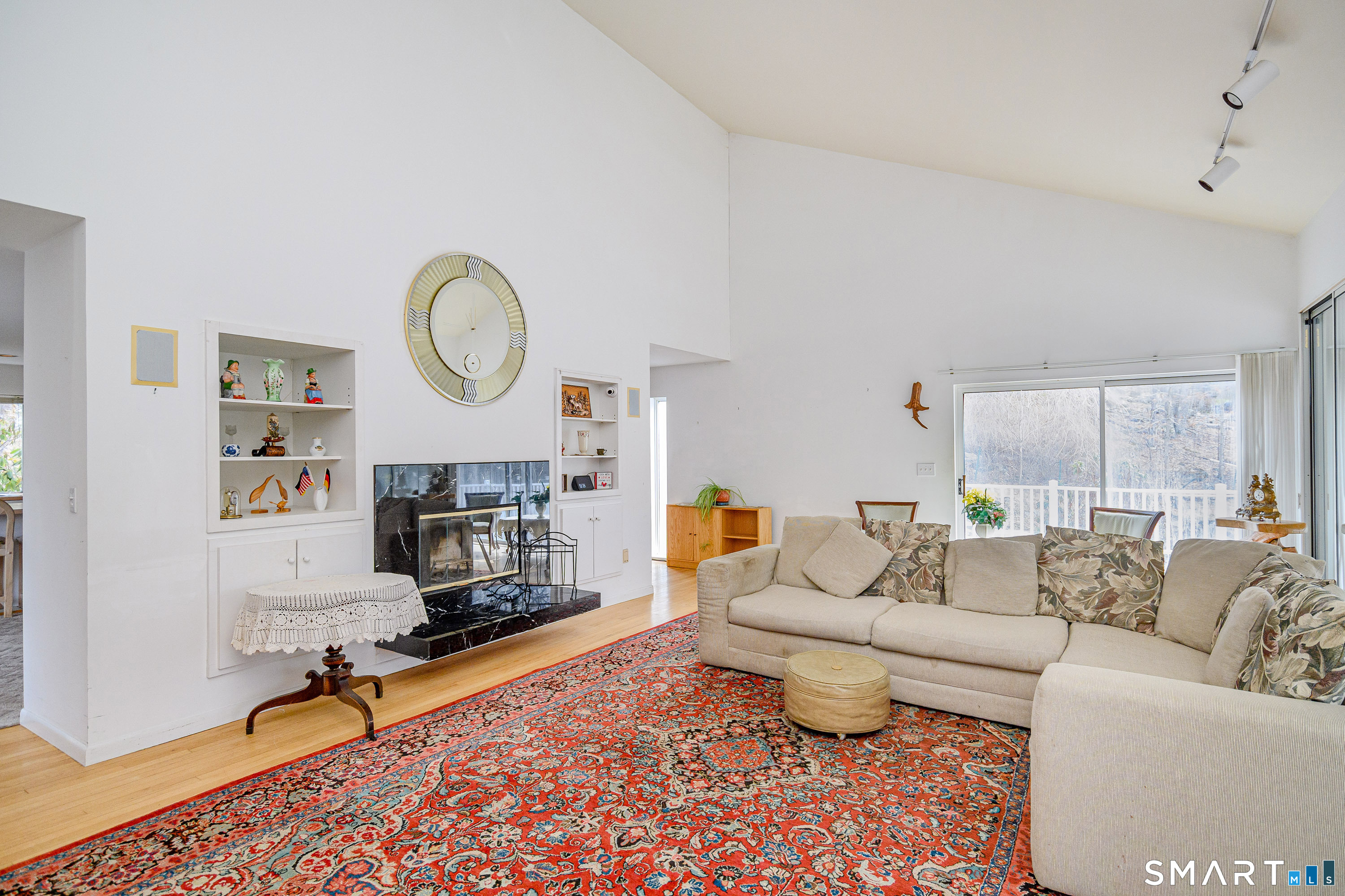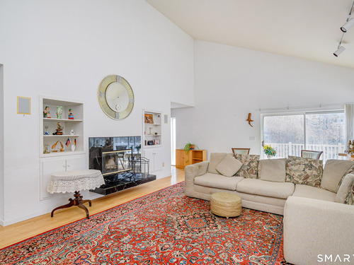 Vaulted Ceiling, Balcony/Deck, Built-Ins, Fireplace, Sliders, Hardwood Floor