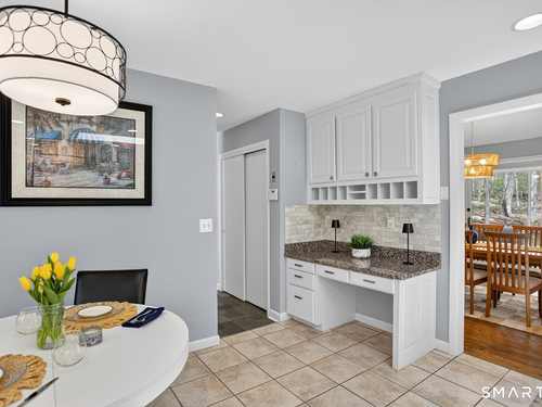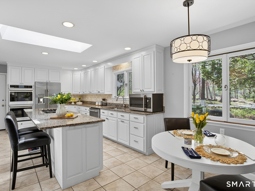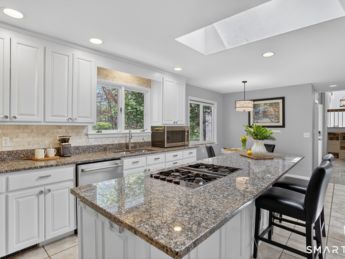 Location, location, location! Welcome to this delightful split-level contemporary located at the end of a quiet cul-de-sac in lovely Greenfield Hill. With 4 bedrooms, 2.5 baths and a floor plan offering numerous possibilities for today's living and work lifestyles, this home checks so many boxes. A gracious Living Rm with vaulted ceiling brings the outside in with a wall of windows along the back. Enjoy a lovely view of the trees and backyard as soon as you step in the entry. A formal Dining Rm with built-in buffet and a nice Screened Porch with bluestone floor, also open to the back. The large bright Kitchen has granite countertops, separate island with cooktop, an eat-in Breakfast area, walk-in pantry and new GE Cafe appliances added in the Fall of 2021. Upper level has a Primary Bedroom with a spacious walk-in closet. Prepared to be wowed with the fully updated en-suite bath with soaking tub and separate shower. Two additional bedrooms with a full Bath along with large hallway closets for storage complete the floor. Lower level has a Family Room with wood-burning fireplace and built-in bookshelves. Off this room is the 4th Bedroom, with an Office in back. The finished Basement below offers even more space for play and relaxation. Lovingly cared for by the same family for 25 years, other notable features include a full house generator plumbed to the gas line and a new furnace in October 2020. Ask agent for additional features - you don't want to miss seeing this one!