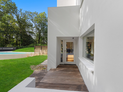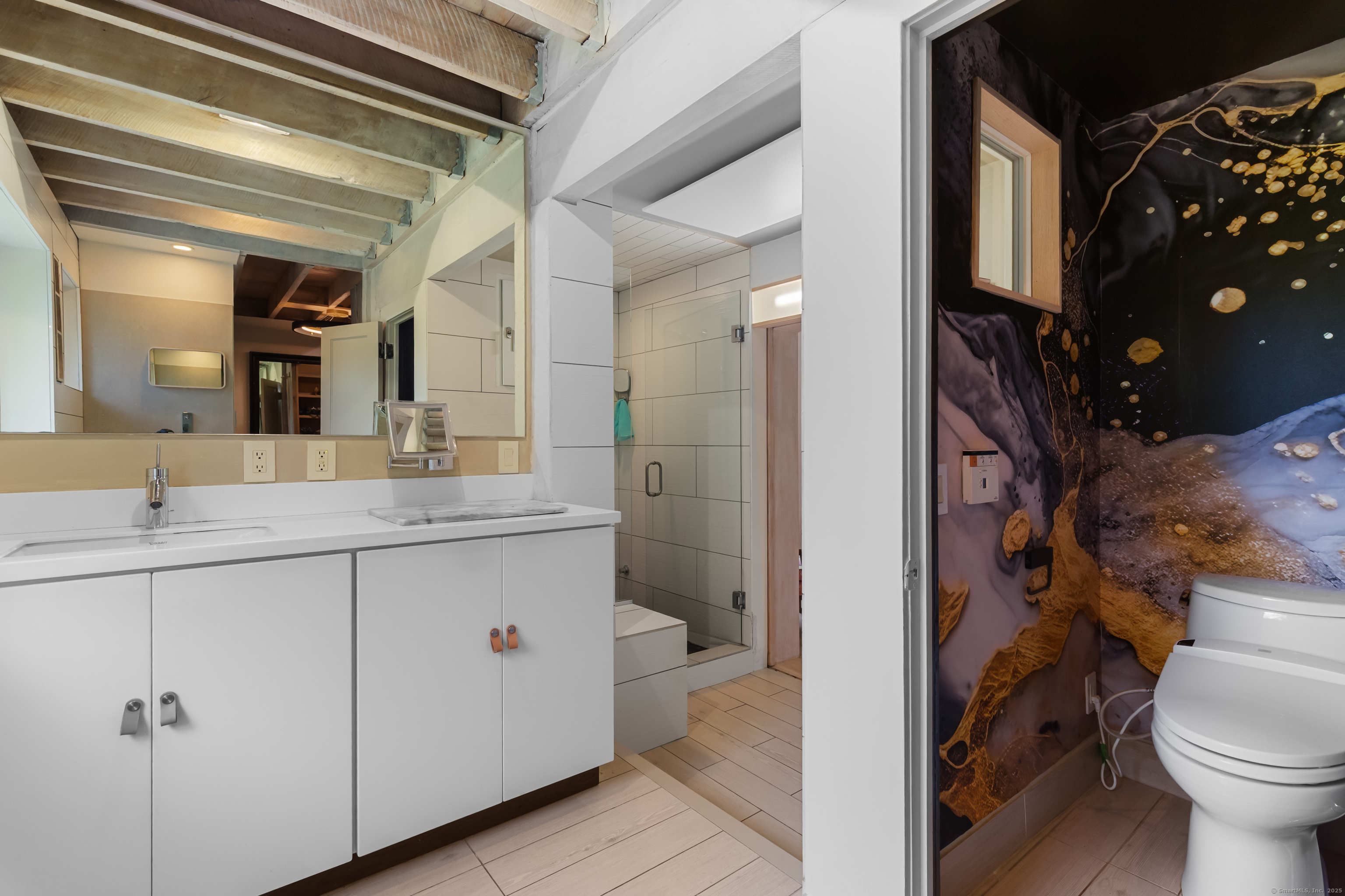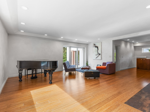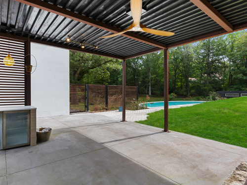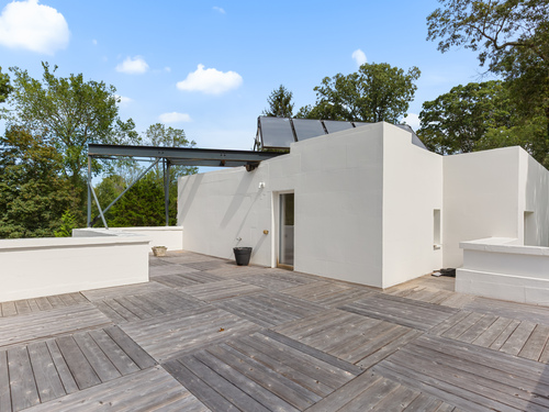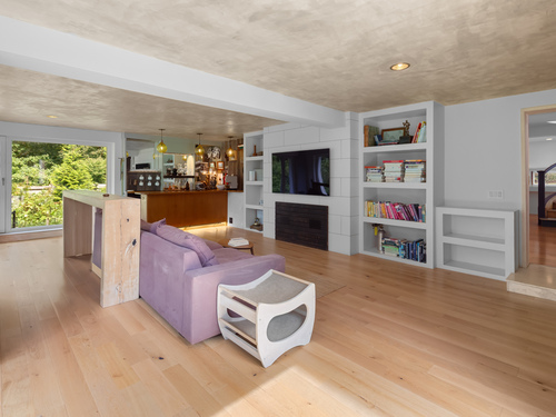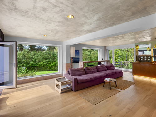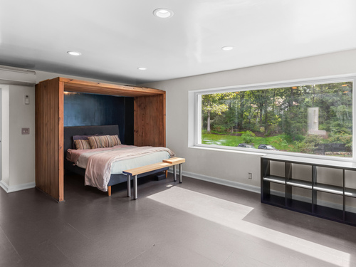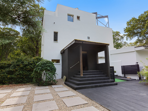 A sexy modernist concrete retreat designed by Frank Lloyd Wright protege Francis Barry Byrne, this home is a masterwork of form, function, and sustainability. Thoughtfully built using the Golden Ratio, it sits high on a hill with panoramic views of ancient rhododendrons and oaks. Inside, limestone walls, minimalist lines, and warm natural light create a space that is both bold and serene. The 3BR, 2.5BA property includes a rooftop lounge, pool, spa, studio, casita, and cottage-a rare blend of architectural pedigree and resort-style living. High-performance German windows, no spray foam, and zero combustion systems ensure a healthy, breathable environment. Electric car chargers and native landscaping further underscore the home's commitment to clean, efficient living. Certified to the rigorous standards of a Passive House, this residence proves that sustainability can be effortlessly luxurious. The Frazier Peters outbuilding is an ideal office, she shed, man cave or ultimate gaming center. The possibilities are endless!