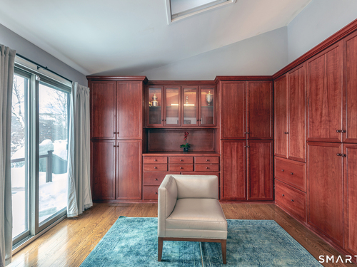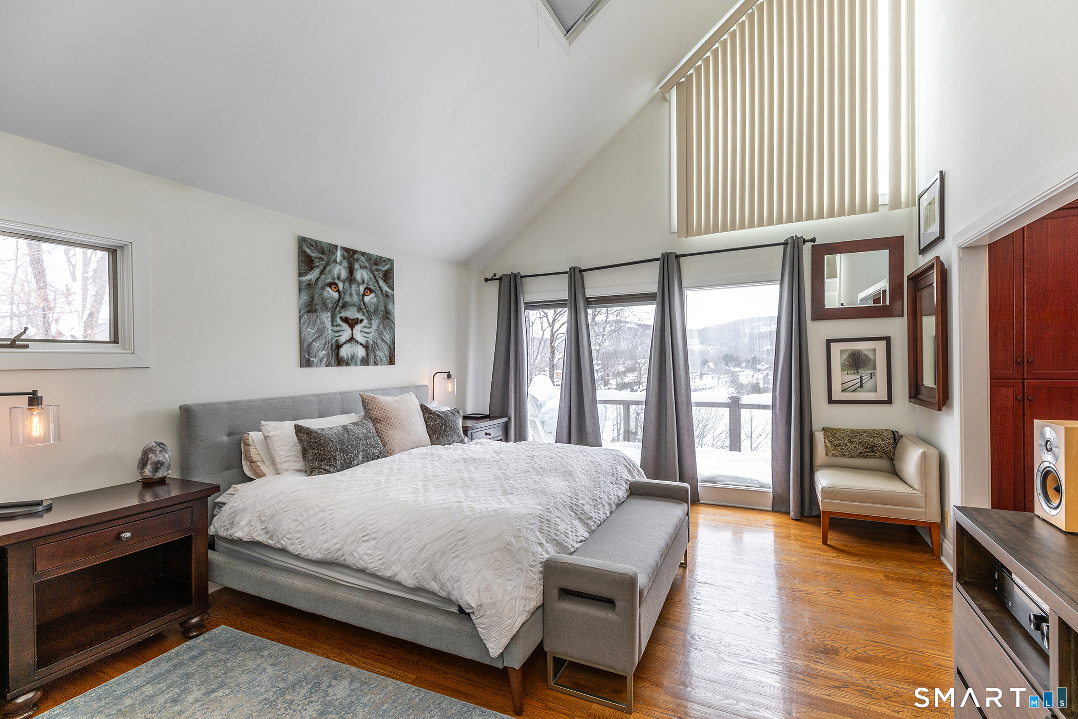 Primary Br Suite (Main Level)Skylight, Vaulted Ceiling, Balcony/Deck, Full Bath, Sliders, Walk-In Closet