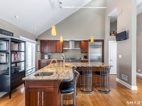 Eat In Kitchen (Main Level)Vaulted Ceiling, Granite Counters, Dining Area, Island, Pantry, Hardwood Floor
