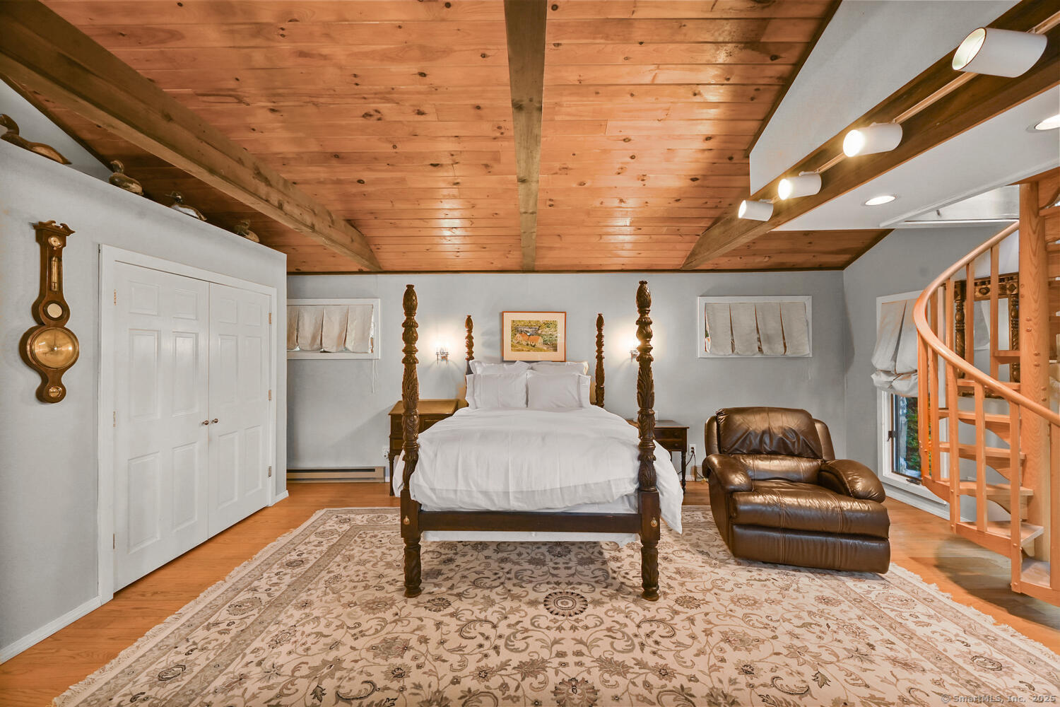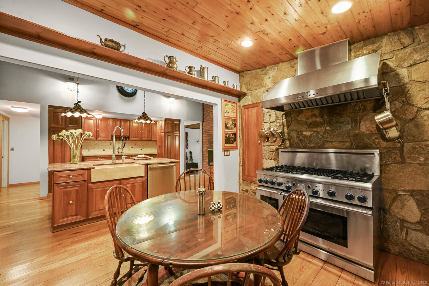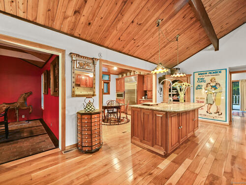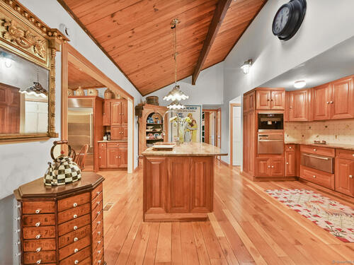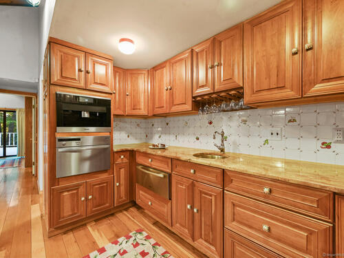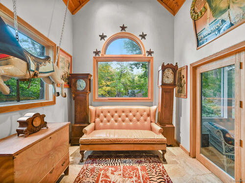 This exceptional stone home, blending contemporary design with natural tranquility, sits on 2 private acres in Weston. Expertly engineered & beautifully constructed, the home welcomes you through a dramatic two-story foyer into a sun-filled living room with floor-to-cathedral windows, a custom two-sided fireplace, and sweeping woodland views. Open chef's kitchen features granite countertops, custom cabinetry, granite center island, premium built-in appliances: Sub-Zero, Thermador stoves, Miele cappuccino station, warming oven, steamer. The large dining room offers perfect space for entertaining. Main level includes three bedrooms, highlighted by a spacious primary suite w sitting room, spa bath, double vanity & custom staircase that winds to a loft ideal for reading or stargazing. Two additional upstairs bedrooms feature getaway lofts. Lower level incl 2 more bedrooms, full bath, wine cellar, sauna, game room & family w stone fireplace that opens to outdoor living area. Heated red barn, accessible from upper deck, perfect for basketball, exercise/yoga, office, gym, studio, or meditation retreat. Honeycombed by trails & two meandering rivers, Weston has the largest nature preserve in Fairfield County, pairing abundant opportunities for hiking, cycling, fishing, & birding with easy access to NYC. The town's renowned school system has a low ratio (12/1) & has been awarded CT Blue Ribbons for excellence. Community, sophistication, nature. It doesn't get any better than this!!!