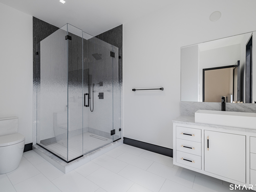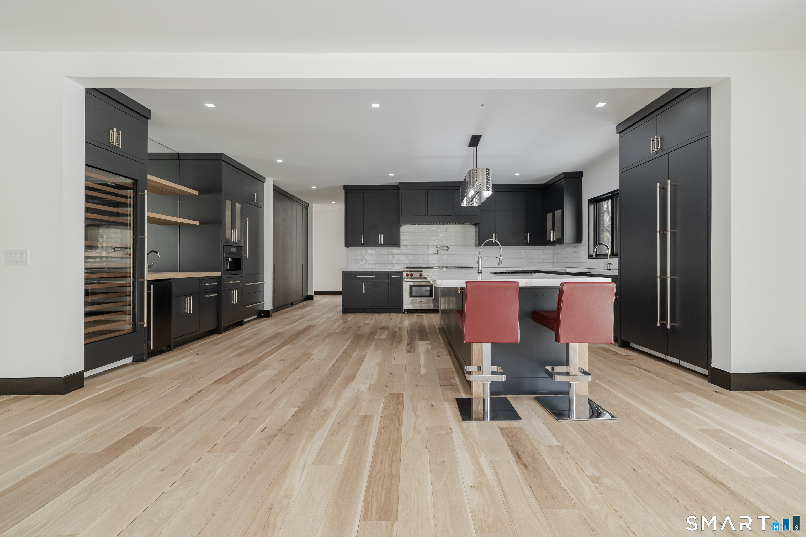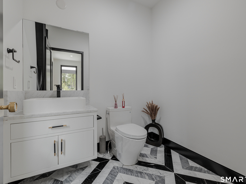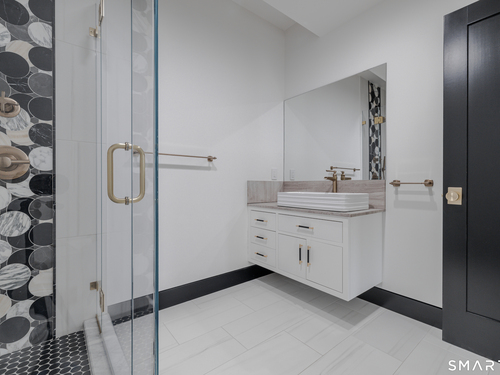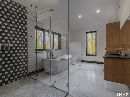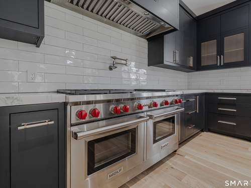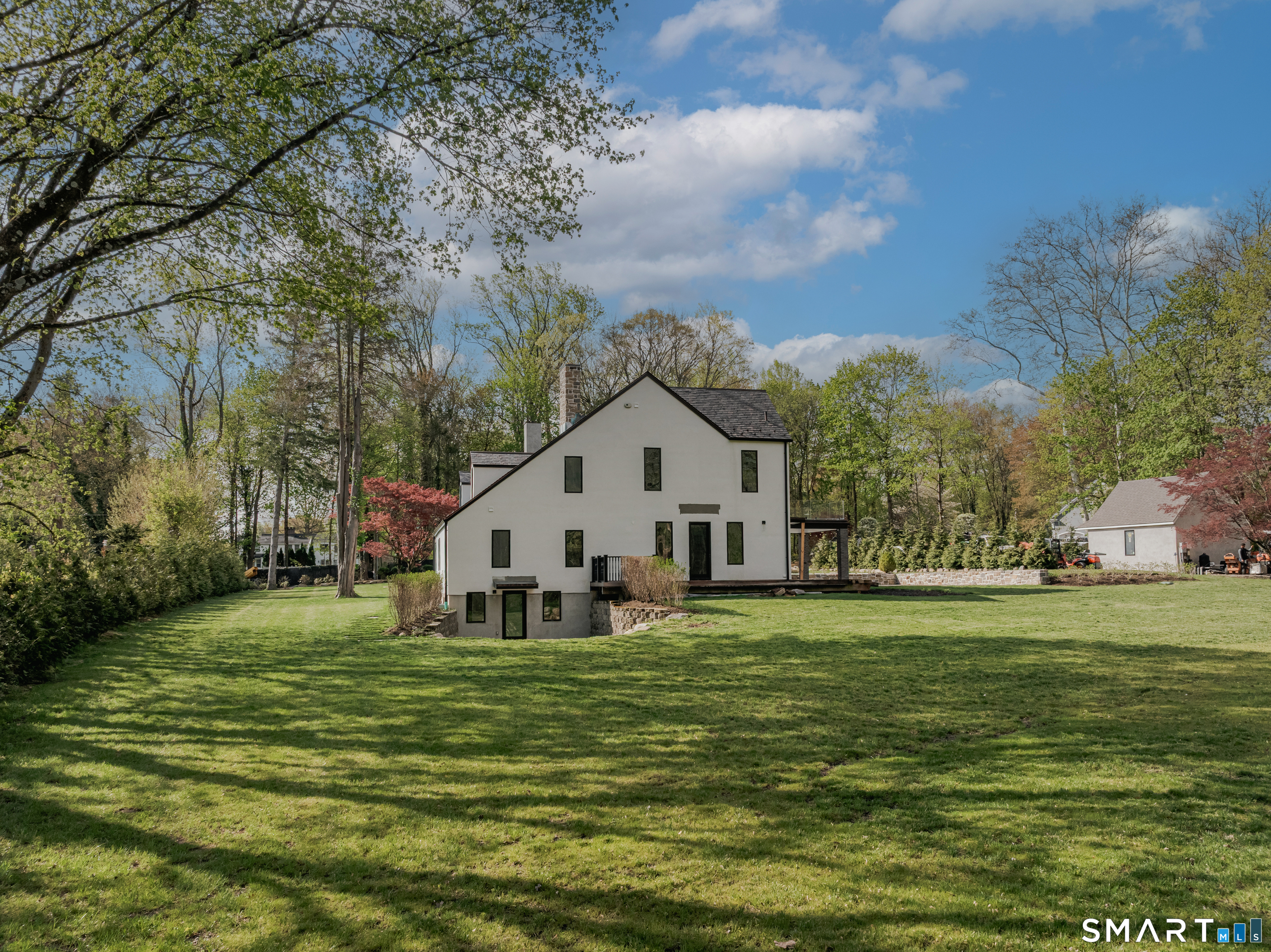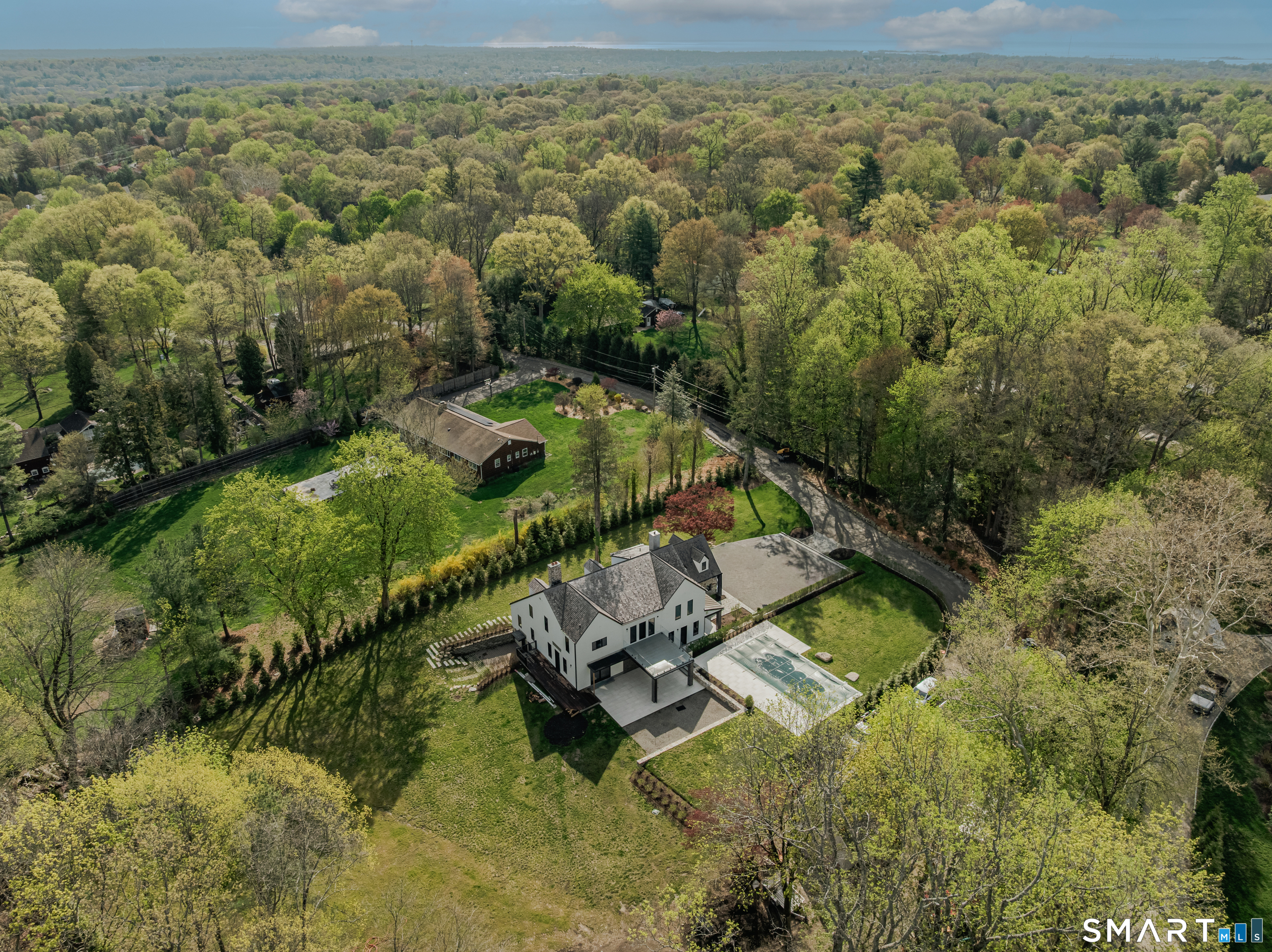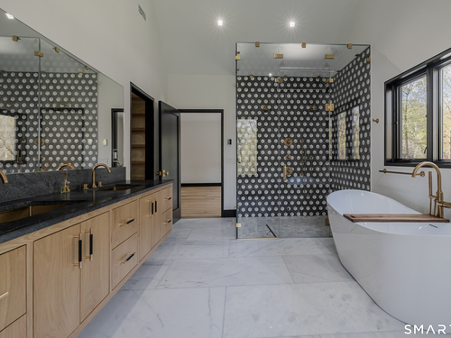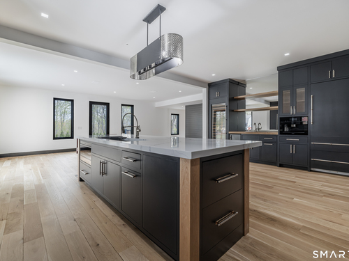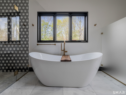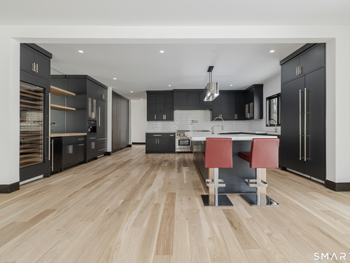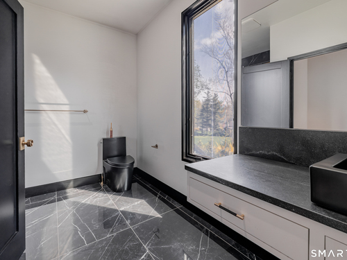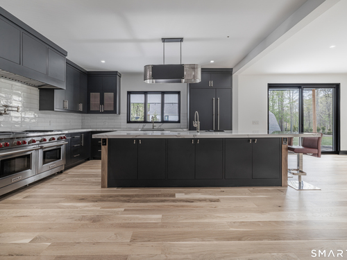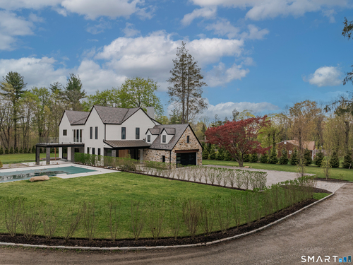 Completely renovated in 2025, this stunning home offers a seamless blend of modern design, quality craftsmanship, and thoughtful details throughout. Situated on approximately 1.5 acres, the property provides exceptional space, privacy, and outdoor enjoyment. Inside, the home showcases high ceilings and 6" white oak hardwood floors that create a warm and sophisticated atmosphere. The beautifully designed kitchen is equipped with brand-new high-end appliances, including a Wolf range, Sub-Zero wine cooler, Miele coffee system, delivering both style and functionality. The first floor includes a bedroom with its own en-suite bathroom, offering flexibility for guests, multi-generational living, or convenient main-level living. The second floor offers a thoughtfully designed layout, highlighted by a spacious primary suite with a spa-like en-suite bathroom, walk-in closet, and private deck overlooking the heated pool, a perfect retreat to relax and unwind. An additional bedroom features its own en-suite bathroom, while two more bedrooms share a beautifully designed full bathroom. A conveniently located laundry area completes the upper level. Bathrooms have been meticulously designed and feature radiant heated floors, offering comfort and luxury. Additional upgrades include a durable slate roof for long-term peace of mind.