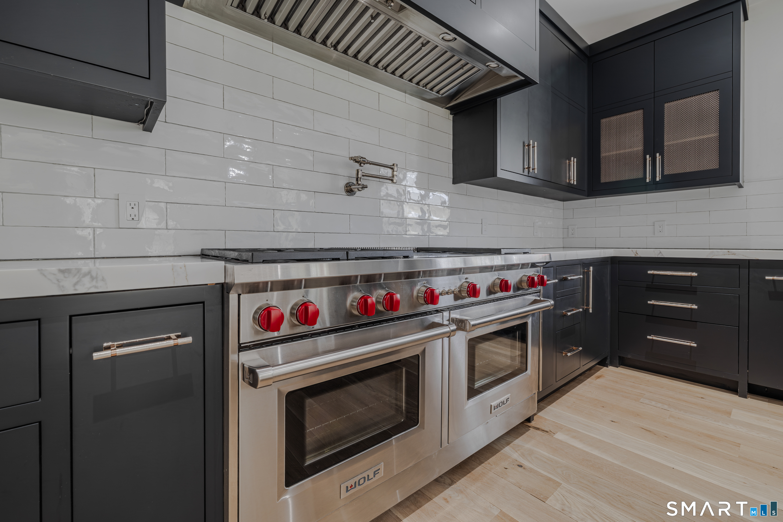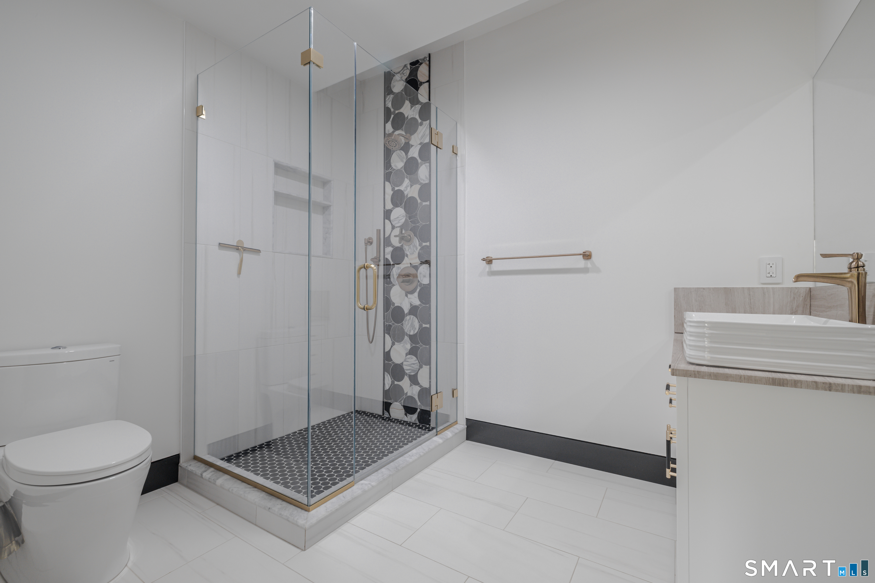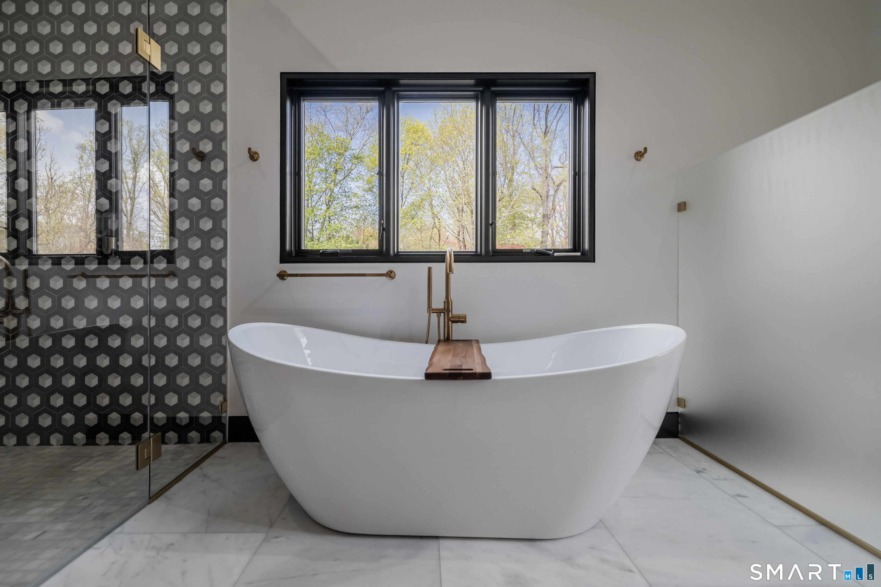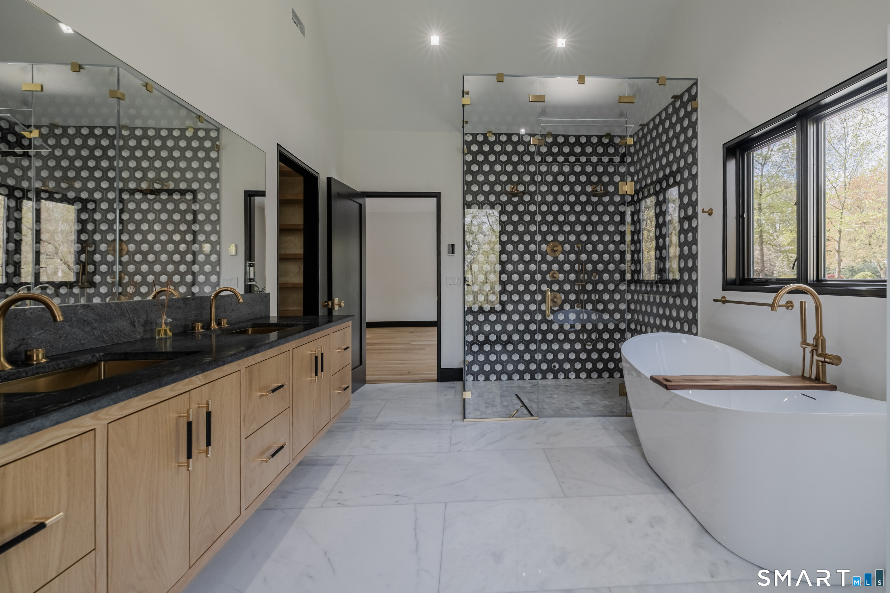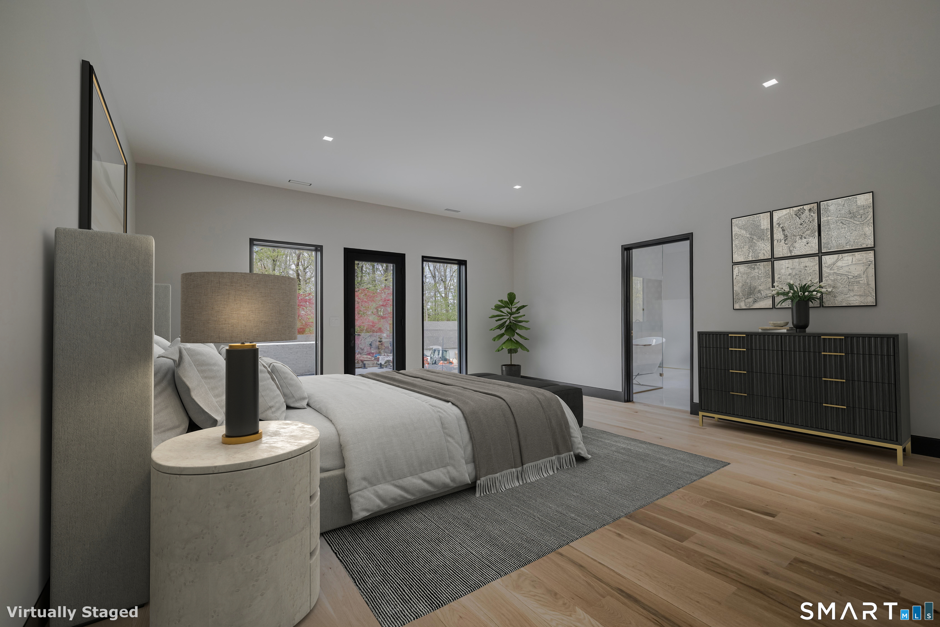 Completely renovated in 2025, this stunning home offers a seamless blend of modern design, quality craftsmanship, and thoughtful details throughout. Situated on approximately 1.5 acres, the property provides exceptional space, privacy, and outdoor enjoyment. Inside, the home showcases high ceilings and 6" white oak hardwood floors that create a warm and sophisticated atmosphere. The beautifully designed kitchen is equipped with brand-new high-end appliances, including a Wolf range, Sub-Zero wine cooler, Miele coffee system, delivering both style and functionality. The first floor includes a bedroom with its own en-suite bathroom, offering flexibility for guests, multi-generational living, or convenient main-level living. The second floor offers a thoughtfully designed layout, highlighted by a spacious primary suite with a spa-like en-suite bathroom, walk-in closet, and private deck overlooking the heated pool, a perfect retreat to relax and unwind. An additional bedroom features its own en-suite bathroom, while two more bedrooms share a beautifully designed full bathroom. A conveniently located laundry area completes the upper level. Bathrooms have been meticulously designed and feature radiant heated floors, offering comfort and luxury. Additional upgrades include a durable slate roof for long-term peace of mind.