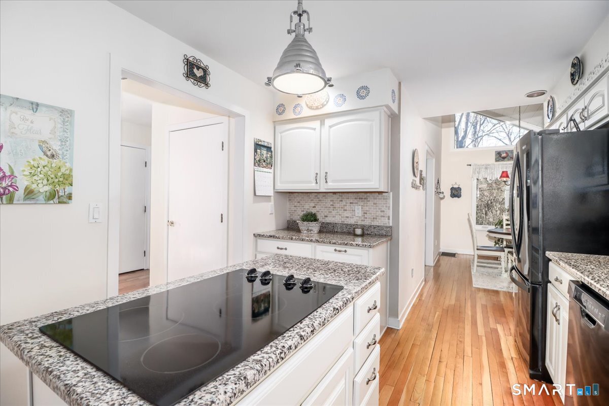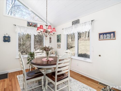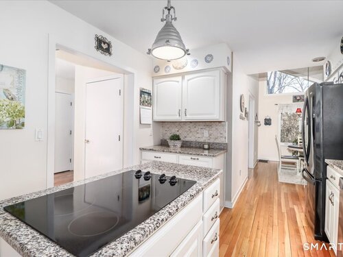 Welcome home! This stunning West Side Danbury contemporary is ready for you. Set on a spectacular property in a sought-after neighborhood, this brightly lit residence features upgrades throughout and an open, airy feel with abundant natural light. The renovated kitchen is a true centerpiece, offering granite countertops, premium appliances, and generous space for cooking and entertaining. Just off the kitchen, the beautiful breakfast room showcases a wood-vaulted ceiling and provides direct access to the deck-perfect for enjoying morning coffee or outdoor dining while overlooking the serene property. The warm and inviting family room features a classic brick fireplace, creating a cozy gathering space for relaxing or entertaining. A main-level office with elegant French doors provides the ideal setting for working from home or a quiet study space. The upper level features a lovely primary bedroom with a renovated bathroom and great closet space. Two additional bedrooms and a hall bath complete this level. Set on over an acre of picturesque land, this exceptional property combines contemporary style, thoughtful updates, and a peaceful setting-an ideal place make your new home.