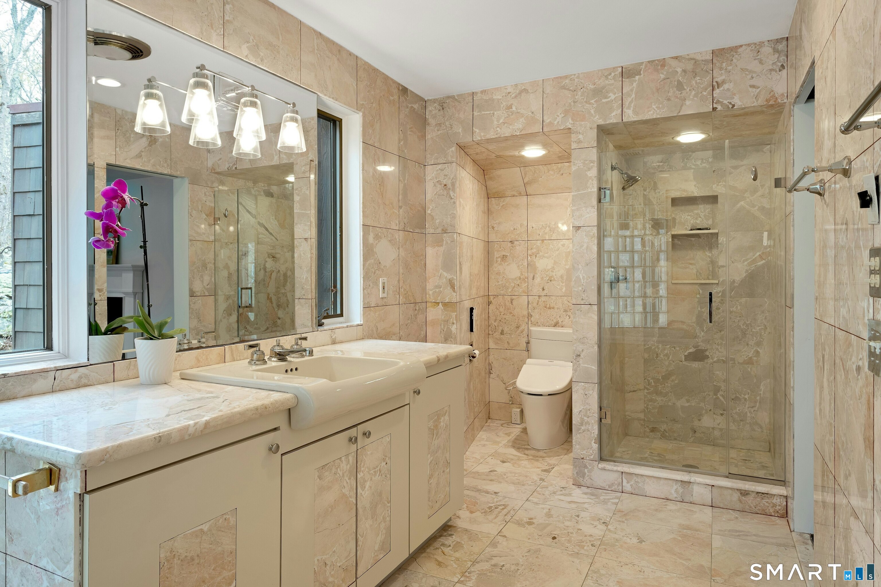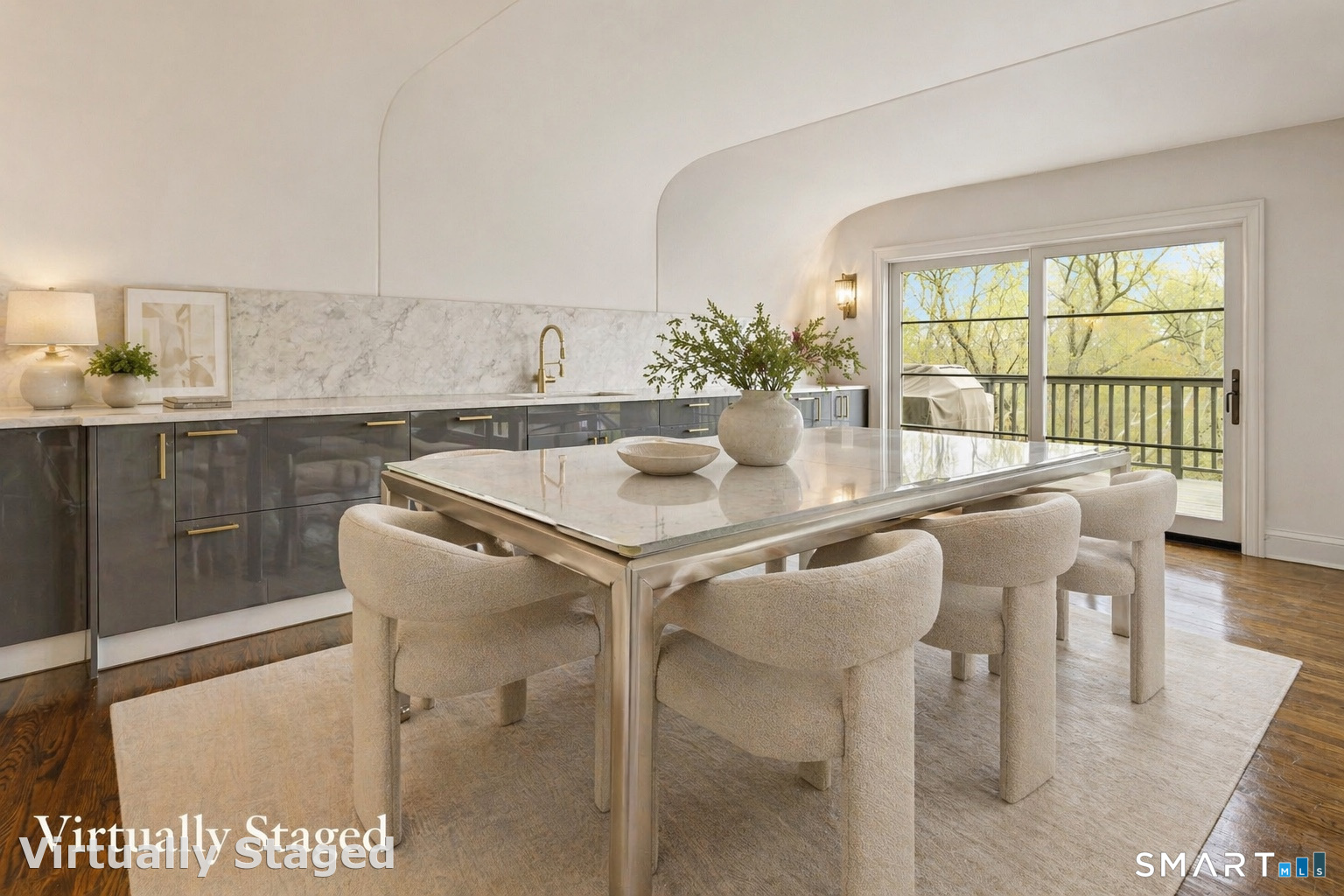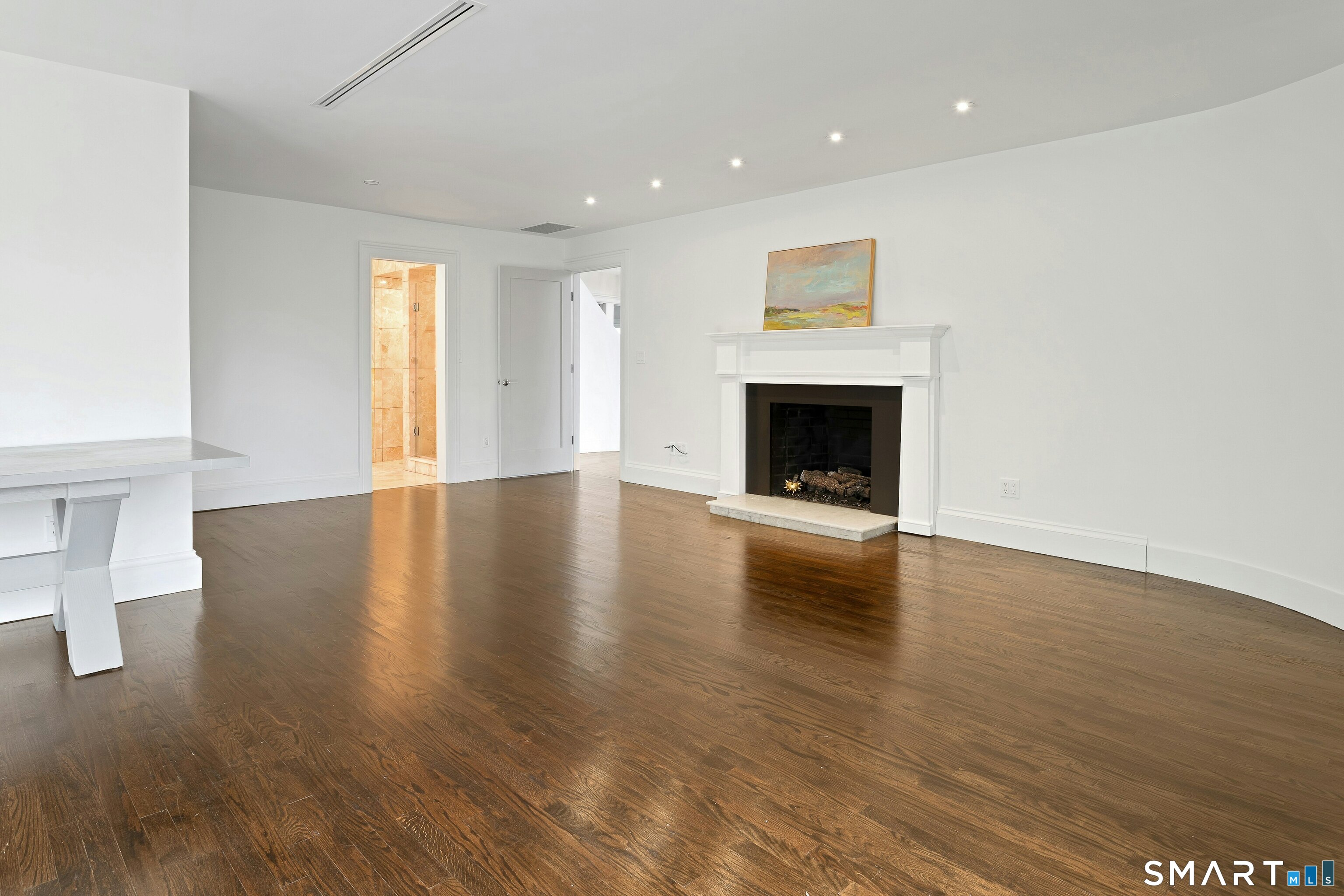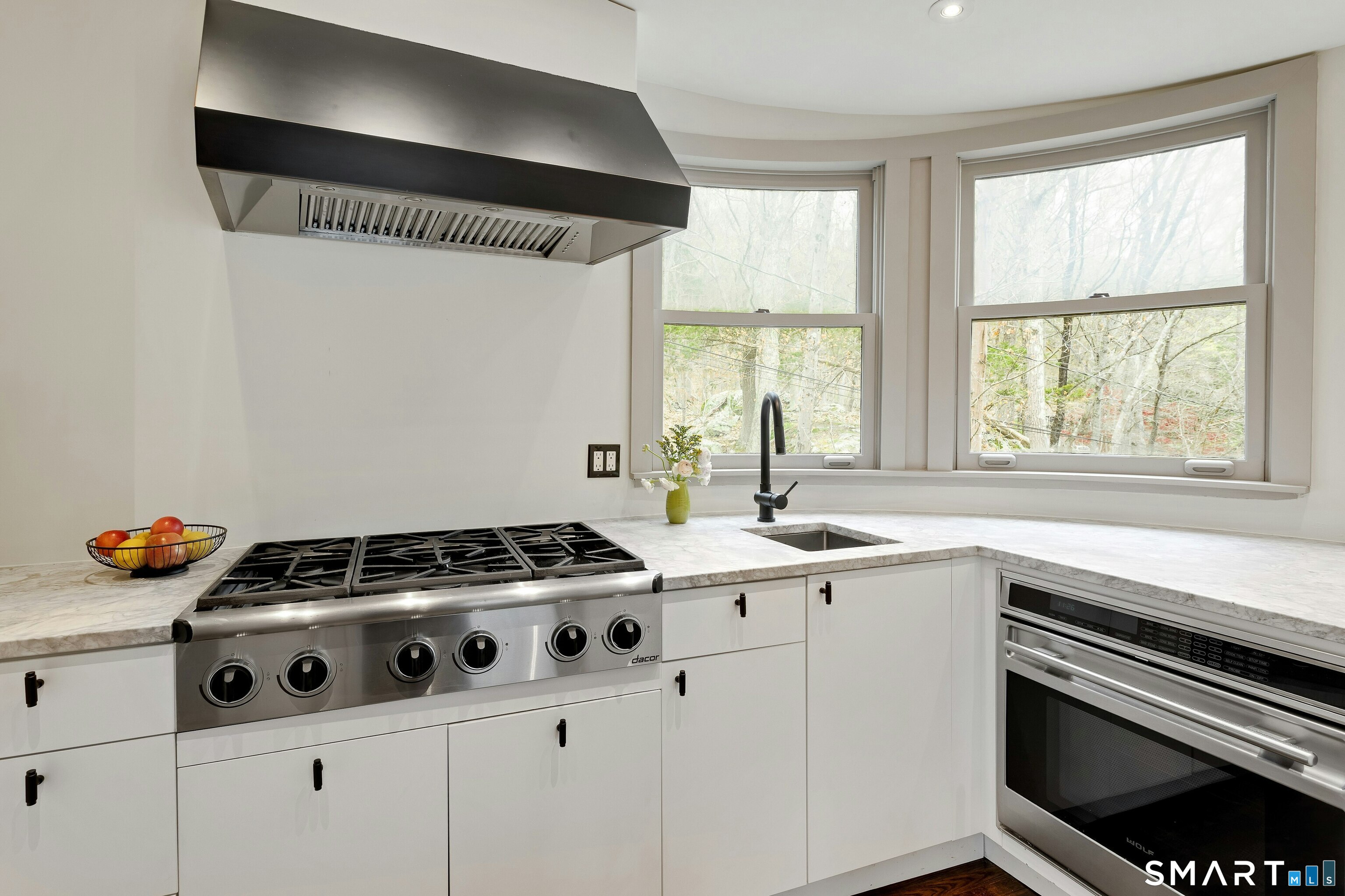 Perched atop 2.12 acres at the end of a quiet cul-de-sac, this fully renovated modern 3BR contemporary offers a rare blend of privacy, architectural drama, and seamless indoor-outdoor living. Set near Aspetuck Land Trust trails, the home blends refined design with serene surroundings. Enter into an open-concept main level featuring a long banquet-style dining area and a stunning great room with soaring ceilings, walls of glass, a stone fireplace, and a sculptural curved staircase that serves as a striking focal point. Just beyond the banquet dining area is a scullery-style working kitchen with premium appliances, including Sub-Zero, thoughtfully designed for effortless entertaining while keeping prep and clean-up discreetly tucked away. Rich dark walnut hardwood floors run throughout. The main level includes 3 bedrooms, each with access to a deck or patio. The spacious primary suite offers a gas fireplace, large custom walk-in closet, and a spa-like bath w/ soaking tub, standing shower, and smart toilet. Upstairs, a dramatic great room with double-height windows, a third fireplace, full bath, separate laundry room, and a sleek marble-clad designer kitchen provides exceptional flexibility for guests, entertaining, or multigenerational living. A truly rare and architecturally compelling home, this one-of-a-kind retreat captures the very best of privacy, design, and natural beauty in one of Weston's most coveted settings.