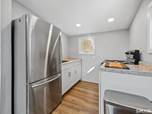 Welcome to this charming 3 bedroom, 2 bath contemporary ranch located on Kanungum Trail in Shelton with beautiful sunset views. Thoughtfully updated and full of warmth, this home offers a comfortable layout with tasteful finishes throughout. Step inside to find wood floors and recessed lighting that create a bright, welcoming feel. The living room is anchored by a cozy floor to ceiling stone fireplace with wood stove, perfect for relaxing evenings while keeping this home nice and warm. The kitchen features stainless steel appliances and flows seamlessly into the main living spaces ideal for everyday living and entertaining. Lower level features the third bedroom with beautiful barn door, full bathroom and laundry area. Recent improvements include a new asphalt driveway, new staircase and modern style banister, updated landscaping with additional parking, a new oil tank, waterproofed crawl space, updated windows, fresh paint, new interior doors, updated mudroom entry and beautiful cedar accent details, adding both character and peace of mind. Build your dream garage! Approximately 20x30 garage block foundation is in place ready to be built. Set in a desirable Shelton location right near Sikorsky Aircraft Headquarters, this inviting home blends comfort, style, and thoughtful updates ready for you to move in and make it your own.