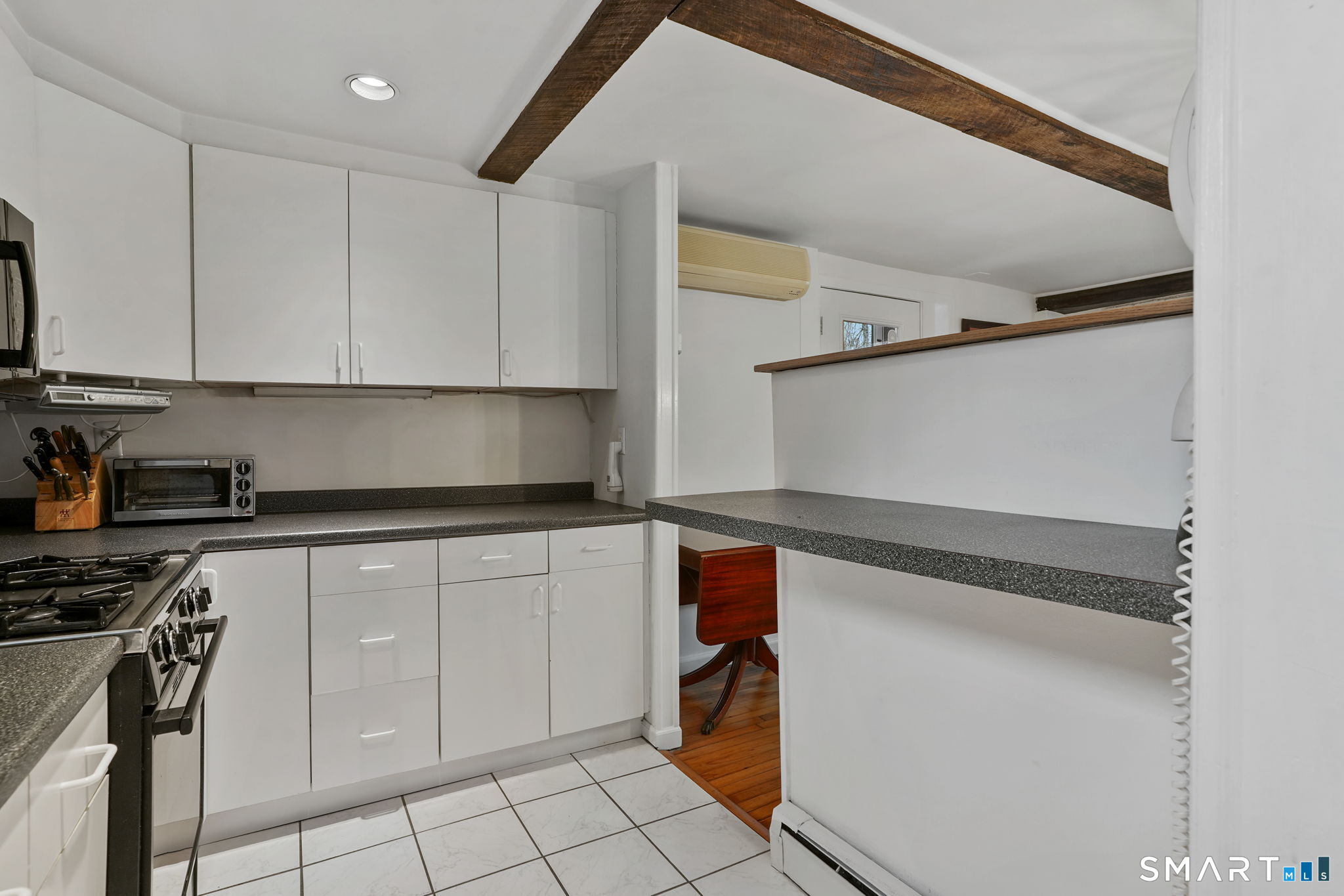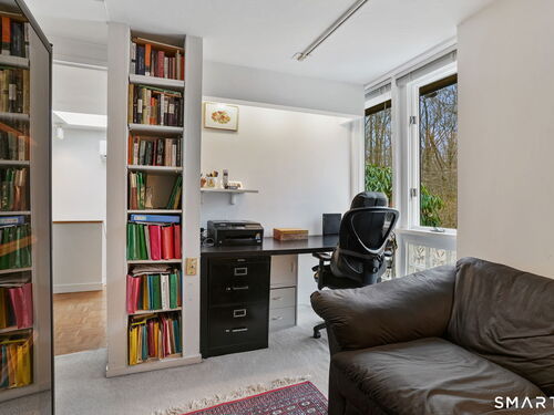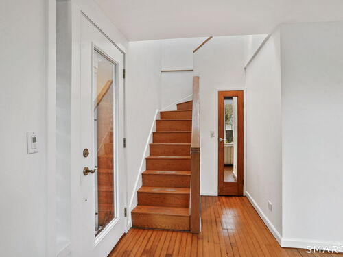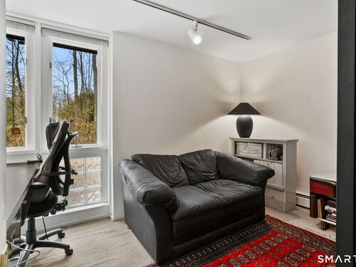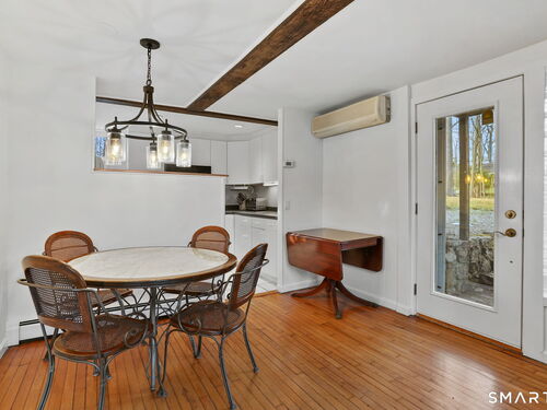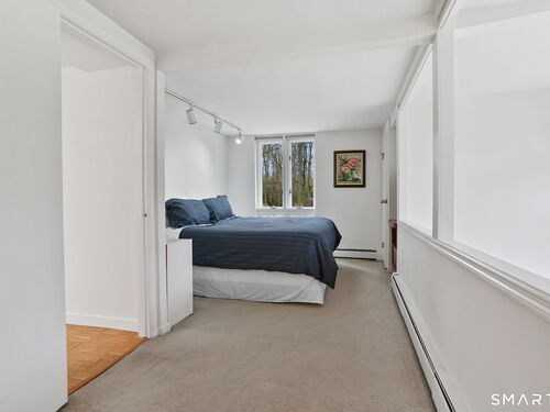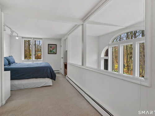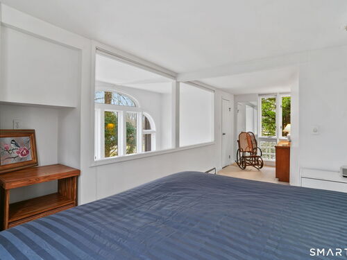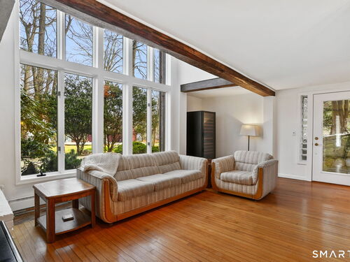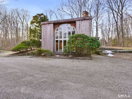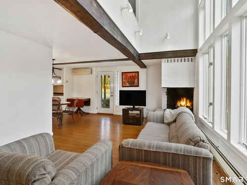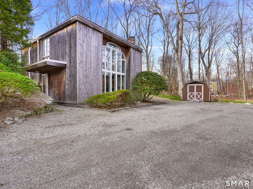 Tucked away on a quiet yet convenient cul-de-sac in sought-after South Wilton, this unique Mid-Century Modern home is a rare blend of character, functionality & serenity. Set on a private one-acre lot, the property exudes peace & tranquility while remaining close to everyday conveniences. Every inch of the 1,260 above ground sf has been thoughtfully designed to maximize useful space, light & flow. The main level is filled w/ natural sunlight streaming through expansive two-story windows, highlighting the hardwood floors & creative architectural details. The living room is anchored by a striking contemporary corner brick gas fireplace and dramatic floor-to-ceiling window bank, creating a warm and inviting atmosphere. A cozy dining nook & efficient galley kitchen offer easy access to a gravel patio, making indoor-outdoor entertaining effortless. Upstairs, the generous primary bedroom features 2 walk-in closets and an interior balcony that overlooks the main level, enhancing both the home's character and its abundance of light. A 2nd bedroom provides flexible space, perfect for a guest room or home office. A full bath w/ stall shower completes the second level. Meticulously maintained, the home offers exceptional value. Private, distinctive, and and impeccably cared for, this exceptional property is truly one of a kind. Ideal commuter location. Close to trains, shopping, parks & trails, Wilton Center, Westport and Norwalk.