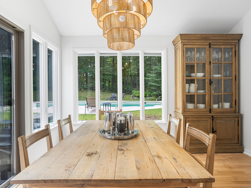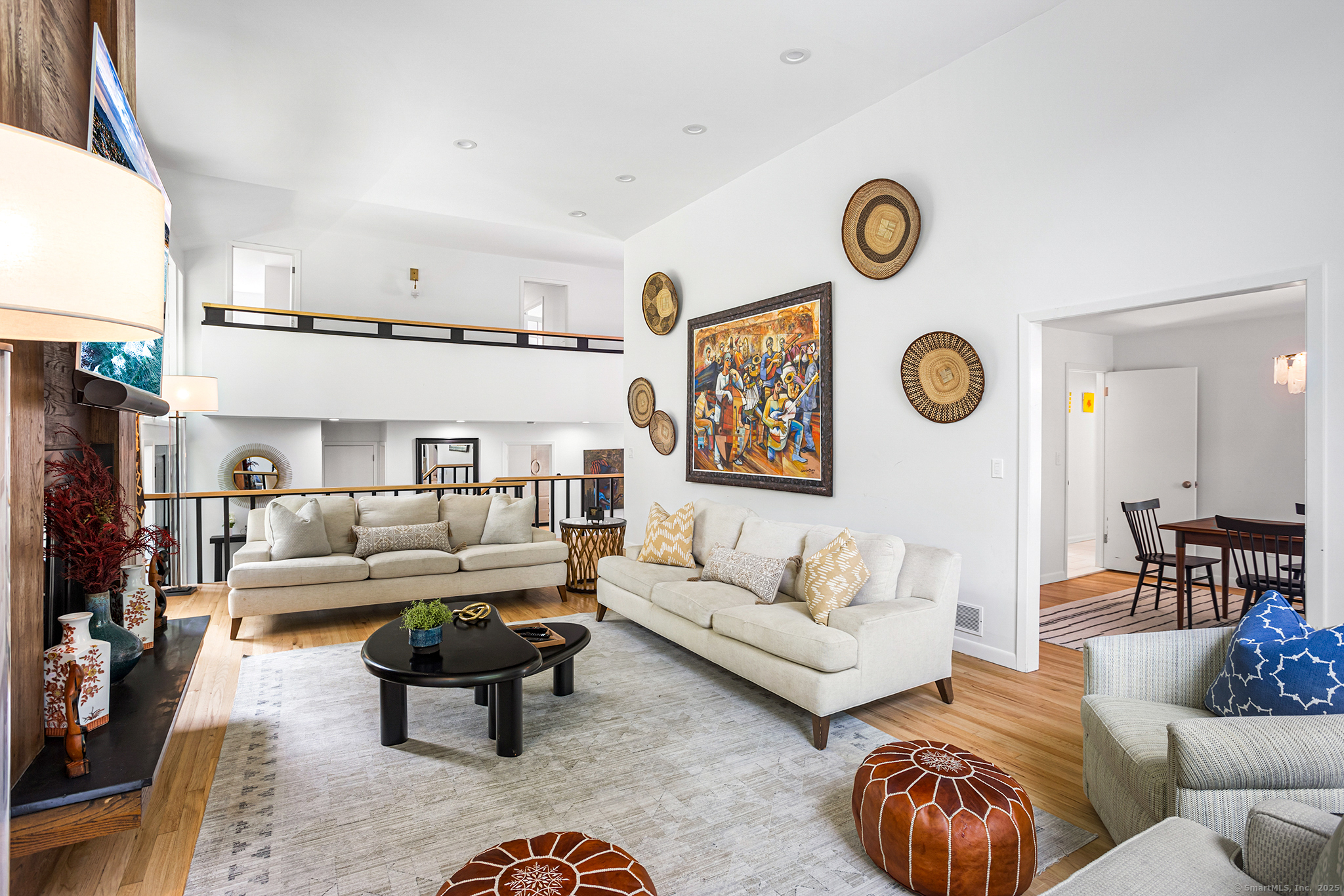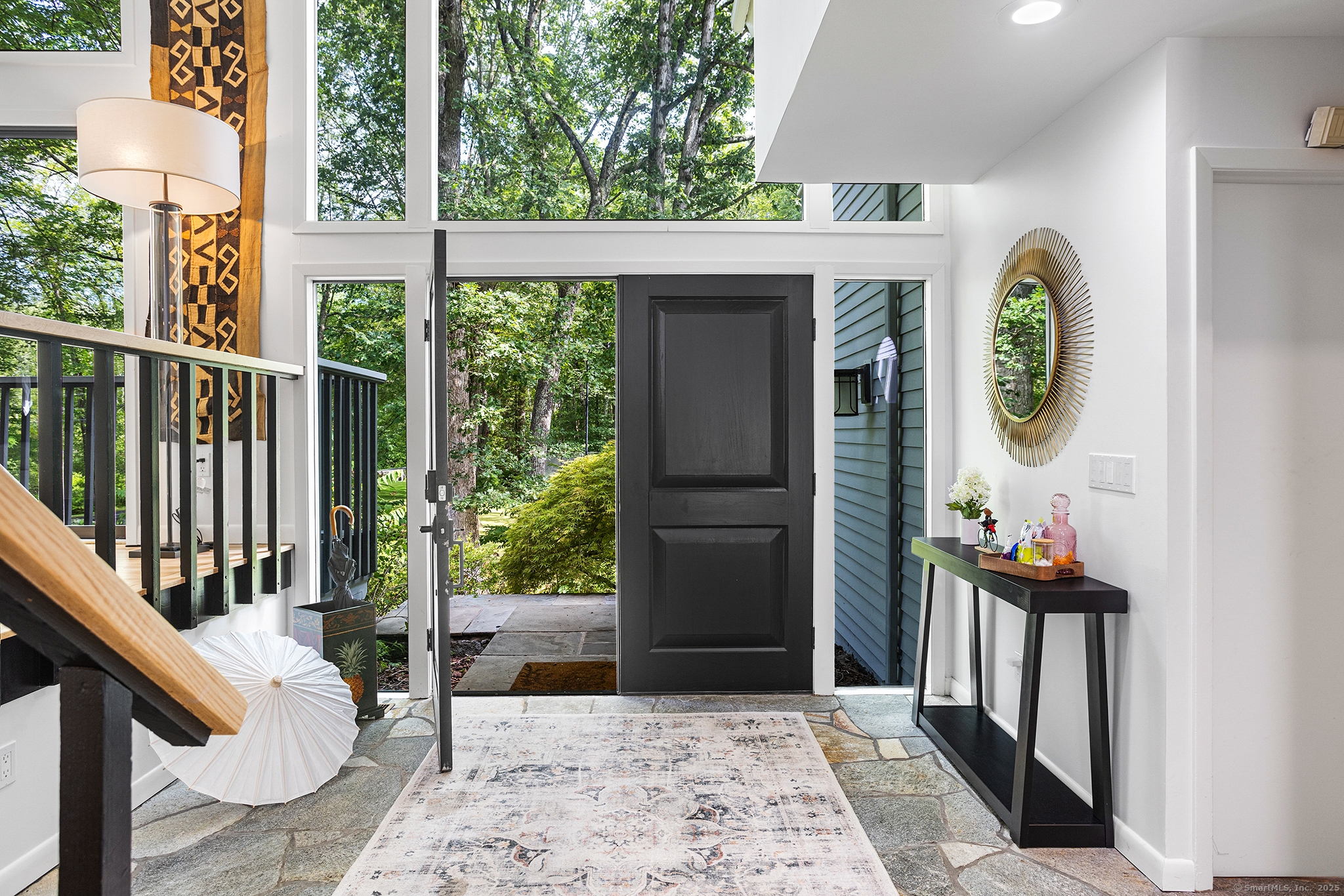 Discover the serenity of 335 Georgetown Road, where a grand, private approach leads you through exquisitely landscaped grounds adorned with lush foliage, natural stone, and vibrant blooms. This contemporary masterpiece is perched on 3.38 acres, featuring a professionally lit Tartan basketball court, expansive side deck and a secluded pool. The main floor primary suite has two generously sized walk in closets and a sitting room and/or gym space, also offers a private deck, with direct pool access. With soaring ceilings and expansive glass windows, the home is bathed in natural light throughout the day, while remaining comfortably shaded by strategically placed trees. The grand living room is perfect for entertaining, showcasing a striking floor-to-ceiling walnut fireplace visible from the dramatic second-story overlook. Prepare scrumptious meals in the kitchen and dine casually, overlooking the pool or more formal in the dining room. Additional features include a main floor office, a designated guest space that includes a full bath and sitting room, also, a finished walk out lower level with spacious rec room and home gym. Conveniently located just 5 minutes from the renowned Weston schools, this home is ready for immediate possession. Schedule your visit today!