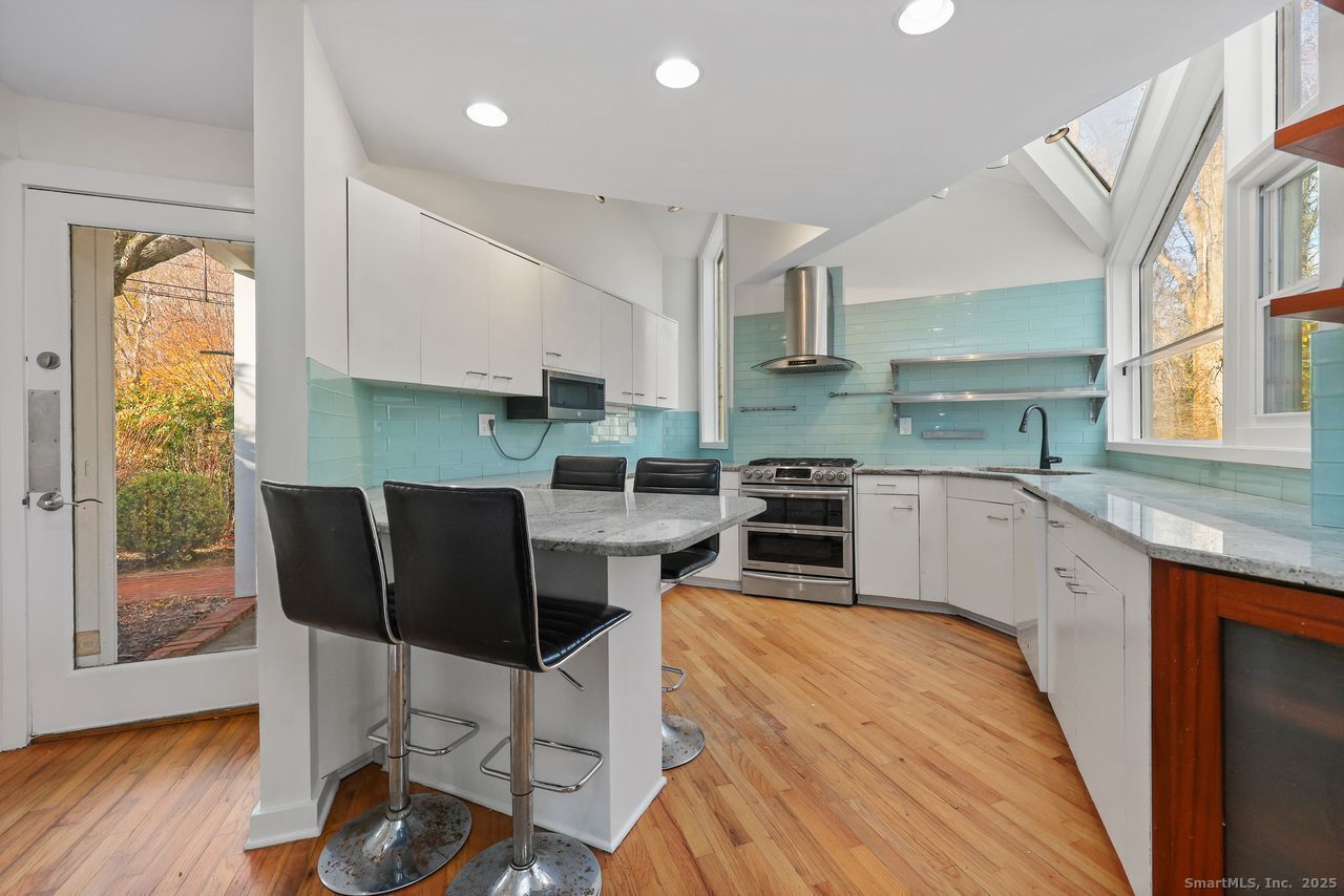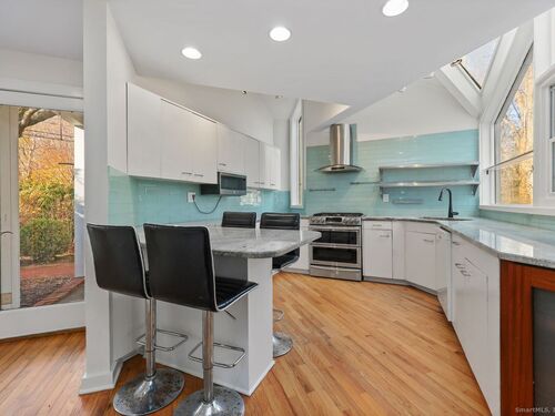 Unbeatable 5 Bed 3 Full Bath custom contemporary set on a picturesque .52 acre lot in highly sought after Lower Easton neighborhood. This incredible home boasts over 3,300+ sq. ft. of living space and is sure to please from the moment you walk through the front door! Modern, white kitchen features granite countertops, SS appliances, tile backsplash, dishwasher & tons of cabinet space, which flows seamlessly into the formal dining room - perfect for hosting holidays or entertaining guests! Massive sun-filled living room w/ 14+ ft. cathedral ceiling & beautiful wood burning fireplace, that also has a spiral staircase leading up to a huge playroom/bonus room. The rest of the main level includes 3 spacious BRs, 2 full baths & foyer/mud room. As you make your way upstairs, you'll notice the Primary BR w/ vaulted ceilings, balcony & walk-in closet, additional BR & beautifully updated full bath. Make working from home a breeze in the private top floor office space. Step outside to the park-like yard and enjoy relaxing on the gorgeous stone patio/deck area or putting your Green Thumb to work in the raised garden beds. This amazing home also comes fully equipped w/ newer roof installed in 2024, freshly painted interior/exterior, hardwood floors, storage barns & recessed lighting throughout. Close proximity to the Merritt Parkway, Sacred Heart University, Easton Community Center, Silverman's Farm, Maple Row Farm, The CT Golf Club, Aspetuck Valley CC, restaurants, shopping & more!!!