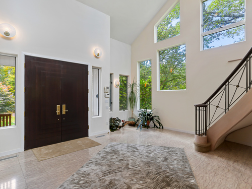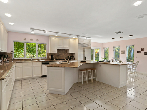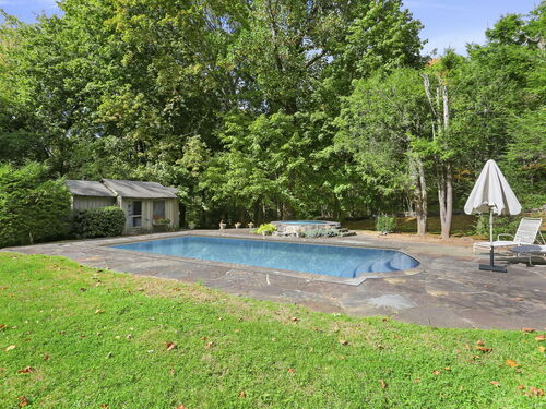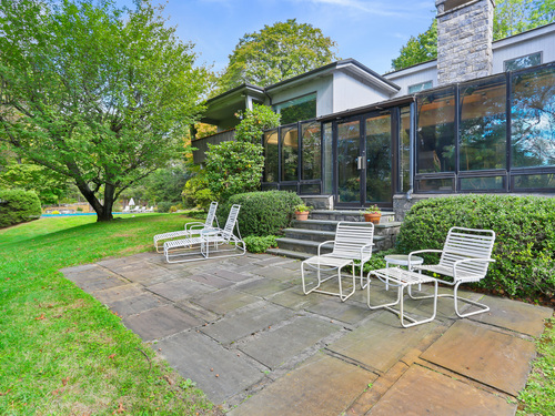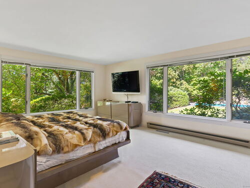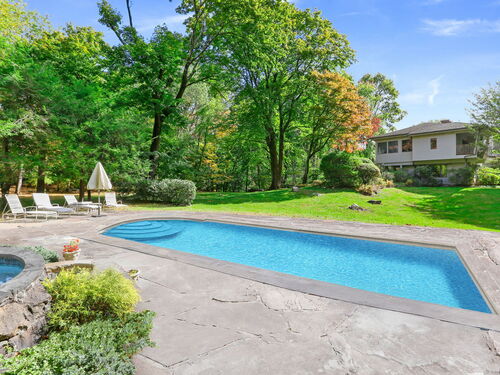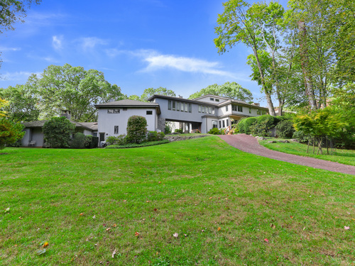 Exceptional 6.5 acre country compound located in a private gated association in Greenwich. This bucolic property unfolds with so much to offer. Manicured lawns, mature plantings and vistas complement the amenities which include a pool & spa, pool house, tennis & basketball courts & art studio or apartment. The home has a masterful blend of timeless architecture with hipped roofs, horizontal lines & well situated windows that seamlessly integrate with the natural landscape. The sprawling 9200 square foot home offers high ceilings & spacious formal and informal rooms, which accommodates both intimate family gatherings and grand parties. Enter via a double height grand foyer with curved metal railed staircase & you will see marble and wood floors, great wall space for displaying art. First floor offers a large living room with greenhouse area, dining room, primary suite with adjacent office, gourmet kitchen, family room and access to different outdoor patios and decks. The second floor offers another luxe primary suite, several bedrooms and a great room with beamed ceiling. Bonus: koi pond with waterfall, vegetable garden area, office spaces, 5 garages and generator. Conveniently located to schools, highways and an easy drive to downtown Greenwich and train.