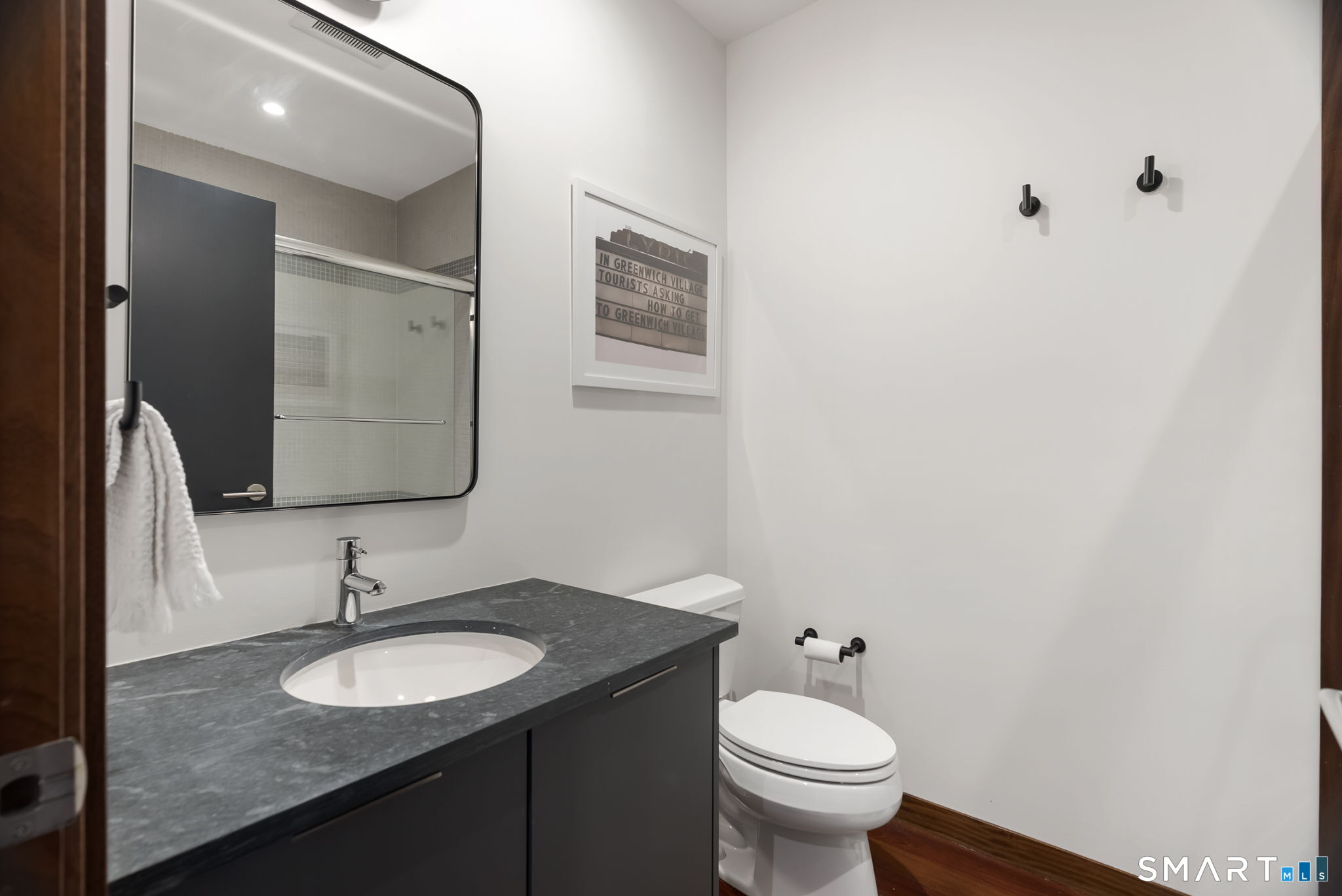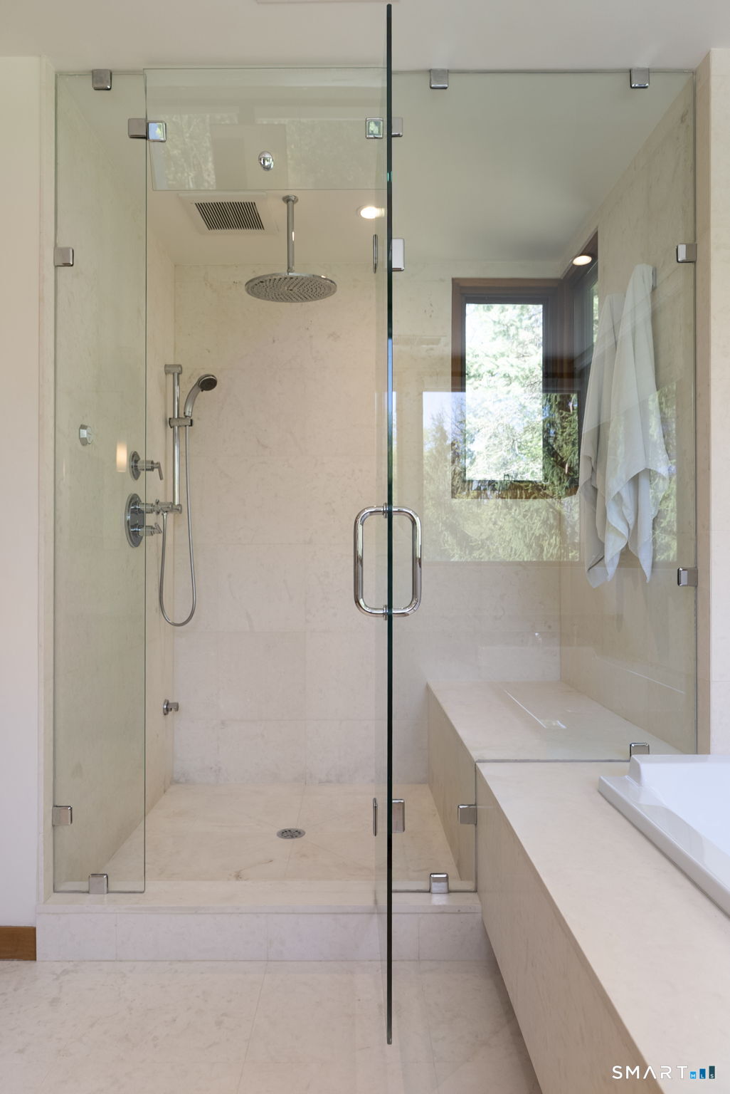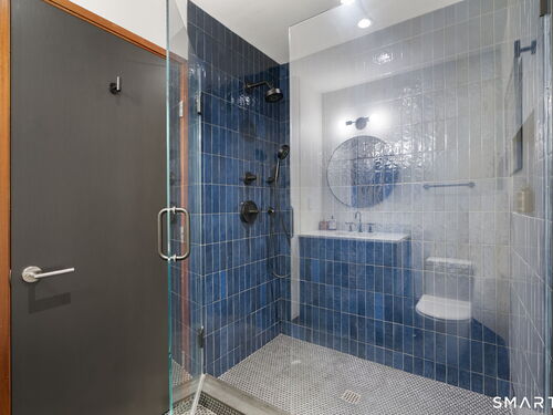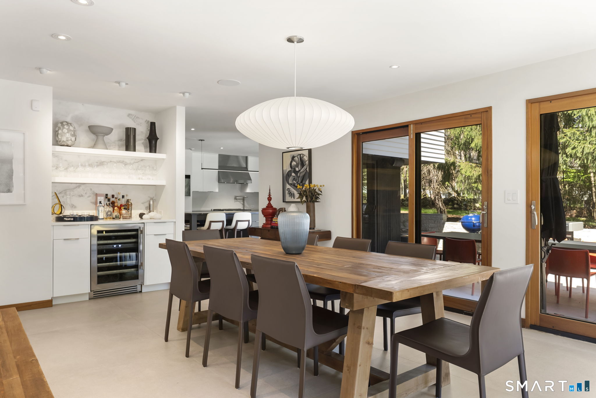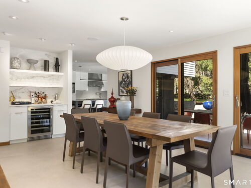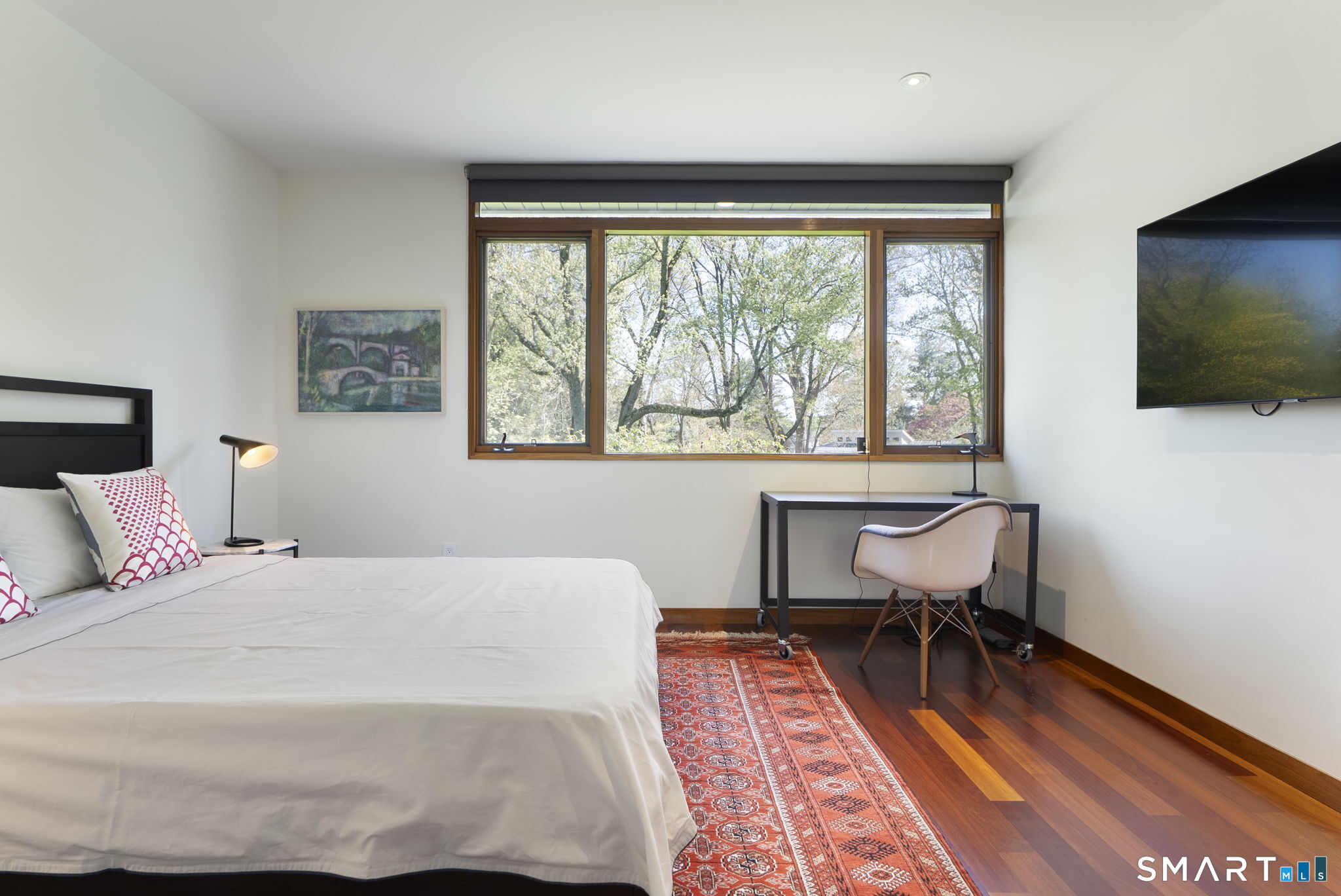 The Deck House, a true masterpiece of modern design, seamlessly blending architectural brilliance with the beauty of its natural surroundings and an incredible offering of outdoor living. Oversized windows invite natural light in and and frame the views of the surrounding landscape. Rich Mahogany finishes and natural stone surfaces create an organic aesthetic throughout. The main floor is designed with versatility in mind, offering bright, open-concept living and dining spaces perfect for gathering, along with a quieter wing with two bedrooms and a lounge. Upstairs, you'll find the luxurious primary suite with dressing room, sleek bath, corner fireplace and deck access, an additional en suite bedroom, a dedicated office, and a home gym. And then there's the outdoors-a true haven for both relaxation and recreation. Expansive decks on multiple layers, and a sparkling salt water pool set the stage for enjoying the company of family and friends, while the sport court adds extra fun. The professionally designed landscaping and lighting bring the spaces to another level. Located on a quiet cul-de-sac right in the center of town, this special home is close to town, schools, shopping and dining!