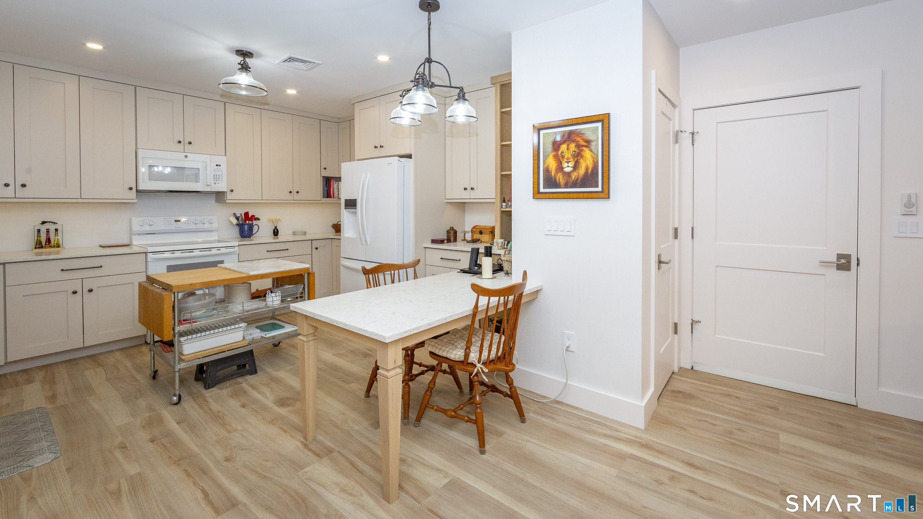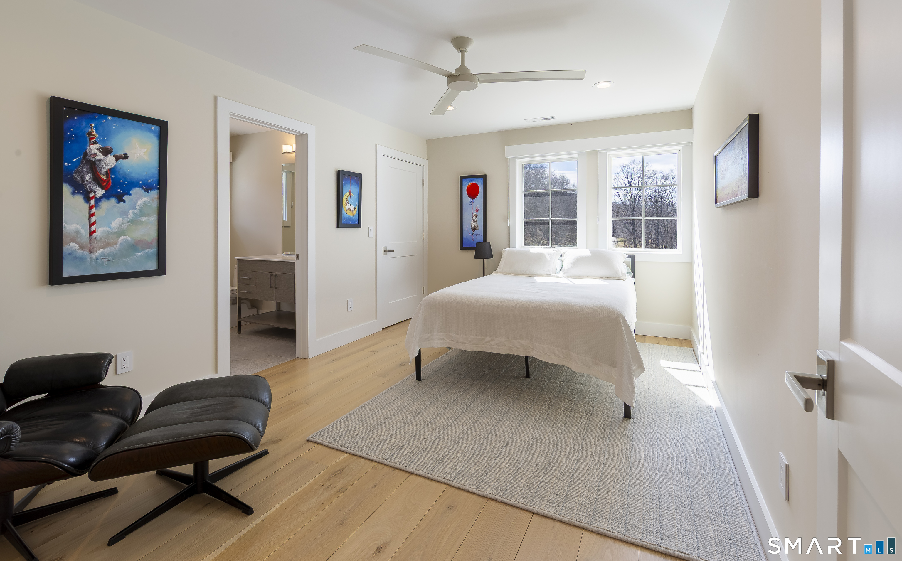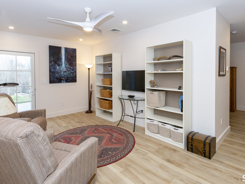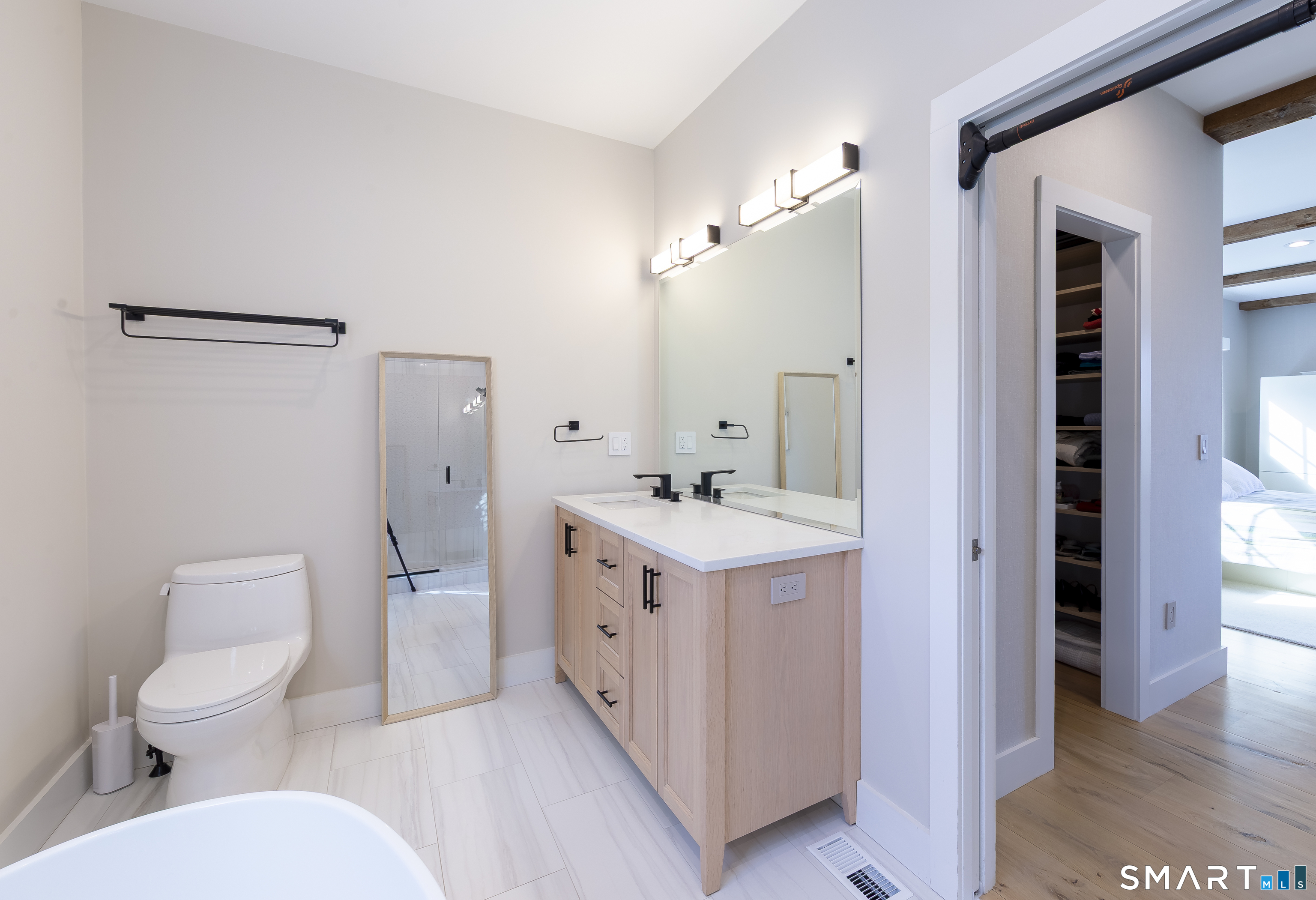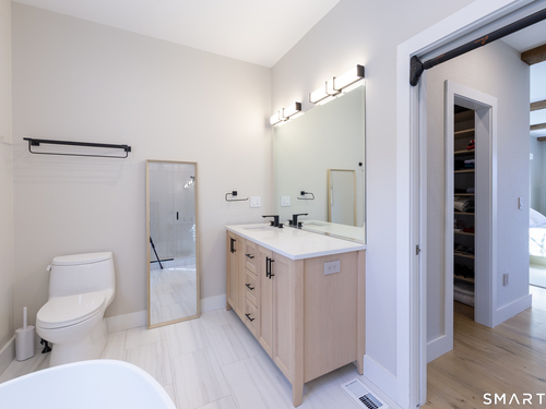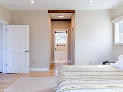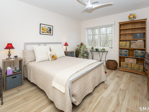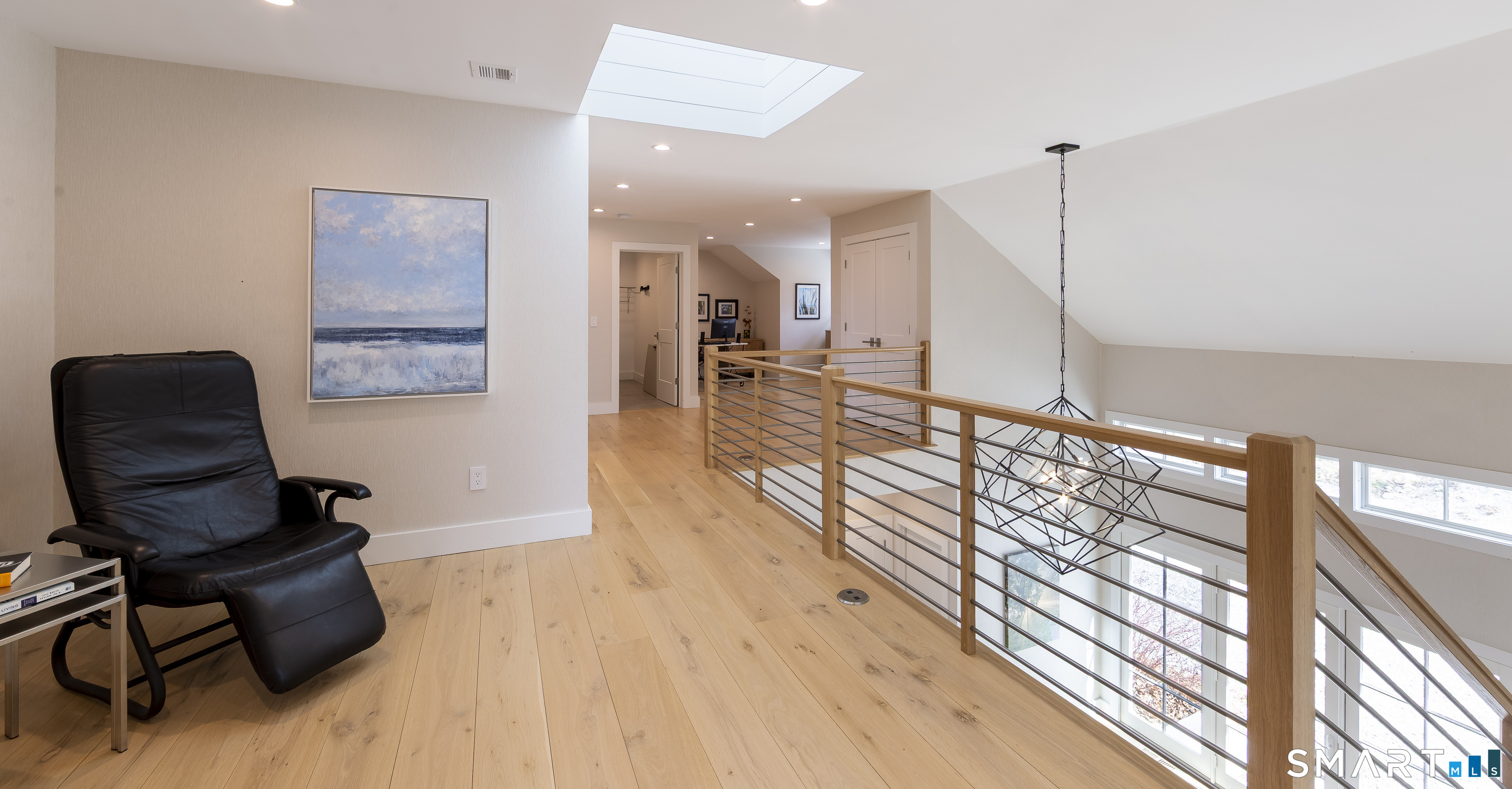 A striking blend of modern design and timeless barn-inspired architecture, this exceptional 4,250 SF home sits privately on 12.77 acres and offers a rare sense of space, light, and tranquility. Built in 2022, the residence still feels brand new, with 5 BD, 4 BA, and 1 half bath over 3 levels, including a legal accessory apartment. A dramatic two-story foyer sets the tone, showcasing a split staircase w/sleek stainless-steel cabling and an open balcony above. The ML is defined by soaring 9-foot ceilings, reclaimed wood beams, wide-plank white oak floors, and expansive windows and doors that invite natural light into every corner. The open-concept design seamlessly connects the great room to a chef's kitchen outfitted w/premium stainless-steel appliances, a waterfall island & bright breakfast area. The adjoining dining room, anchored by a floor-to-ceiling stone fireplace and access to a side patio, offers flexibility as either a formal gathering space or a relaxed family room. A music room w/tray ceiling provides an ideal setting for a home office or formal dining space. 1st floor primary suite is a private retreat, complete with dual walk-in closets and a spa-like bath featuring a soaking tub and walk-in shower. A powder room & expansive mudroom w/custom cabinetry connect effortlessly to the attached two-car garage, crowned w/a classic cupola. The UL continues to impress with a well-balanced layout. BDRM#2 enjoys an ensuite bath, while BDRMS #3 and #4 share a full BA.