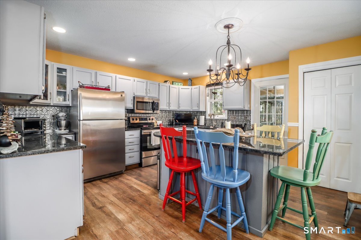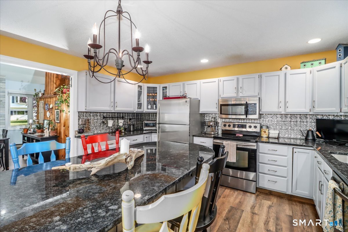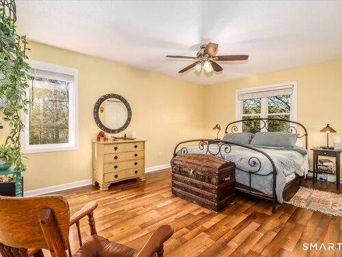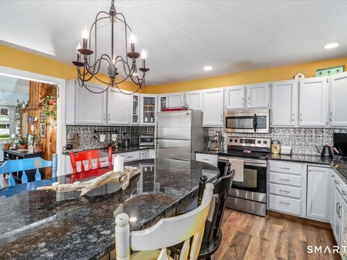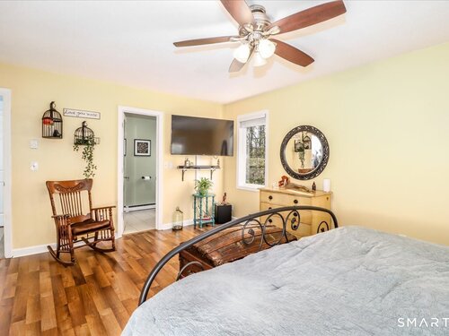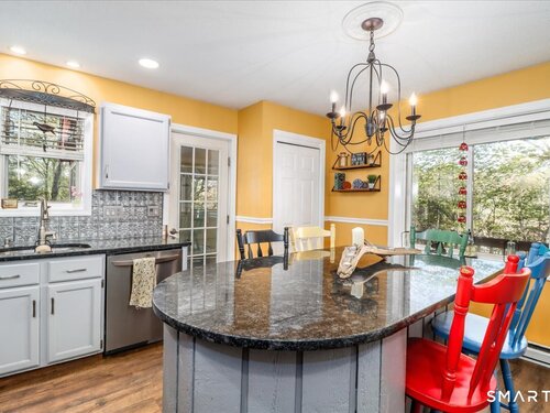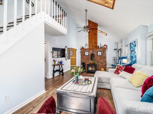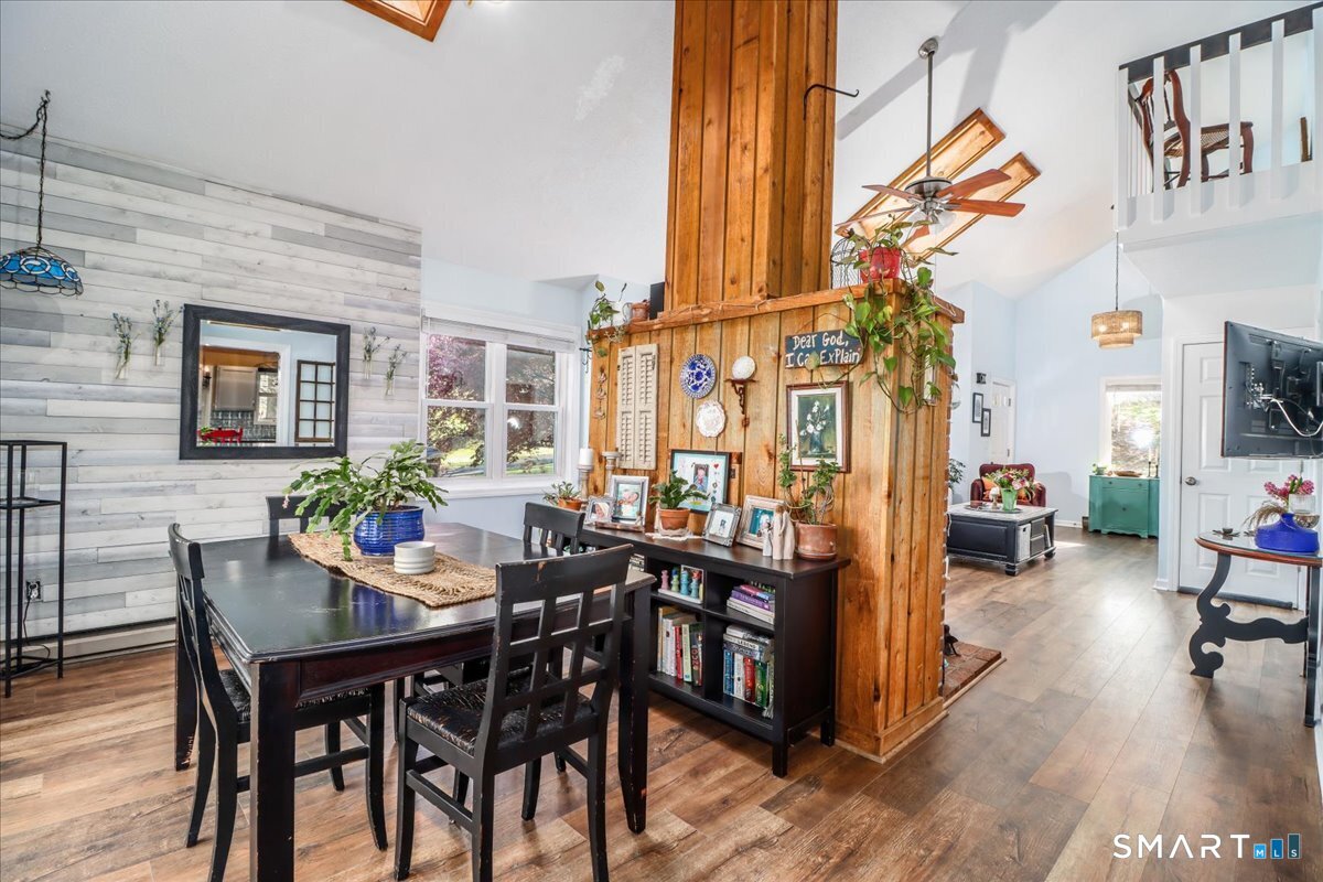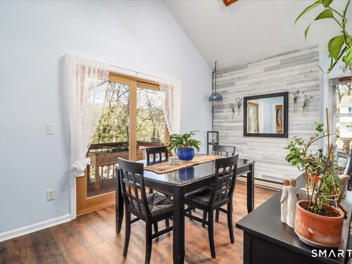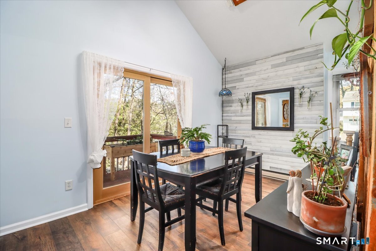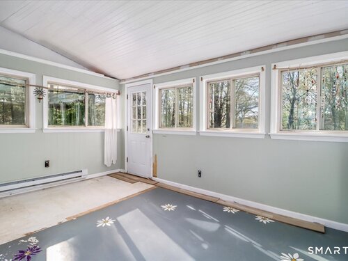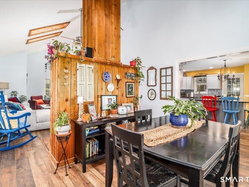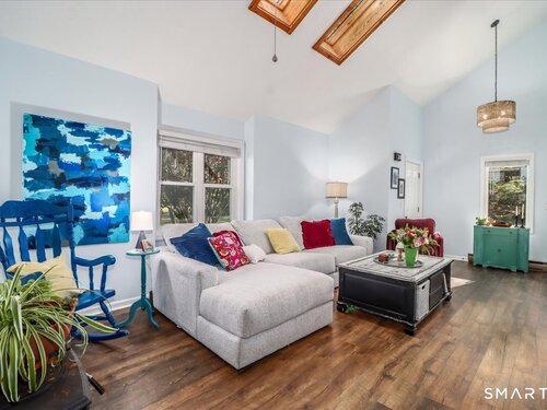 This custom contemporary home offers a highly sought-after open-floor plan, designed for both comfort and style. Featuring vaulted ceilings and skylights, the interior is filled with natural light, complemented by updated flooring. A charming brick wall with woodstove creates a warm and inviting focal point on the main level. A nice feature to the home is the main level bedroom. The spacious upper-level bedrooms provide ample room for relaxation, A sunroom adds additional living space, perfect for year-round enjoyment, and the finished lower level offers endless possibilities-ideal for a home office, gym, or entertainment area. This home is embraced by lovely gardens and set on a level, private yard in a peaceful, serene setting at the end of the street , and just moments from Candlewood Lake. Enjoy outdoor living with wraparound decking and the convenience of a two-car garage.