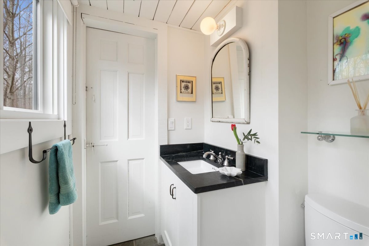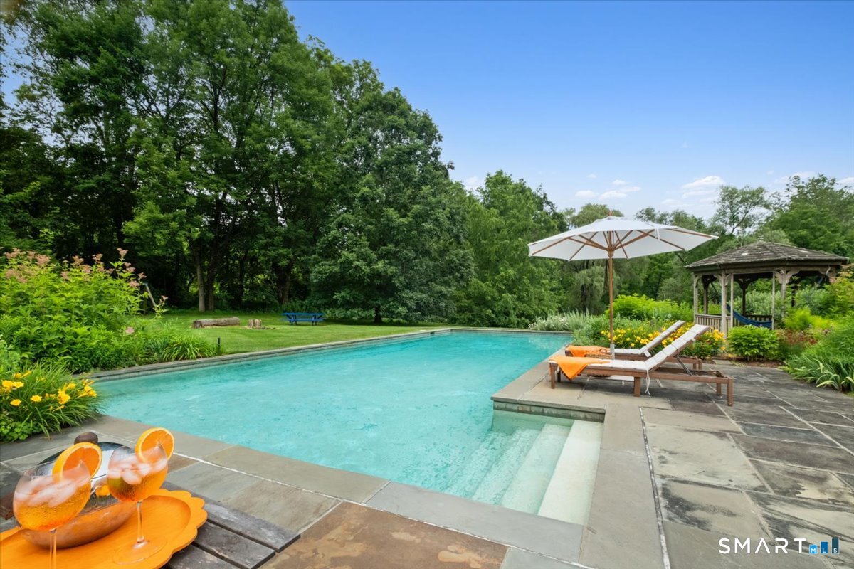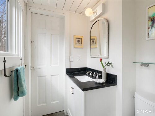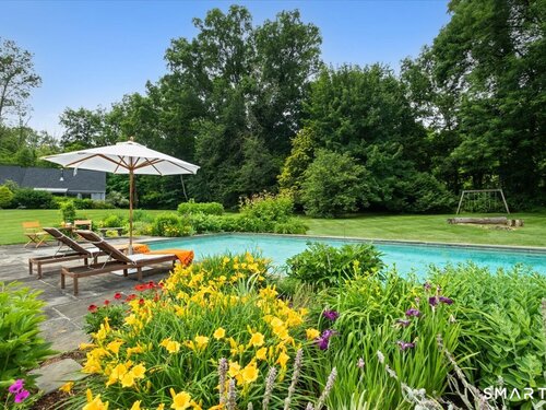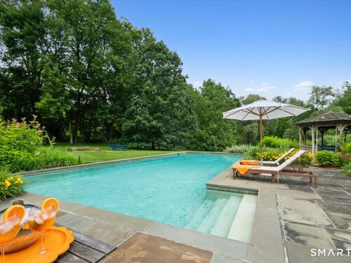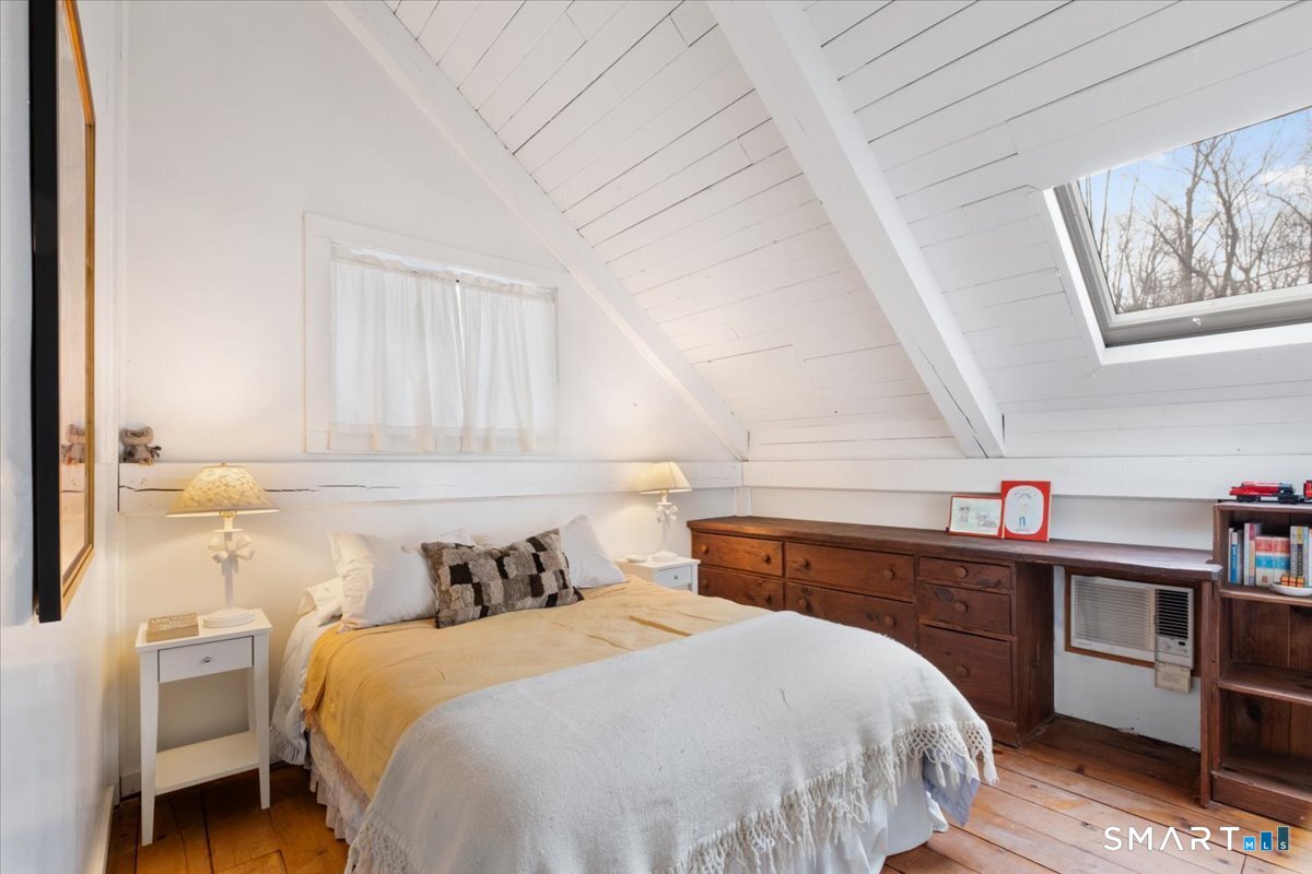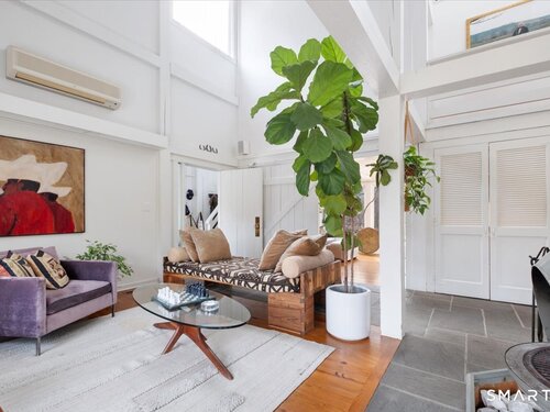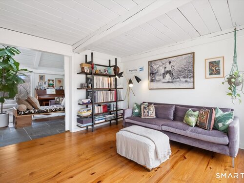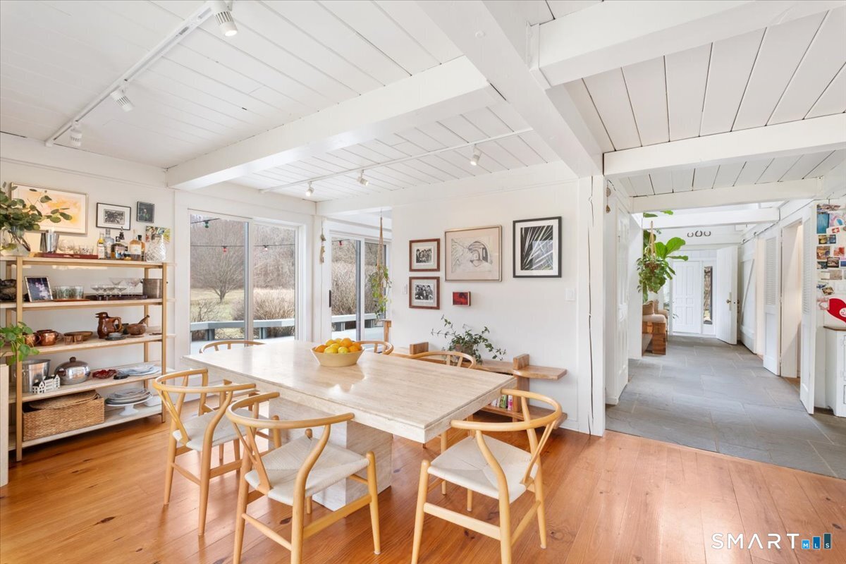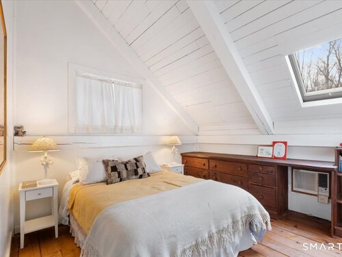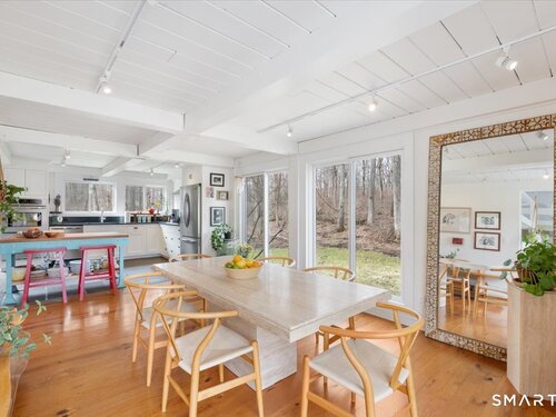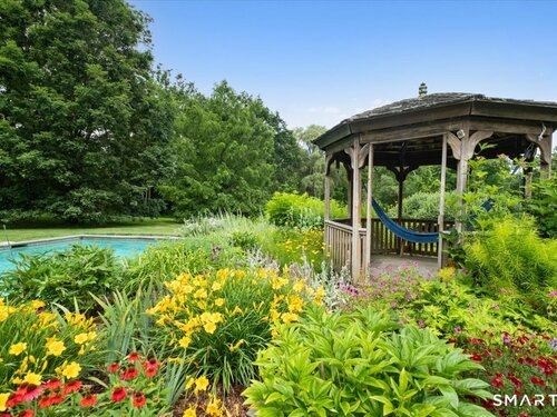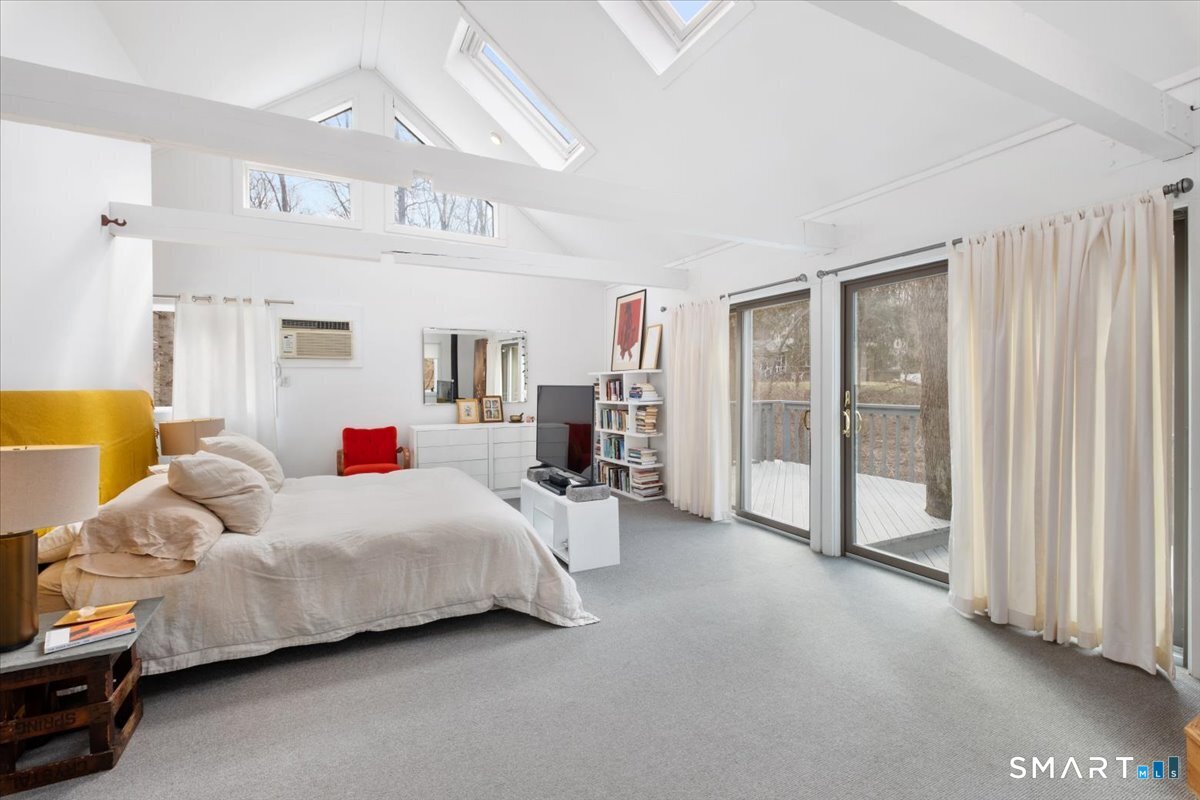 Welcome to 7 Anderson Hill Rd - a serene retreat set on over 7 acres of beautifully landscaped grounds, featuring specimen trees and vibrant perennial gardens that create a true sense of peace and privacy. A charming stone gravel driveway leads you to this stunning contemporary home offering 3 bedrooms, 2.5 baths, and a detached, heated 2-car garage. Inside, the dramatic two-story living room makes an immediate impression with its soaring ceilings, freestanding fireplace, and expansive walls of windows that flood the space with natural light. The cozy den provides the perfect spot to relax with a book or enjoy your favorite shows. The open-concept kitchen flows seamlessly into the dining and living areas, making entertaining effortless. It features granite countertops, slate floors, a double wall oven, electric cooktop, dishwasher, and abundant windows that add warmth and character. The dining room, with its wide-plank hardwood floors and wall of windows, is ideal for hosting or simply enjoying your morning coffee while overlooking the scenic property. Upstairs, you'll find two generously sized bedrooms, an oversized walk-in closet, and a shared full bath. The private primary suite is thoughtfully set apart, offering its own fireplace, a large walk-in closet, full bath, and a tranquil private deck nestled among the trees-perfect for starting your day in nature. The finished basement provides valuable additional living space and includes a California walk-in closet.