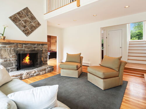Balcony/Deck, Fireplace, Hardwood Floor