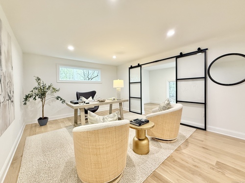 Stunning Modern completely redone colonial set in a quiet North Stamford location. Completely re-imagined in 2025 with well crafted & stylish design elements through out. This designer chic modern home features a first floor plan w/an open concept. A two story foyer welcomes you to the many elements of this sophisticated home. The oversized kitchen is the center of the home; featuring abundant cabinetry, large kitchen island, top grade Thermador & Viking appliances+quartz countertops. Open to the kitchen is the family room w/cozy fireplace & extra flex space ideal for casual living. Glass privacy doors introduce you to the in home office with abundant light & slider access to the deck. The formal space includes a dramatic living room with vaulted ceiling, fireplace & modern chandelier+formal dining room. Upstairs, there is a stunning generous sized primary suite w/vaulted ceiling, walk-in closet+luxurious bath w/oversized shower & soaking tub. Three generous sized additional bedrooms share two sophisticated baths. Not to be overlooked is the added suite over the garage. With separate entrance, wet bar with fridge and private bath, this is the perfect space for extended stay guests. A finished walk out lower level with bath & patio includes additional versatile space. Features include-NEW high efficiency multi zone HVAC, Hardie plank siding & Azak trim, Timberline roof, custom windows & doors+driveway just to name a few of the many improvements!