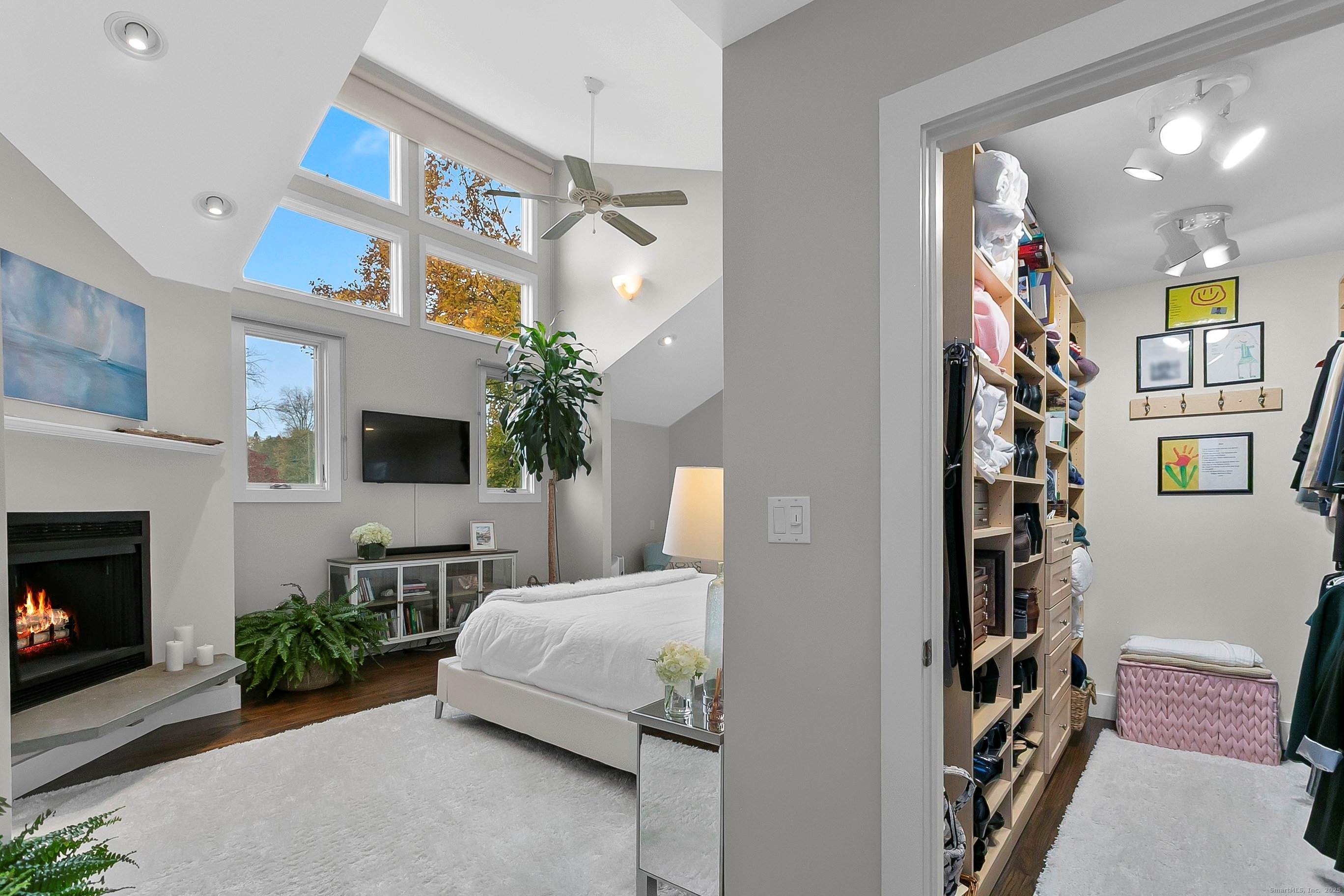 Location, location! This sleek, modern Colonial-ideally situated in the highly desired Sasco neighborhood on a quiet cul-de-sac-awaits its next owner. Gorgeous & rare architectural features make this home a true stand out, including multi-level soaring ceilings, dramatic oversized windows that flood the home w/ natural light & 3 fireplaces for added warmth & charm. Built-ins, 4 bedrooms (including one on the 1st floor) & 3 levels of spacious living combine comfort & versatility. Step inside & your eye is drawn to the impressive scale of the open rooms & inviting warmth that fills the space. The open layout extends easily to the outdoors w/ an oversized deck & a large, private yard. The 1st level features a welcoming living room w/ a fireplace that opens into the dining area. The eat-in kitchen is a chef's dream w/ 2 large ovens, great counter space & an oversized island that flows effortlessly into the cozy family room w/ built-ins & a 2nd fireplace. Bedroom (currently used as an office) & full bath offer flexibility & convenience. Upstairs, the luxurious primary suite serves as a retreat, w/ the 3rd fireplace, dramatically high ceilings, large windows overlooking the tranquil landscaping, 2 walk-in closets & a spa-like bath. 2 additional spacious bedrooms, 1 w/ a loft & full bath complete the 2nd level. The lower level adds living space w/ a recreation room, den & storage. All of this PLUS a short walk to town & the beach makes 85 Patrick Dr. the perfect place to call home.