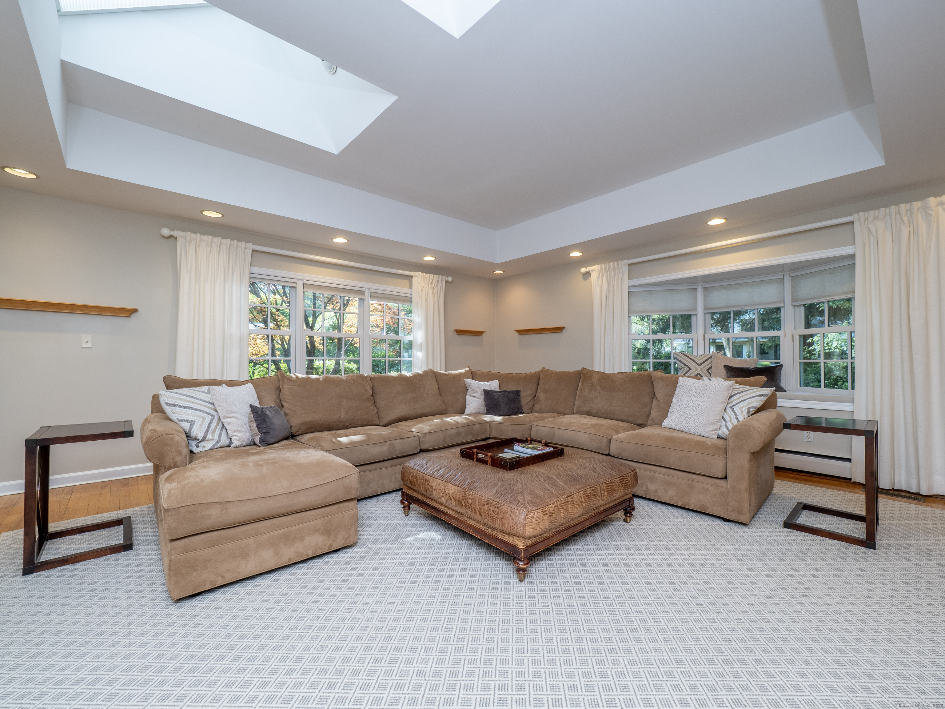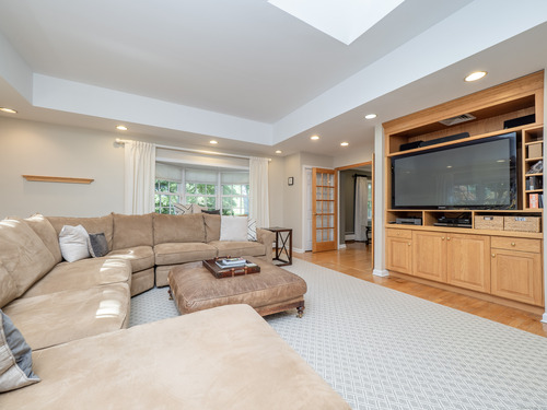 Bay/Bow Window, Skylight, 9 ft+ Ceilings, Built-Ins, Entertainment Center, Hardwood Floor
